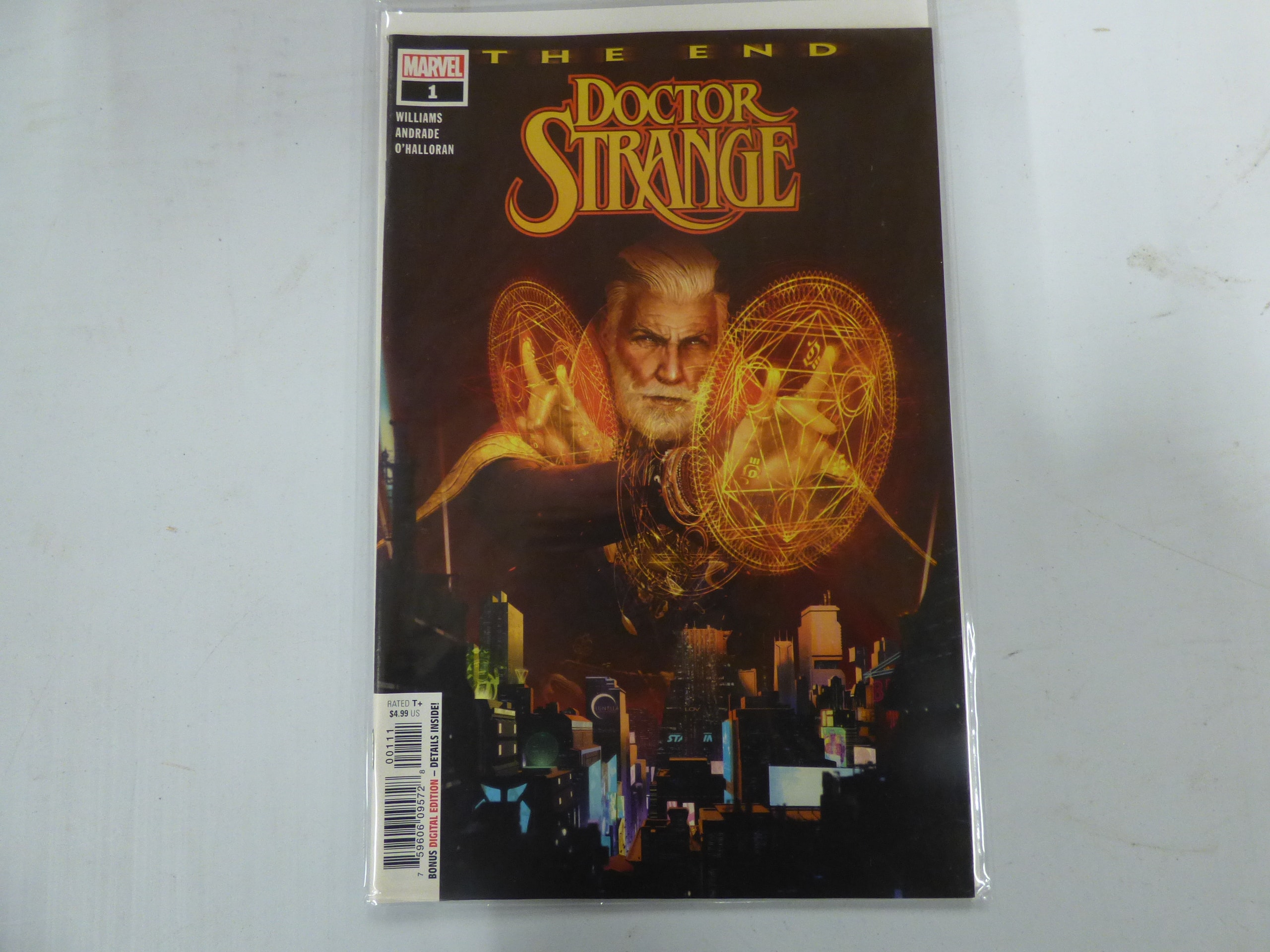 A Marvel comic book, “DOCTOR STRANGE: THE END” #1, featuring a dark cover with yellow/orange lettering and magical effects, created by WILLIAMS, ANDRADE, and O’HALLORAN, and noting “BONUS DIGITAL EDITION”.