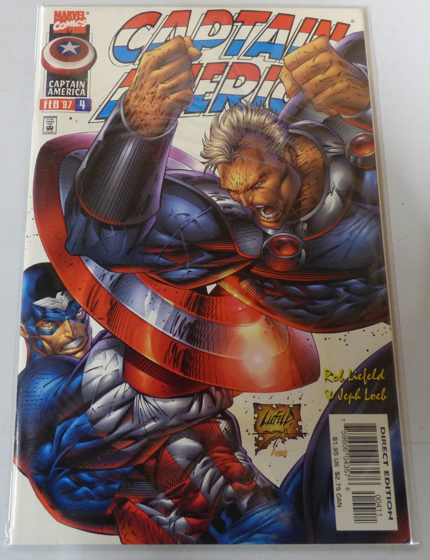 A single Marvel Captain America comic book, issue #4 from February 1997, featuring Captain America and another character on the cover, marked ‘DIRECT EDITION’ and priced at $1.95 US.
