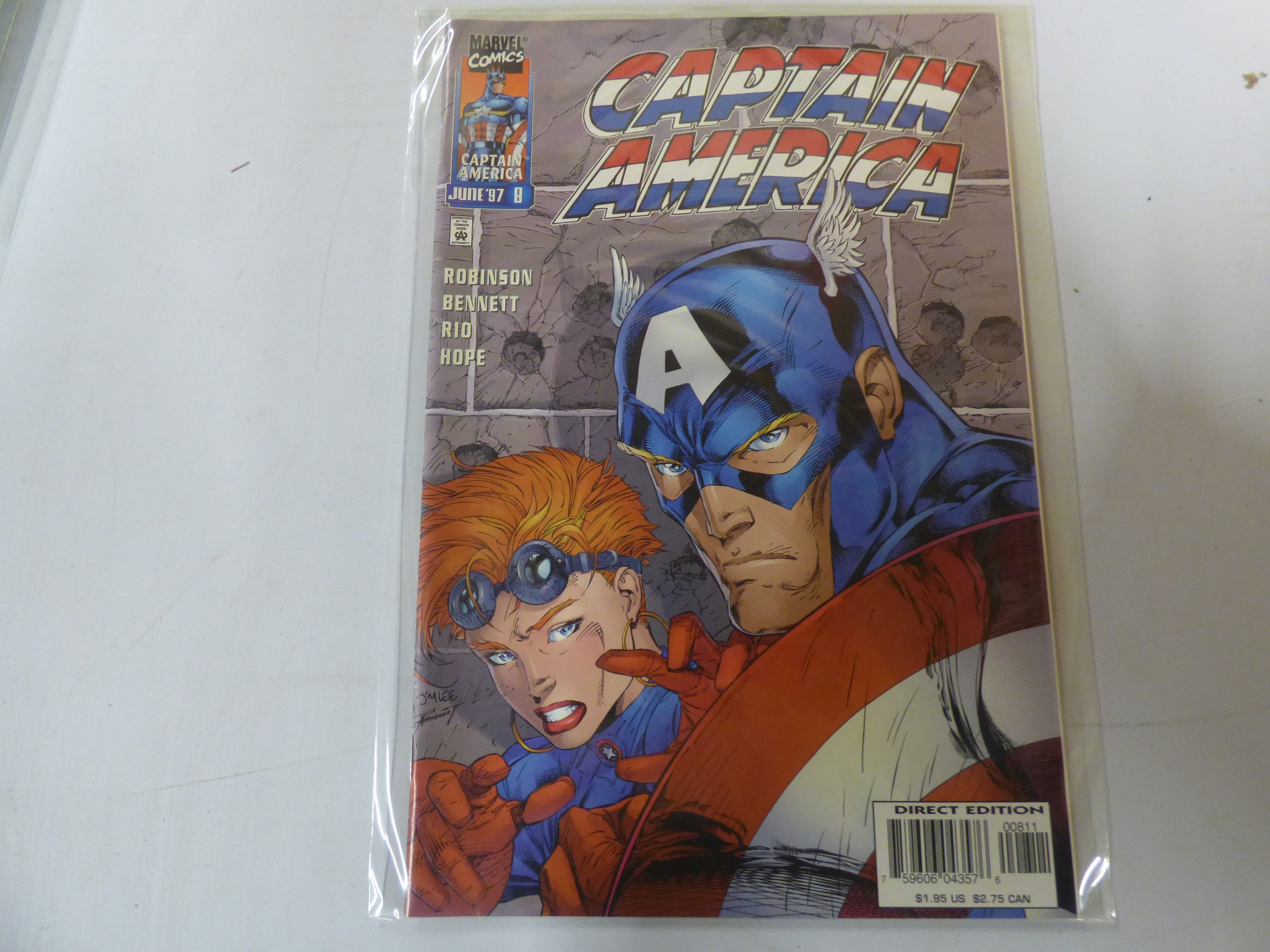 A Marvel Comics Captain America #8 comic book from June 1997, part of the Heroes Reborn Vol. 2 series, featuring cover art signed ‘JM LEE’ and priced at $1.95 US.