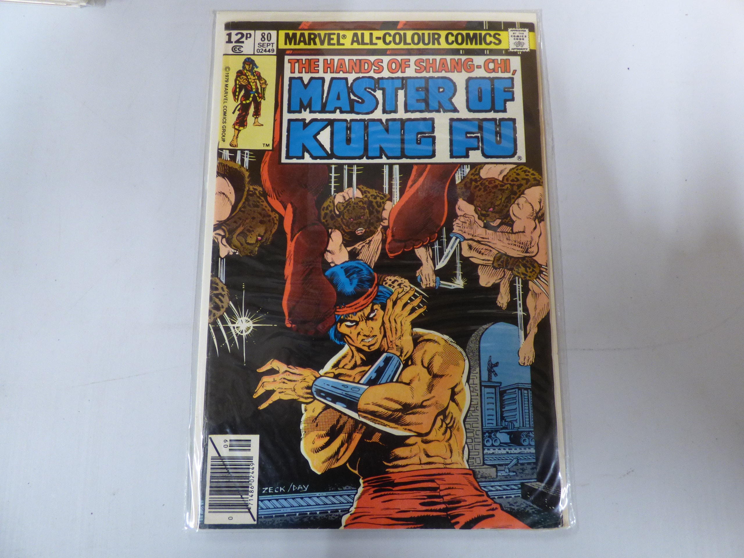 A Marvel All-Colour Comics comic book, ‘The Hands of Shang-Chi, Master of Kung Fu’, issue #80, dated September 1979, marked ’12P’, primarily black, orange, and blue, with ZECK / DAY credits.