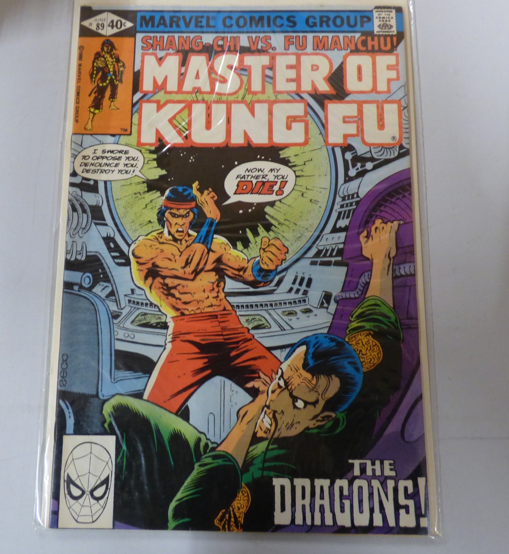 A multi-coloured Marvel Comics Group comic book, Master of Kung Fu #89 from June 1980, features Shang-Chi vs. Fu Manchu! and The Dragons! on the cover, priced at 40¢.