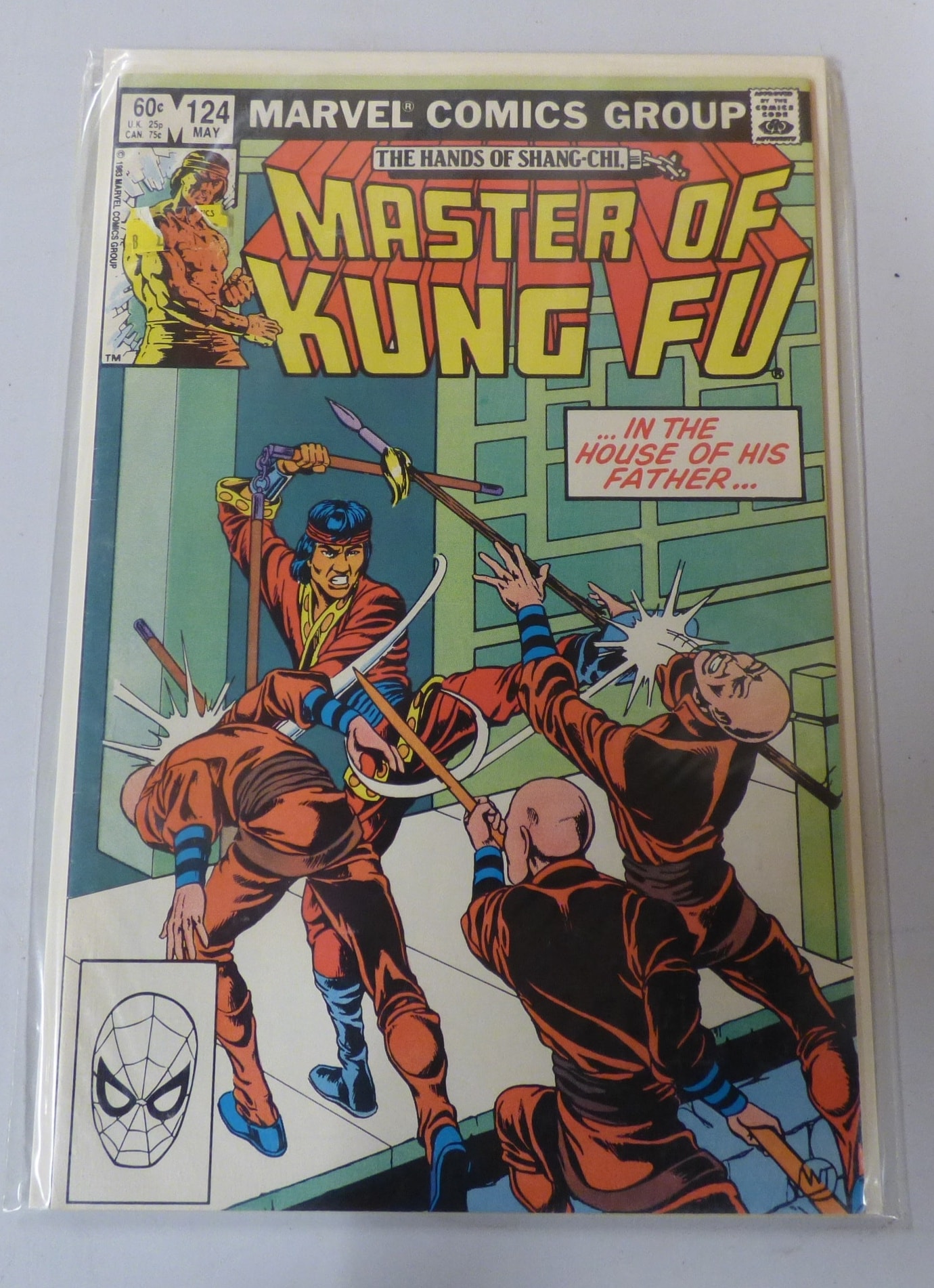 A multi-coloured comic book, “Master of Kung Fu, The Hands of Shang-Chi” issue #124, published by Marvel Comics Group in May 1983, priced at 60c.