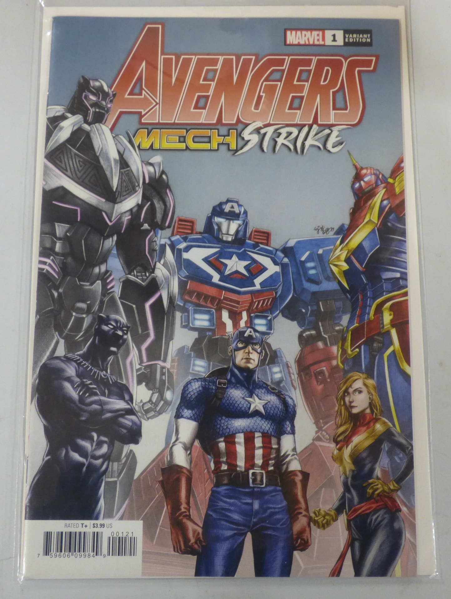 A single MARVEL AVENGERS MECH STRIKE #1 Variant Edition comic book featuring colorful characters and mech suits on the cover.