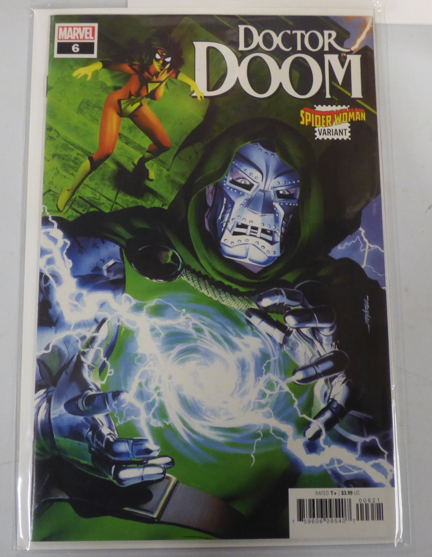 A single MARVEL ‘DOCTOR DOOM’ #6 Spider-Woman Variant comic book, featuring Doctor Doom and Spider-Woman.