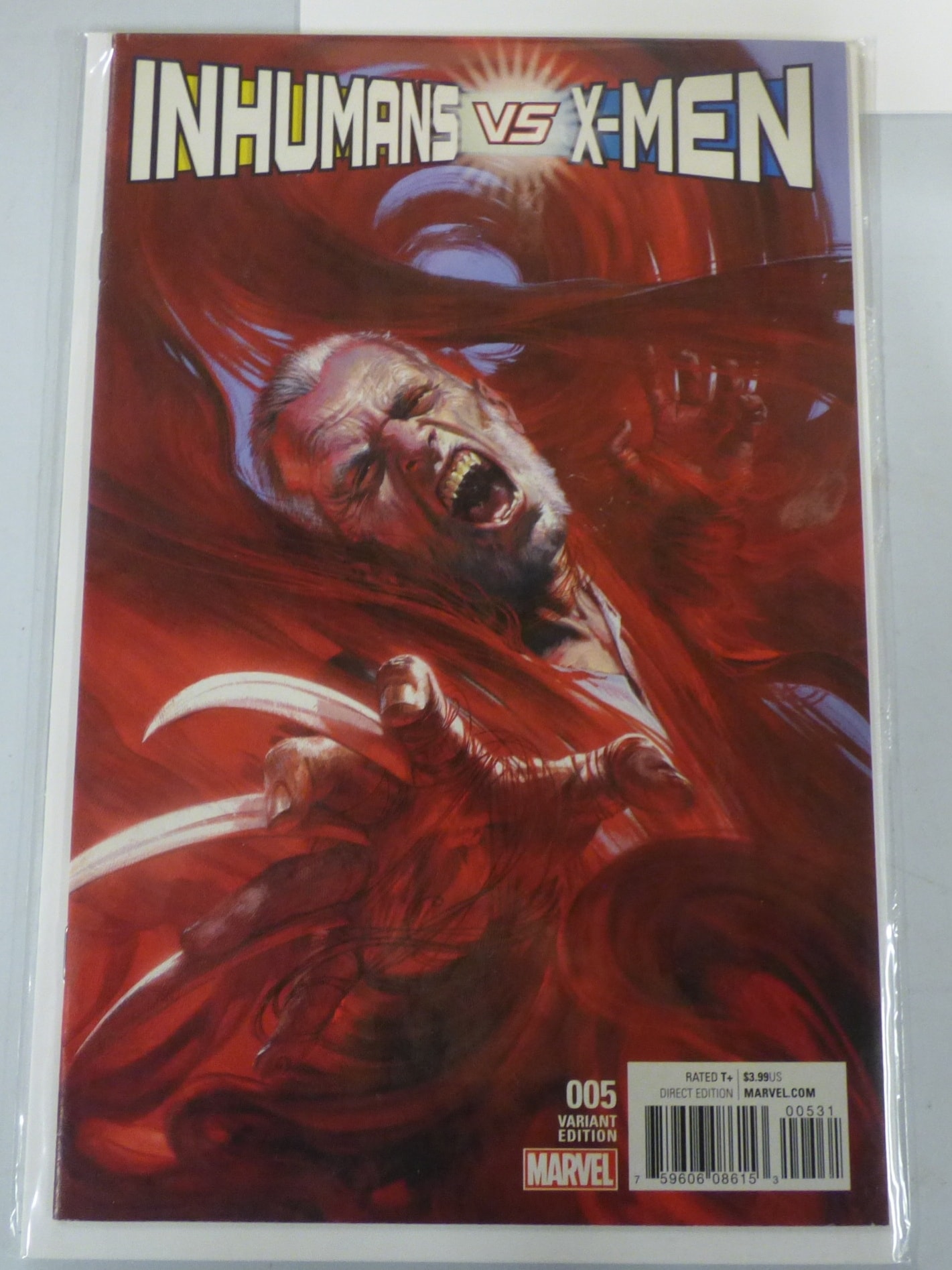 A single Inhumans Vs X-Men #005 Dell’Otto 1:50 Variant Edition comic book, rated T+, direct edition, priced at $3.99US, featuring a screaming figure with claws in red, white, and purple, with the Marvel logo.