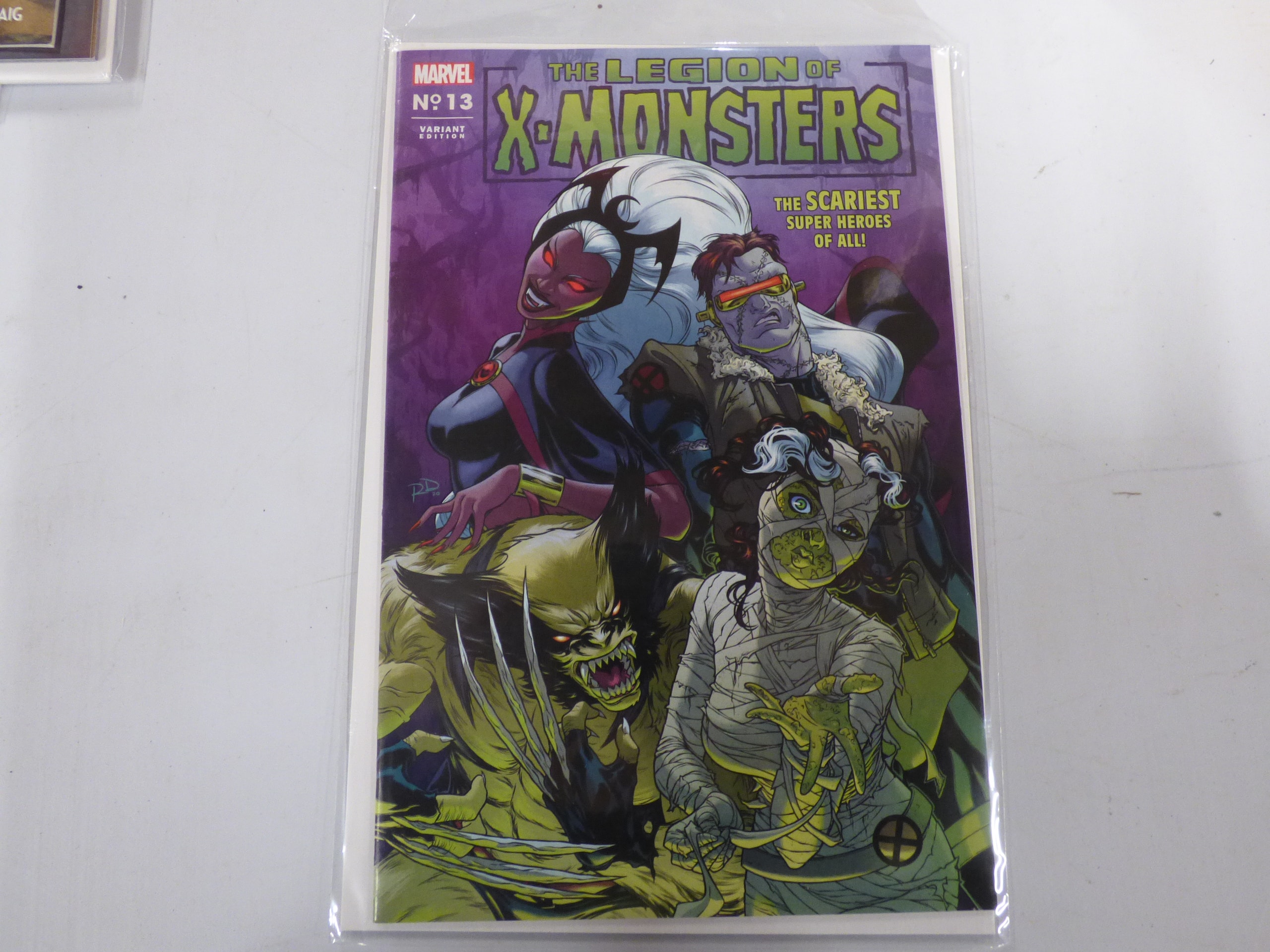 A Marvel comic book, “THE LEGION OF X-MONSTERS” Nº 13, a “VARIANT EDITION”, featuring “THE SCARIEST SUPER HEROES OF ALL!” with a purple, green, black, white, and yellow/lime green color scheme and a “PD 20” artist’s signature.