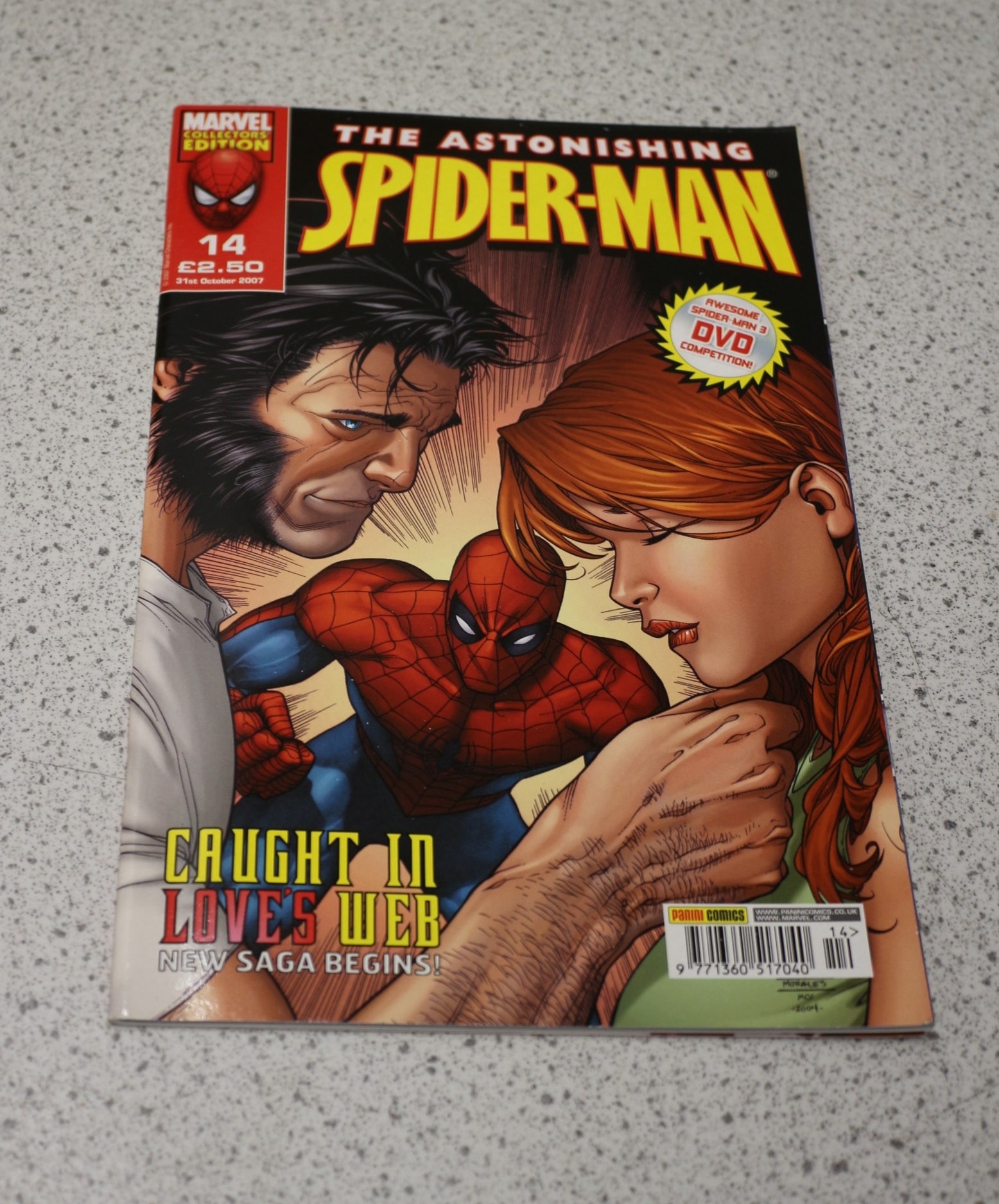 A multi-coloured comic book, ‘THE ASTONISHING SPIDER-MAN’ Marvel Collectors Edition issue 14, published by Panini Comics on 31st October 2007.