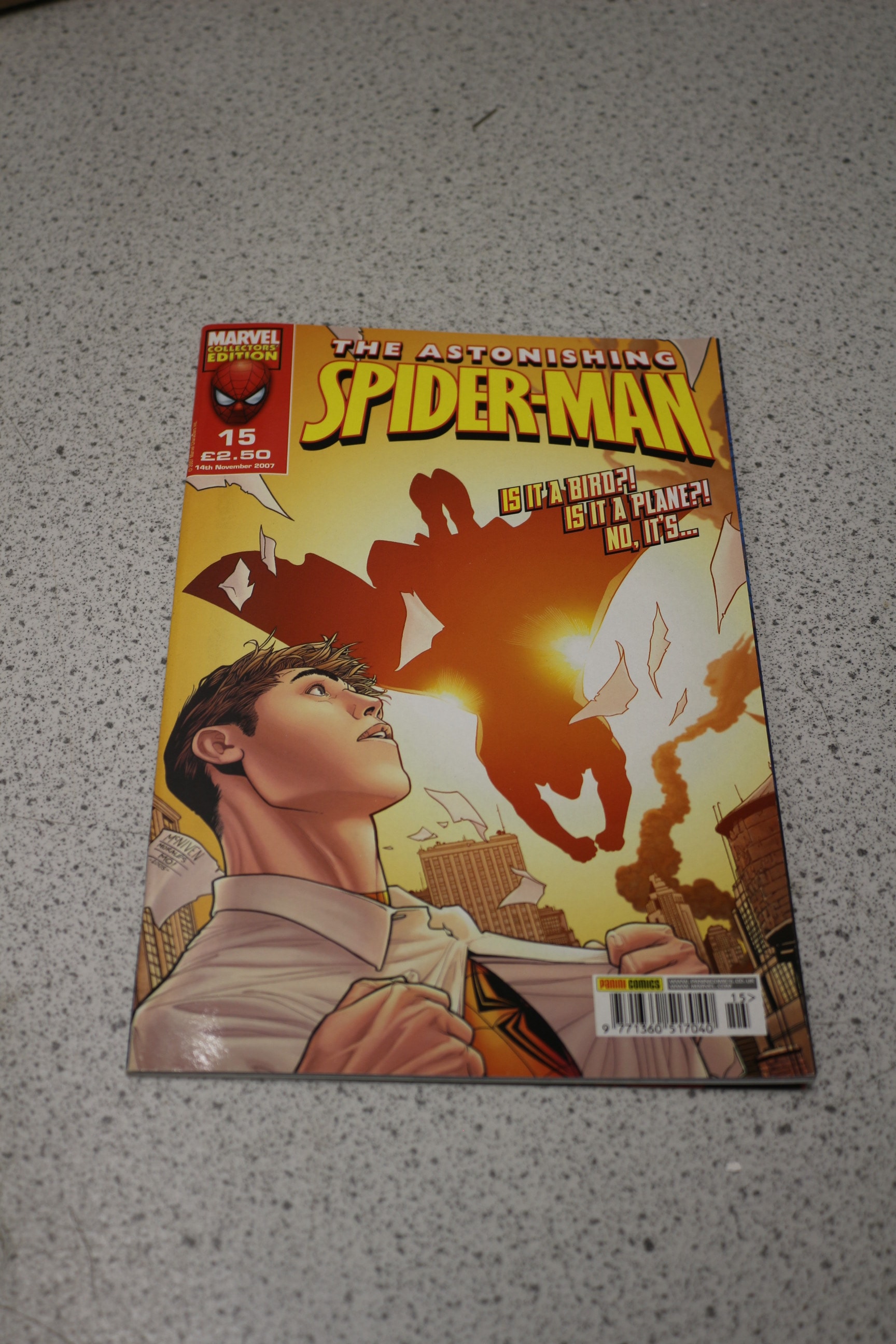 A single “The Astonishing Spider-Man” comic book, issue #15, published by Panini Comics on 14th November 2007 as a Marvel Collector’s Edition, featuring yellow, orange, red, and blue colours.