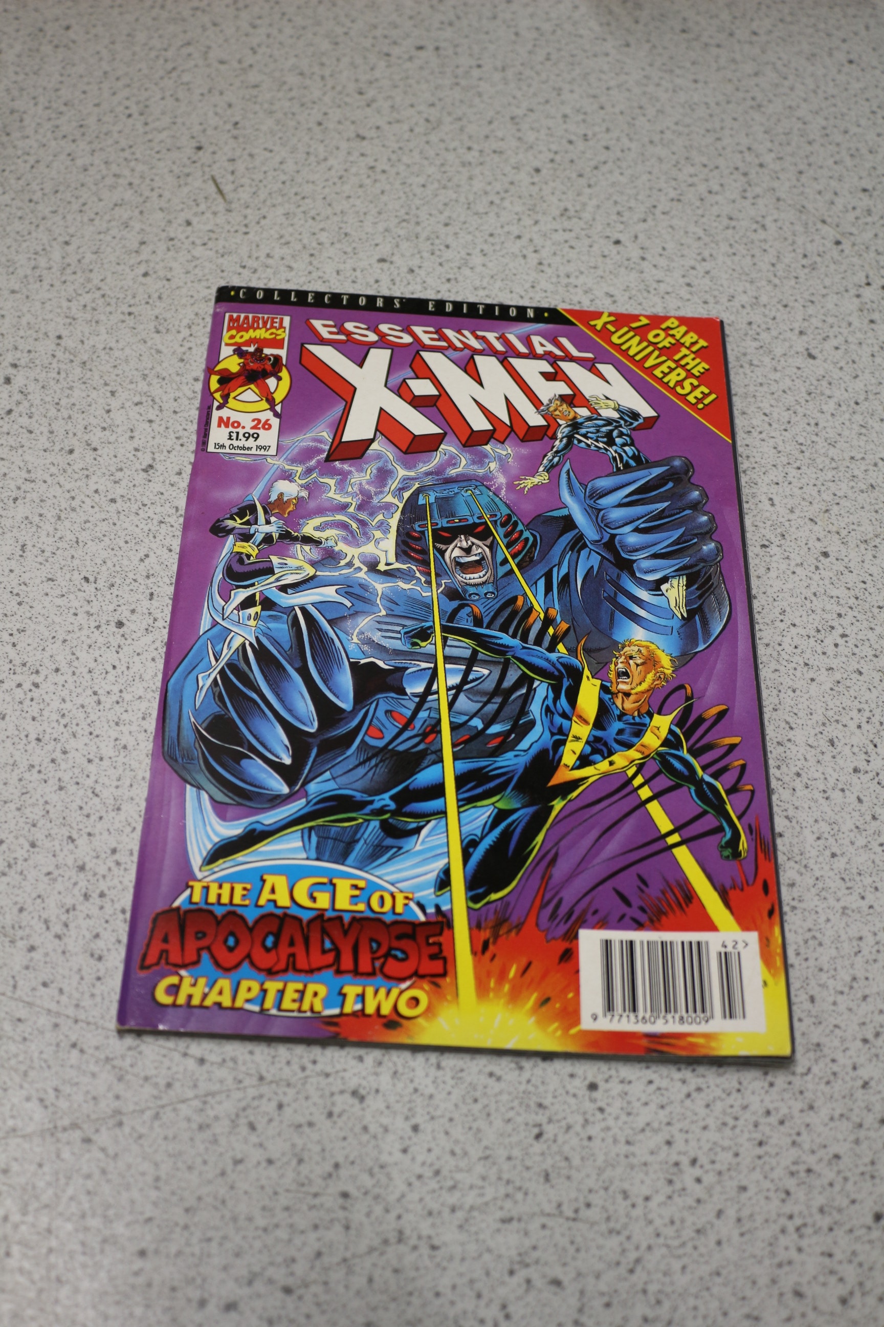 A purple-covered Marvel Comics ‘ESSENTIAL X-MEN No. 26’ Collector’s Edition comic book, featuring ‘THE AGE OF APOCALYPSE CHAPTER TWO, ‘ dated 15th October 1997.