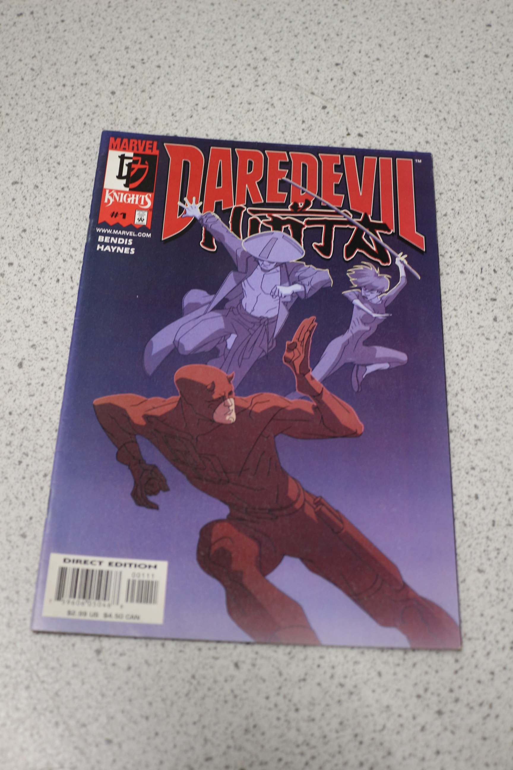 One Marvel Knights #1 Daredevil Ninja comic book, blue/purple with red/white text/characters, labelled ‘DIRECT EDITION’.