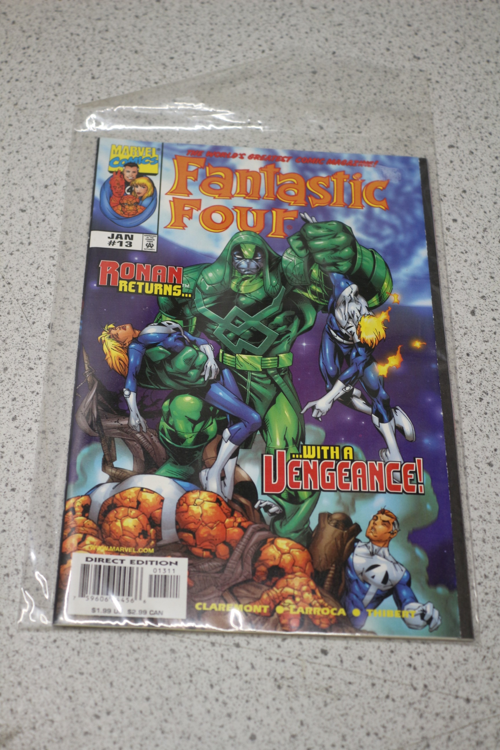 A multi-coloured Marvel Comics “Fantastic Four” comic book, issue #13 (January), featuring “RONAN RETURNS… WITH A VENGEANCE!”.