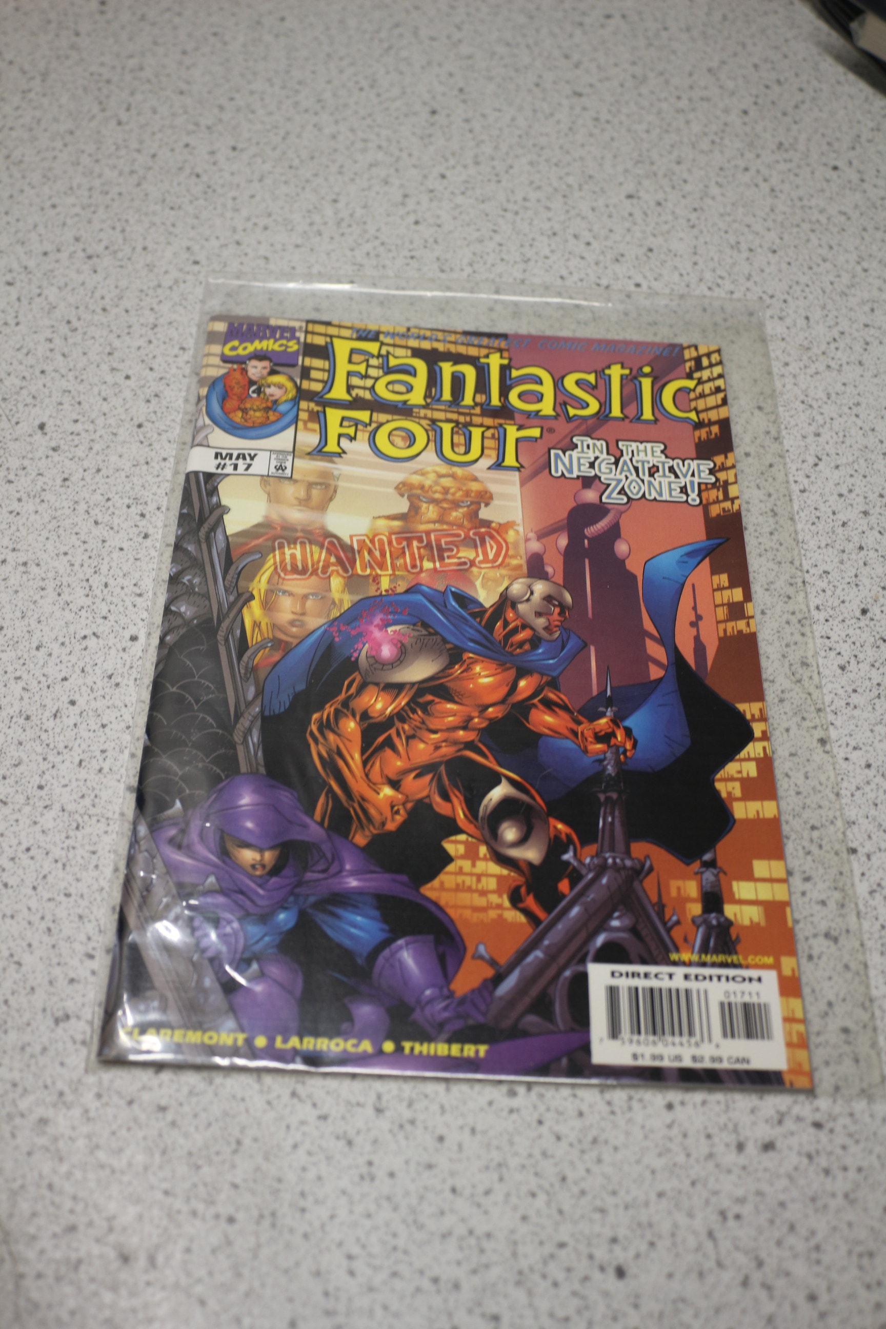 A Marvel Comics “Fantastic Four IN THE NEGATIVE ZONE!” comic book, issue #17 from May, featuring main colours of orange, blue, purple, yellow, and black, identified as a “DIRECT EDITION” priced at $1.99 US / $2.99 CAN.