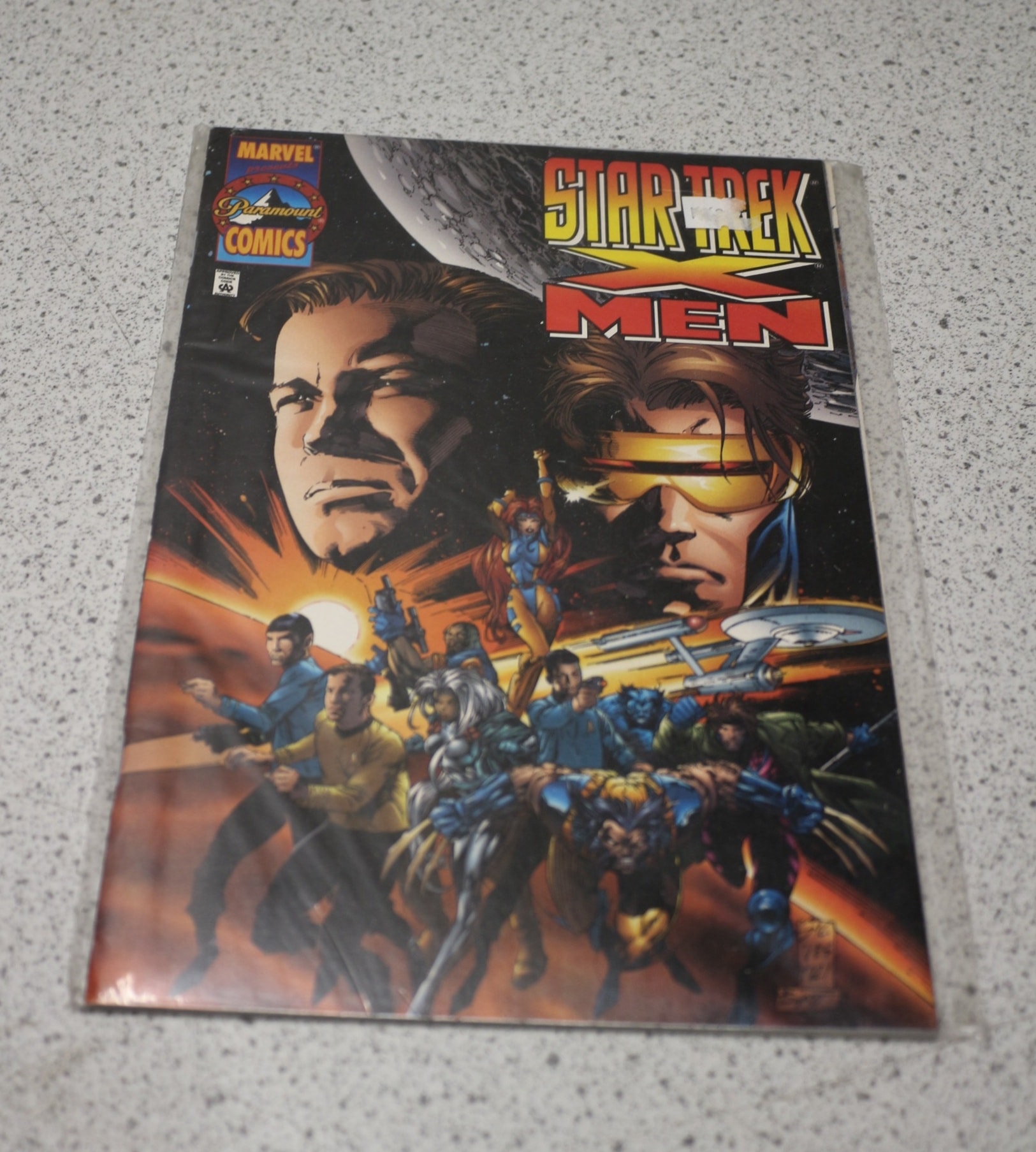 A single 1996 Marvel Star Trek X-Men #1 comic book, predominantly dark with colourful character illustrations, featuring Marvel and Paramount Comics logos and Comics Code Authority approval.