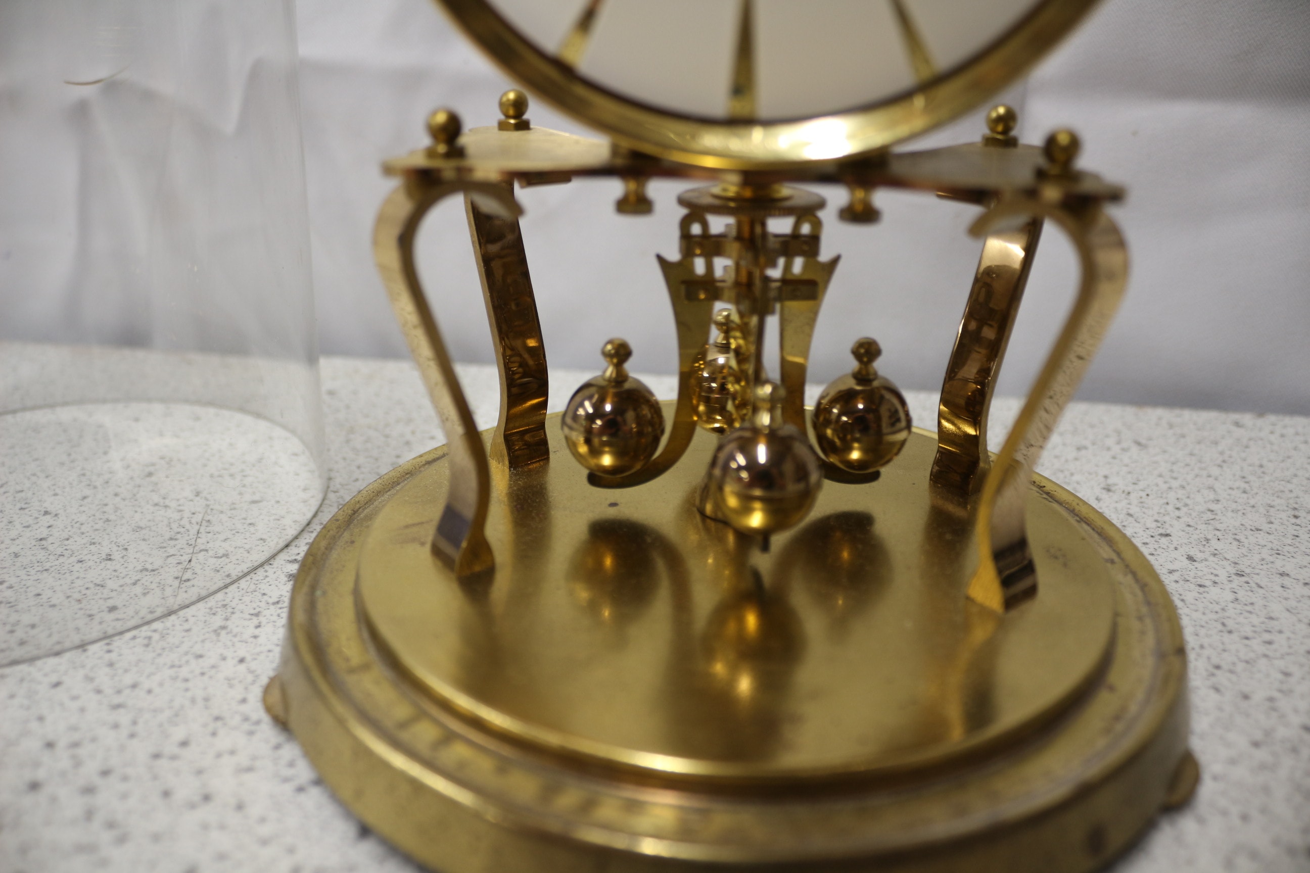 A single Kundo 400-day anniversary clock, gold-colored with a white face and clear glass dome, featuring “Kundo” on the clock face and “MADE IN GERMANY” on the lower bezel.