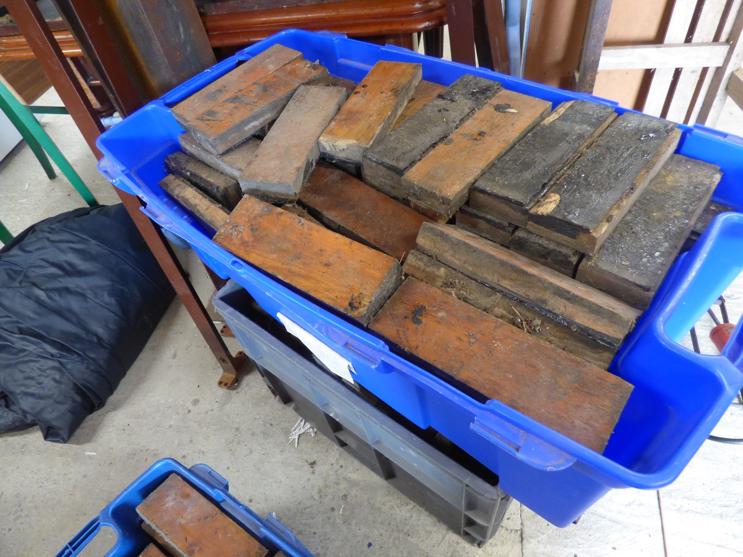 10x Boxes of used antique parquet flooring