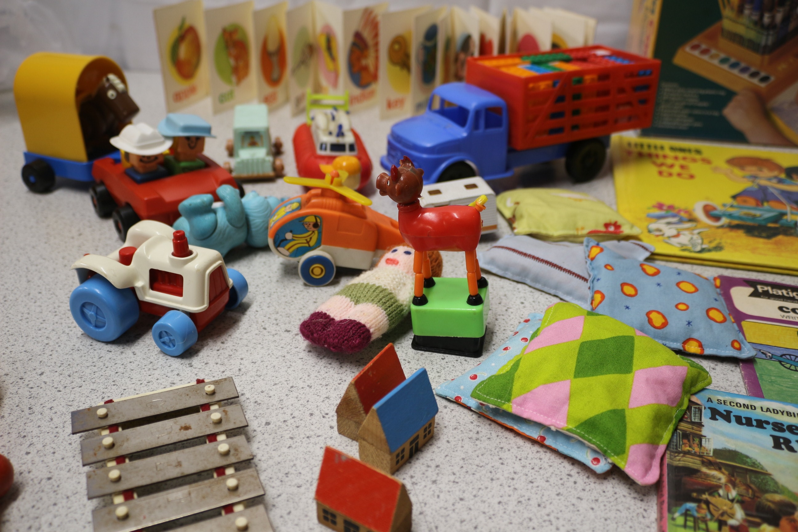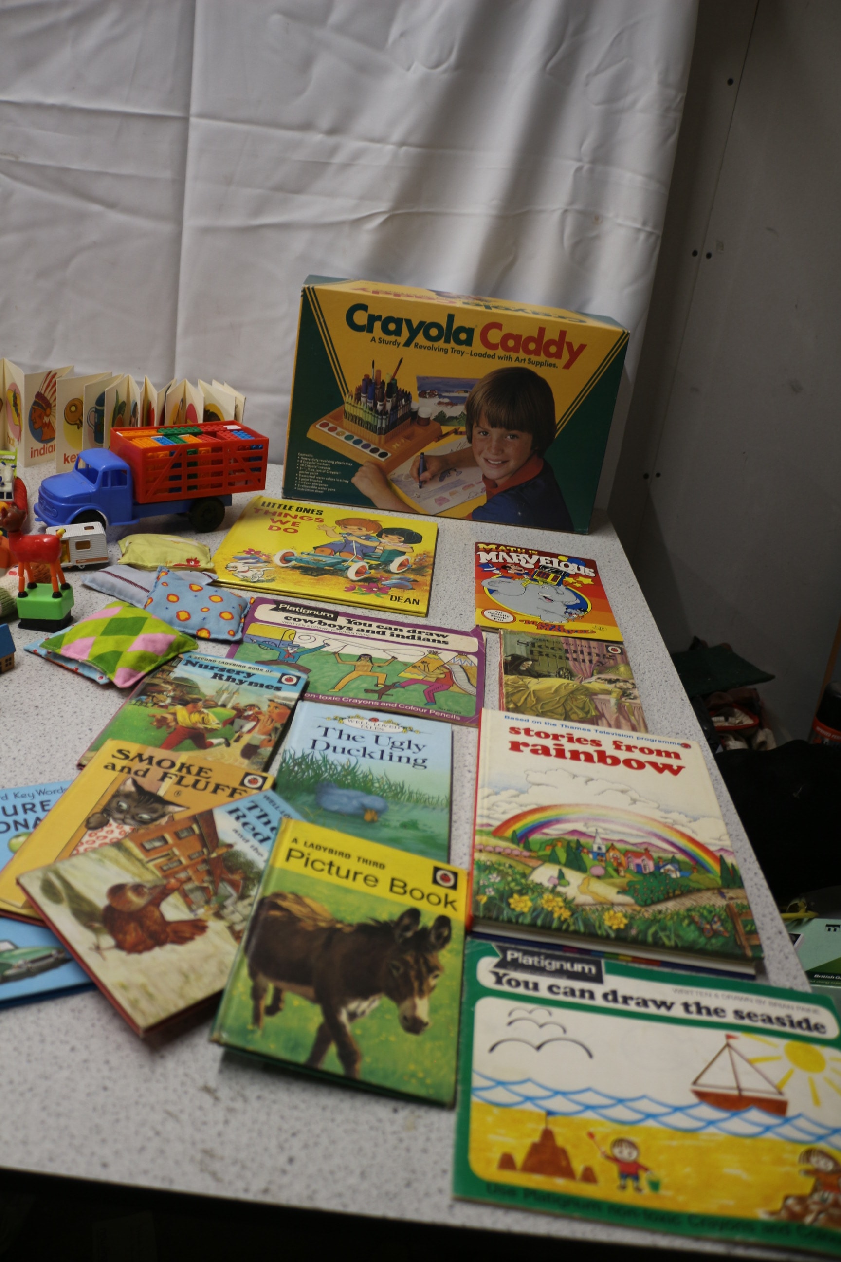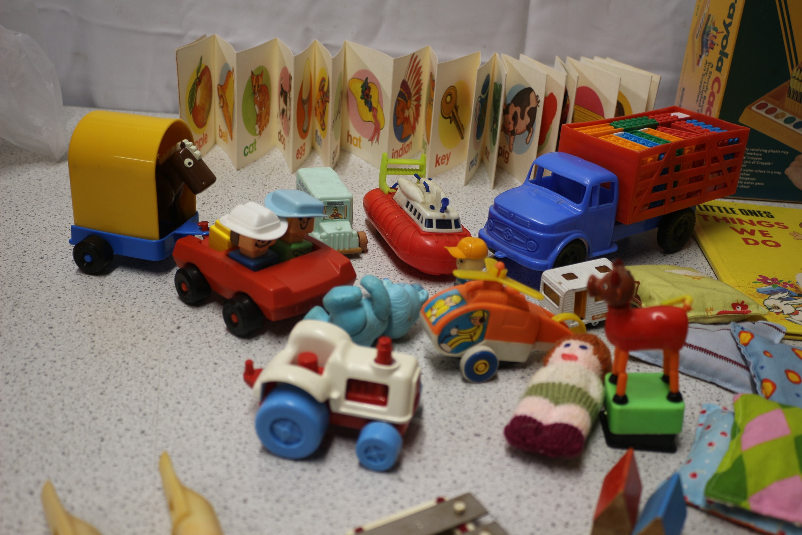 Mixed lot of Vintage toys and books. Please note Crayola box is empty