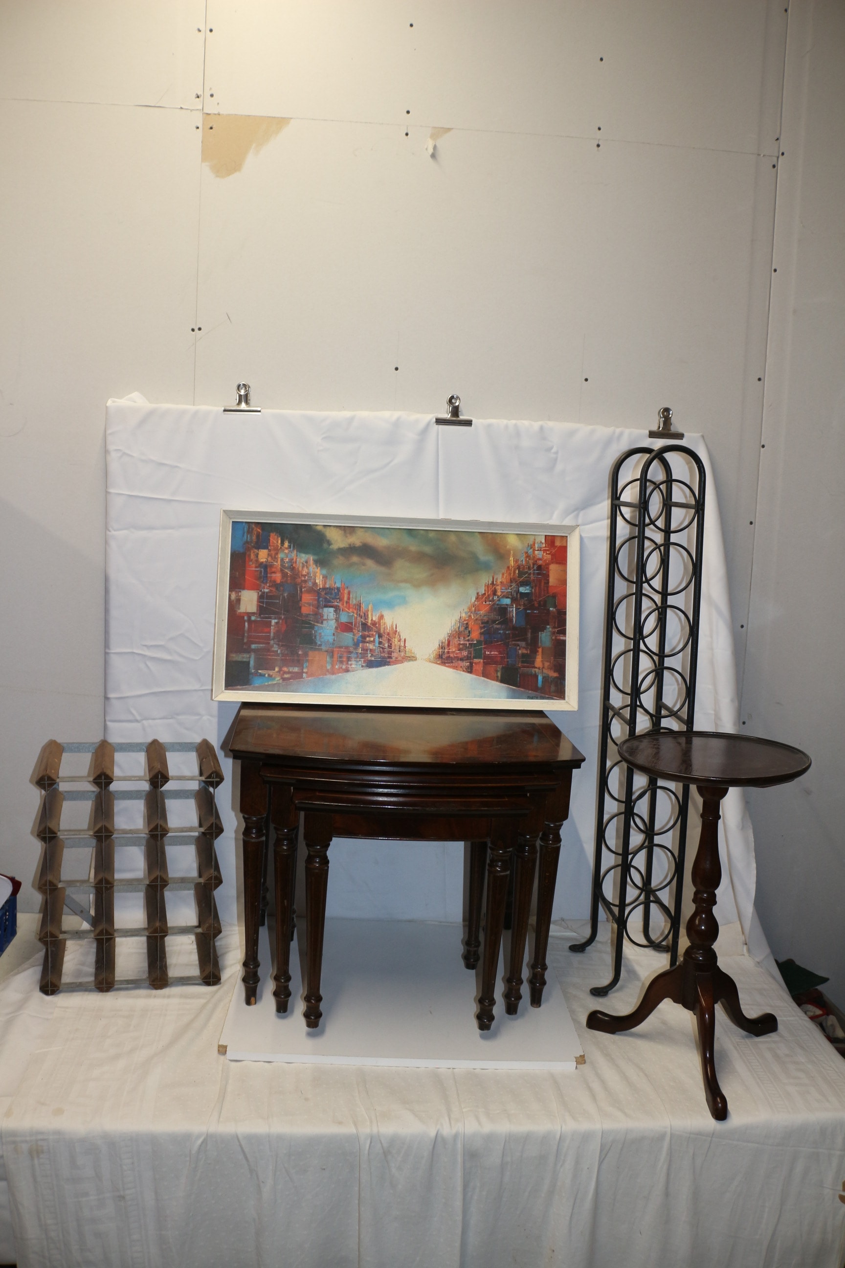 Mixed Lot inc Nest of Tables, Wine Racks, Picture and Side Table