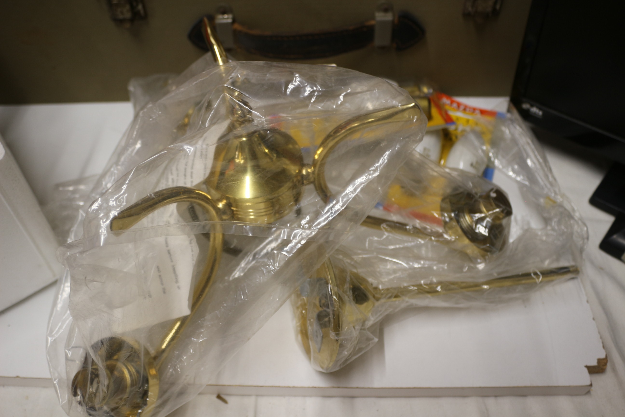 Mixed lot inc A grey and black projector, labelled “CMP COMMERCIAL MOTION PICTURES LTD.” and “eumig mark M SUPER”, features a brown tag with diagrams and German text including “Anschlußplan”. 19″ Alba TV, Light, Woven Mat and More. Untested