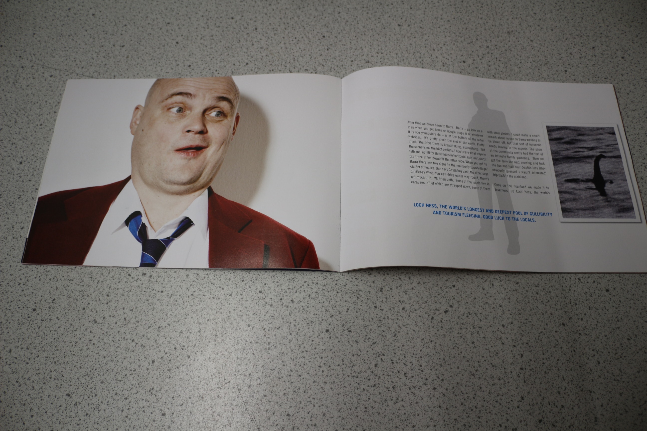 A multi-page white, red, and blue souvenir programme for ‘Al Murray THE PUB LANDLORD: THE ONLY WAY IS EPIC TOUR, ‘ signed ‘To Brian, Cheers, Al Murray’ on the front cover.
