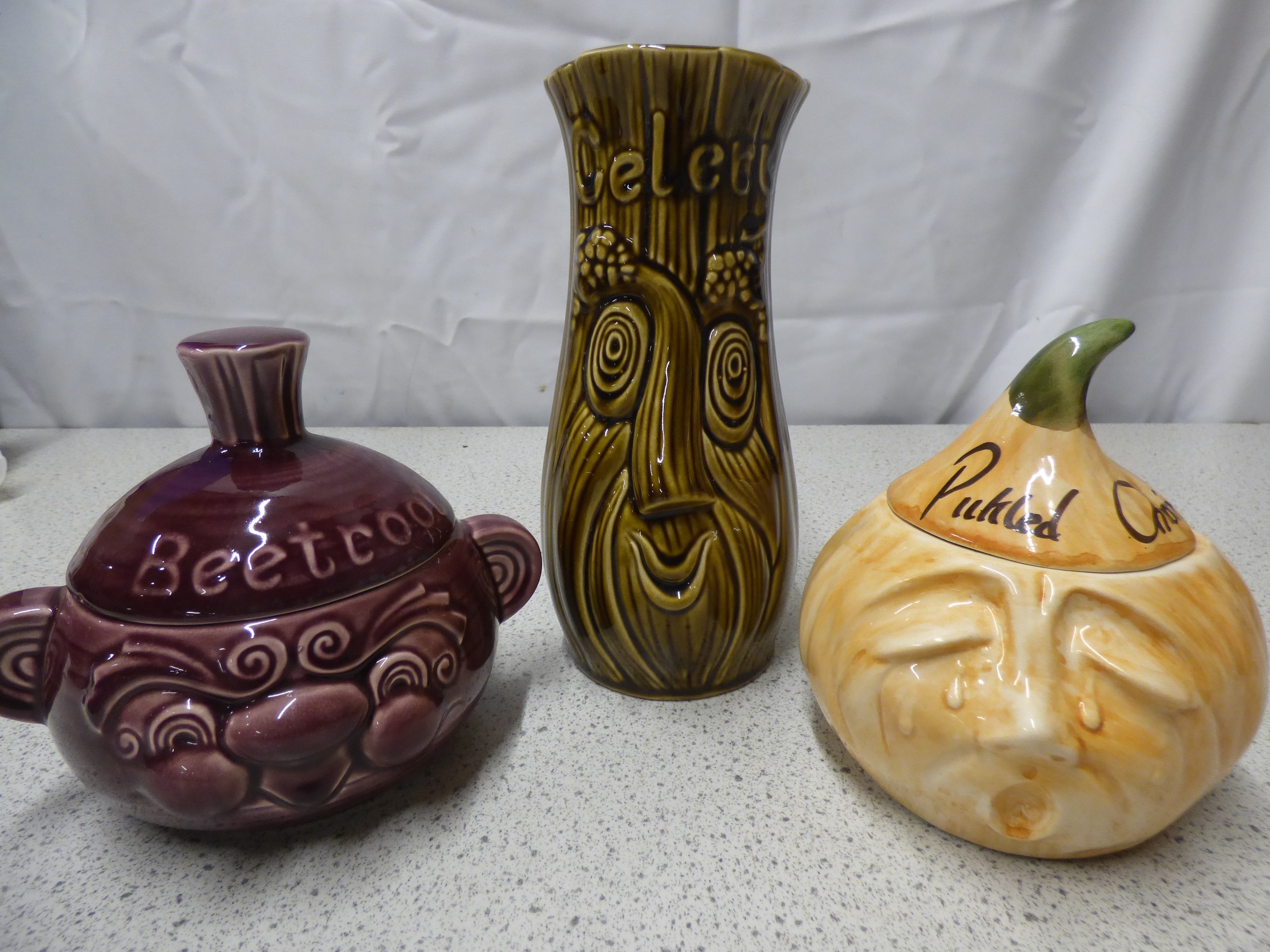 3 x Sadler Pottery items, beetroot jar, pickled onion jar and celery pot