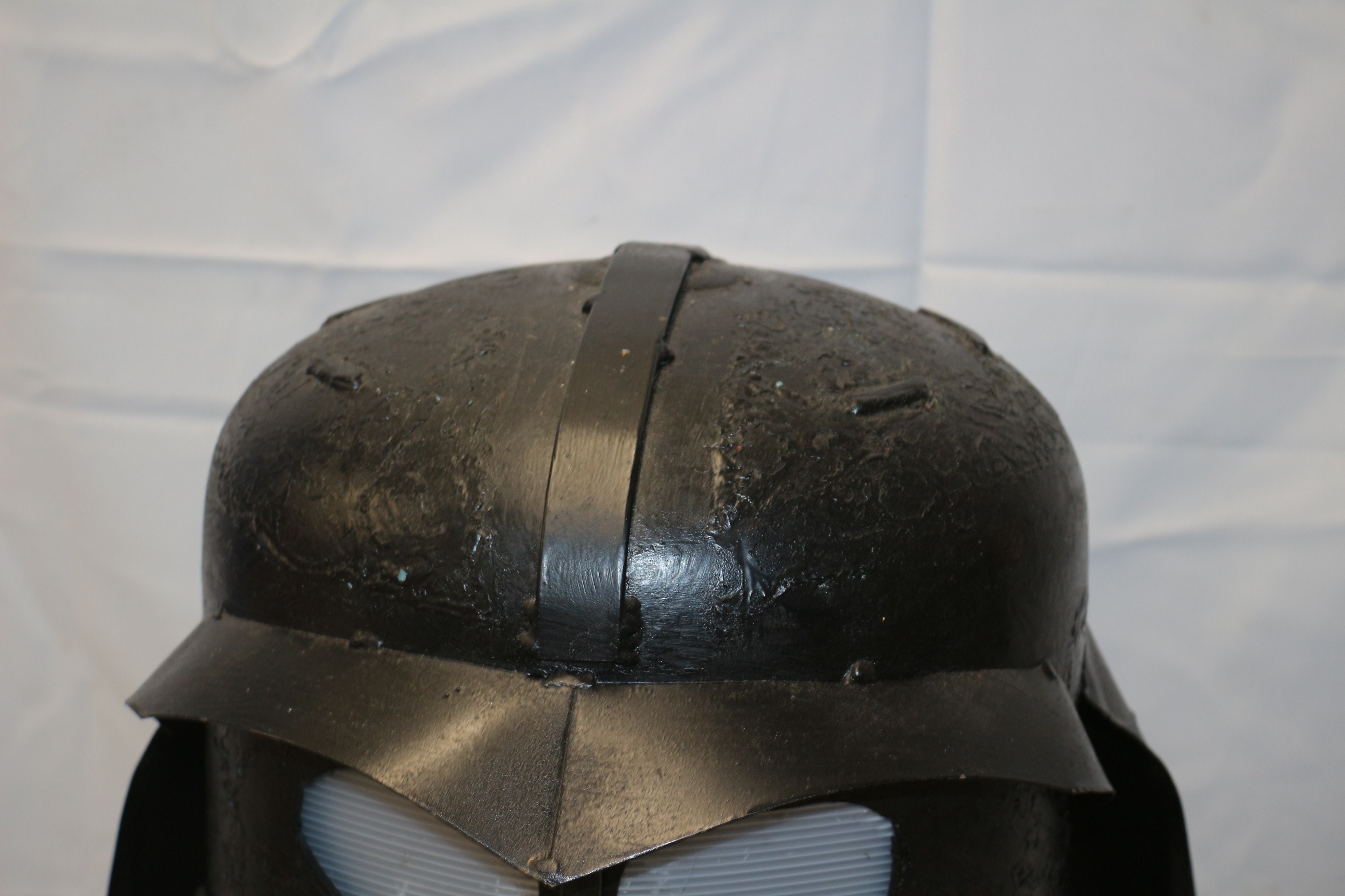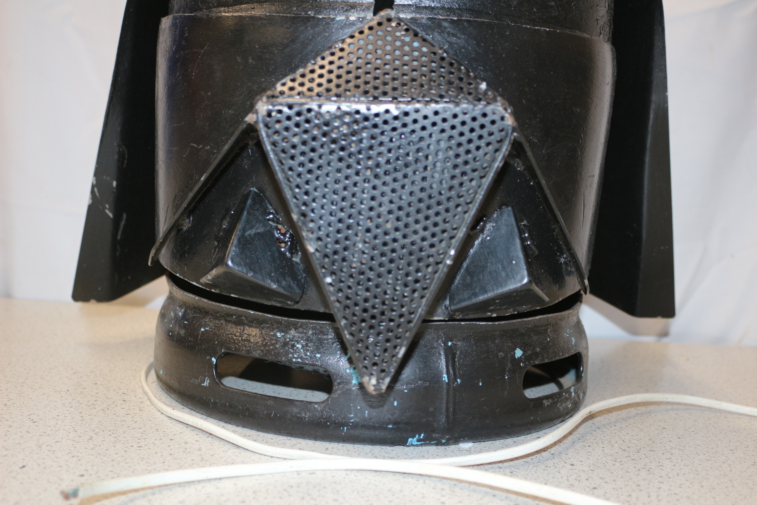 A heavy black metal Darth Vader-style light with perforated mouth grille and white translucent eye lenses, featuring a visible power cord. Untested 45cm Tall