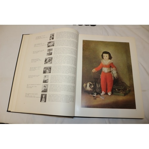 Six dark grey/black hardcover books with gold lettering on the spines, identified as ‘THE MASTERS’ series, covering volumes ‘1-10′ through ’51-60,’ featuring art reproductions and text, including a page with ‘Thomas Gainsborough 1727-1788’ and ‘KEITH ROBERTS.’