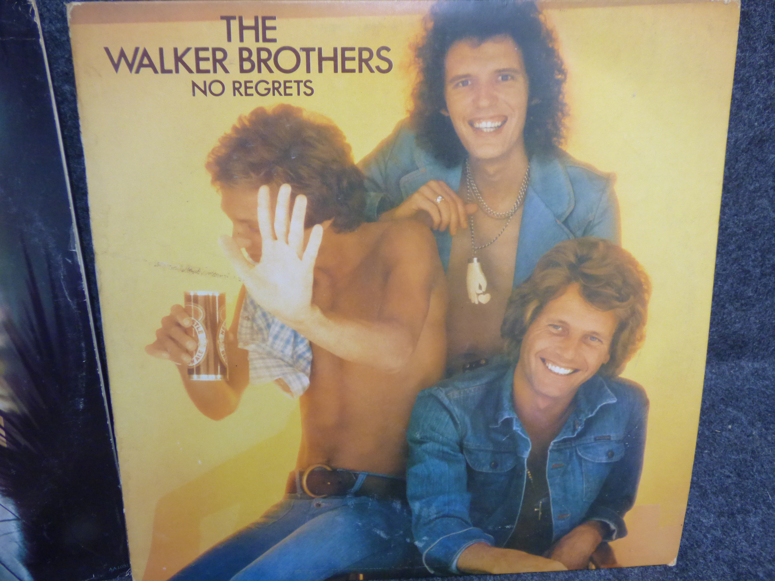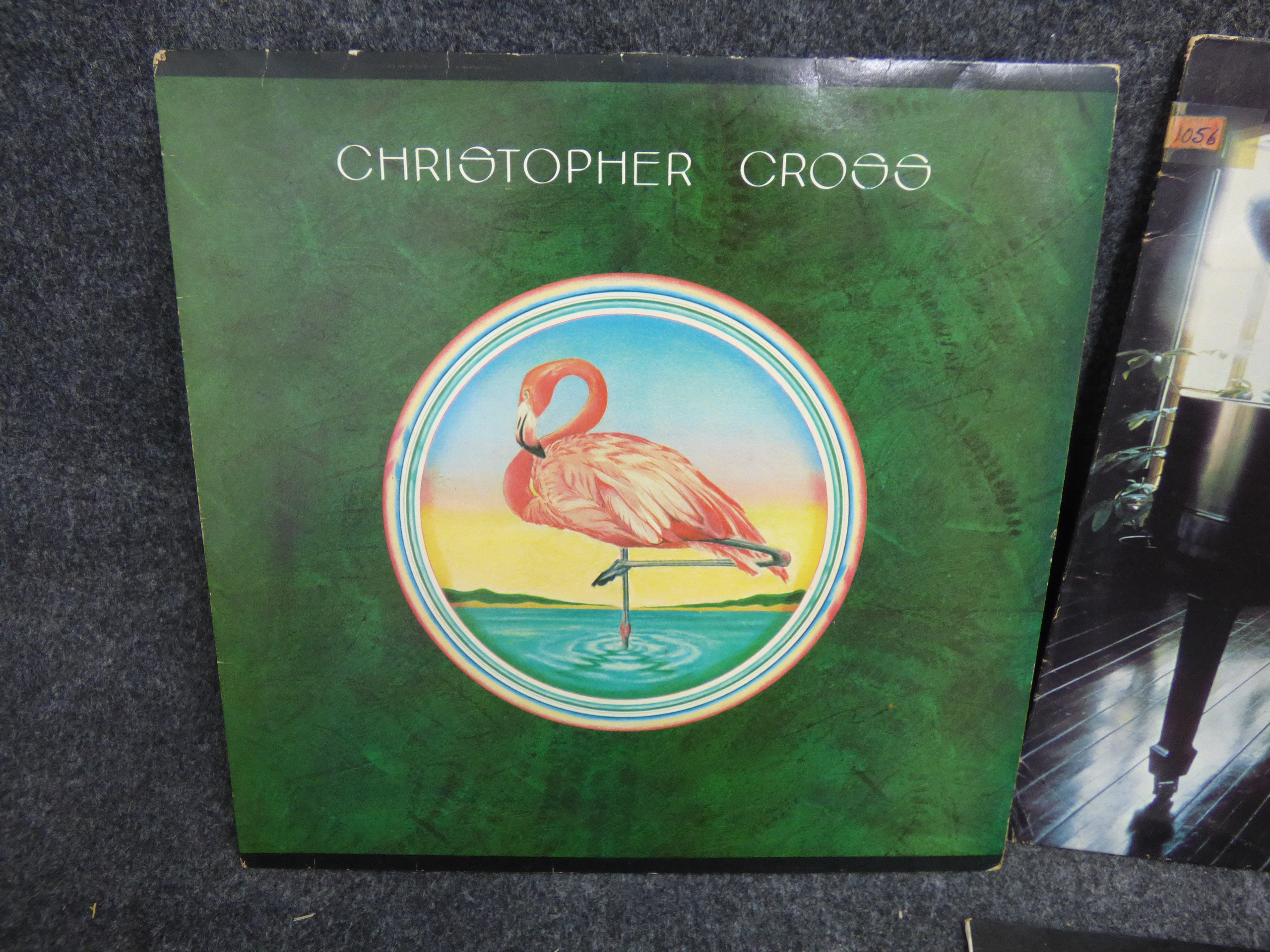 A collection of multiple vinyl record albums featuring titles by Christopher Cross, Paul Parrish, The Walker Brothers, and Scott Walker.