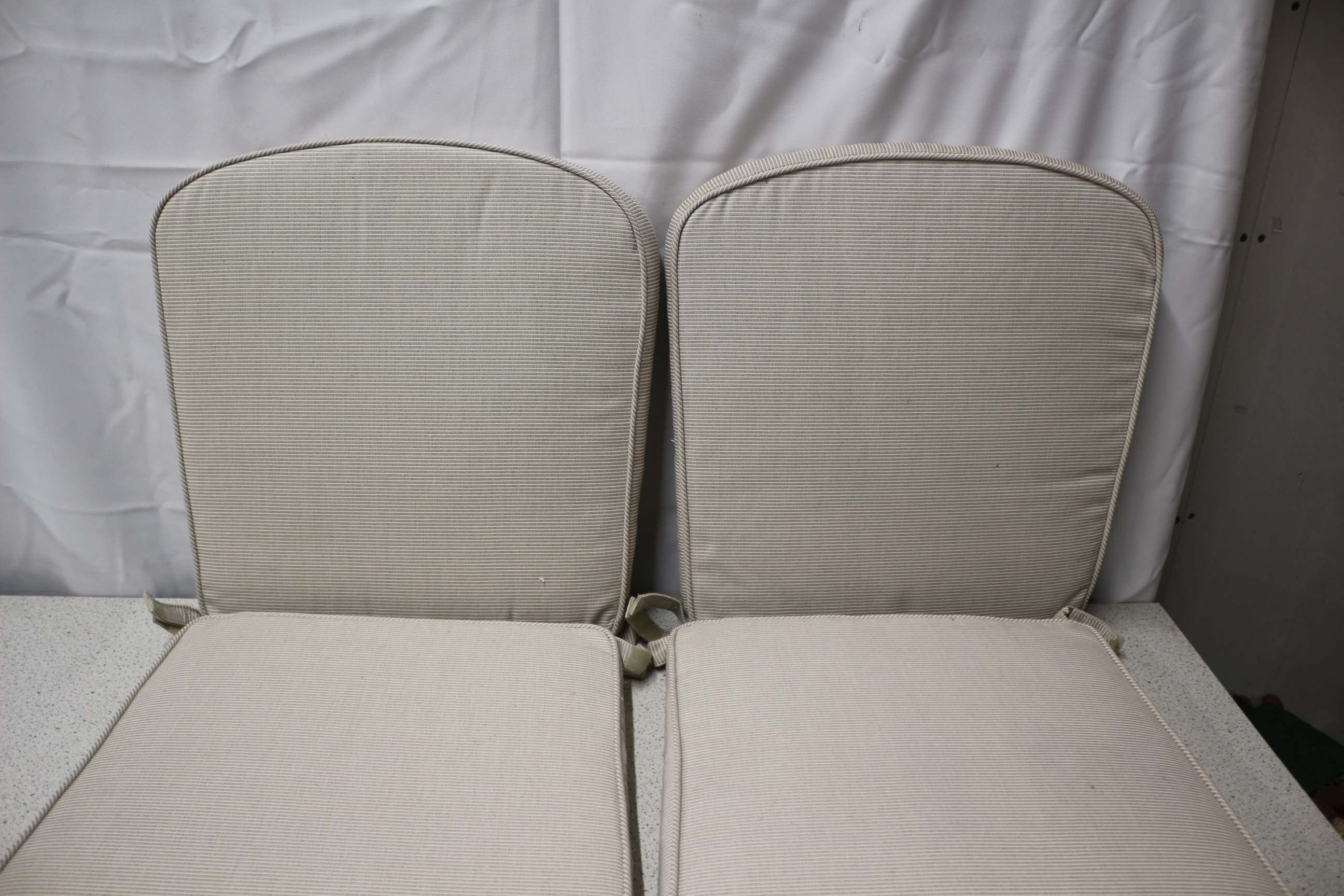 A set of six Marks & Spencer light beige/grey ribbed cushions, made in Vietnam.