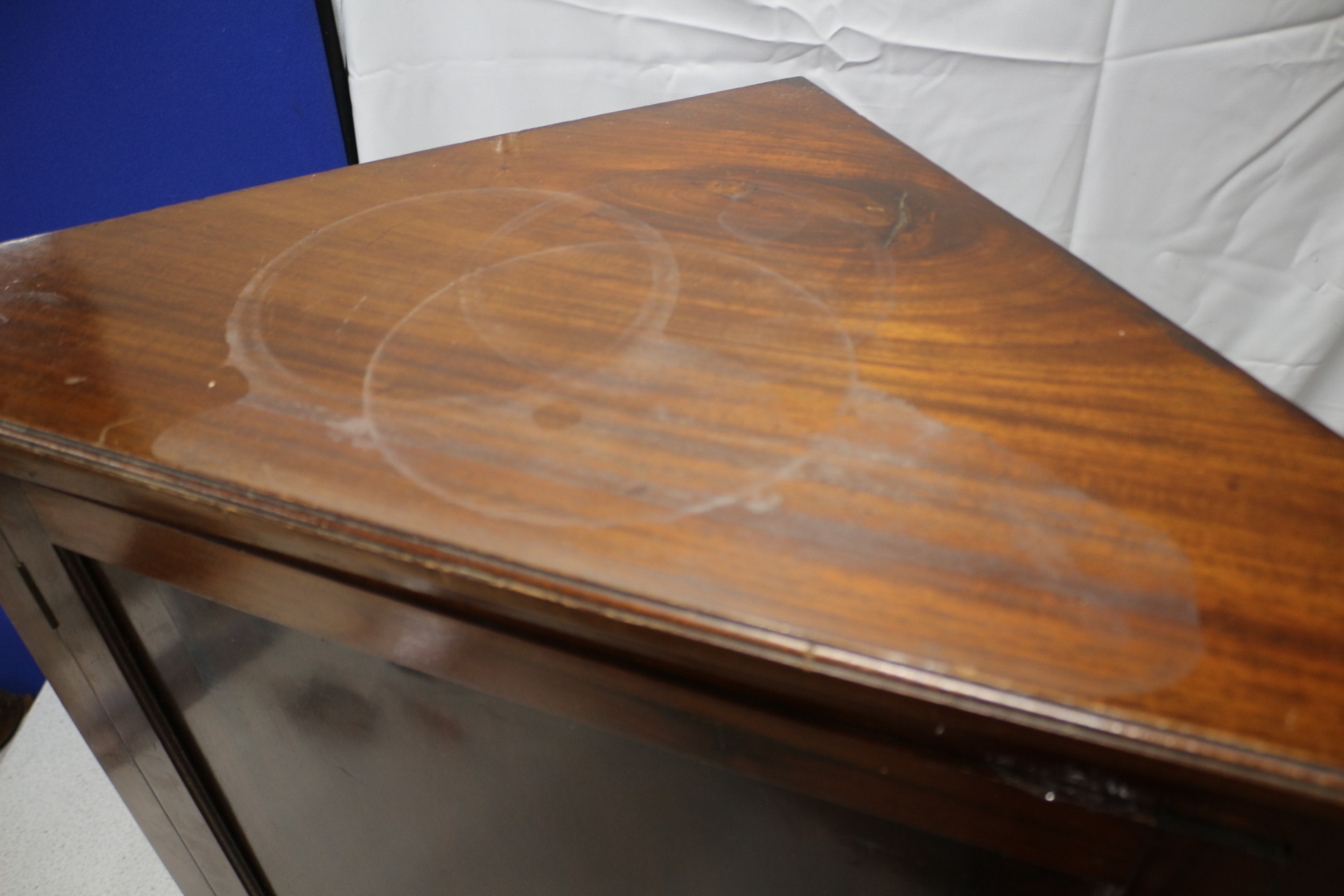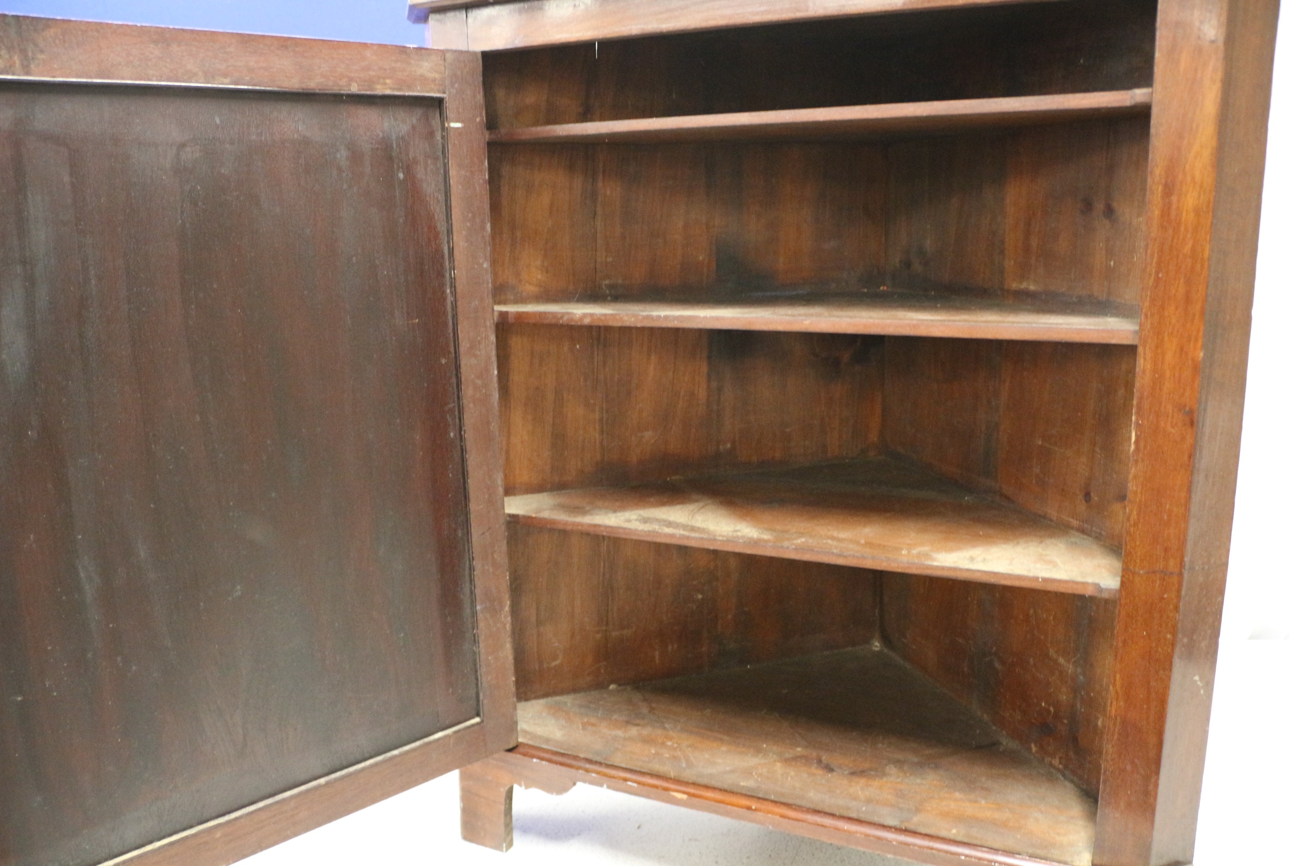 Lot 429: A Dark Reddish-Brown Wooden Corner Cabinet with Shell Inlay