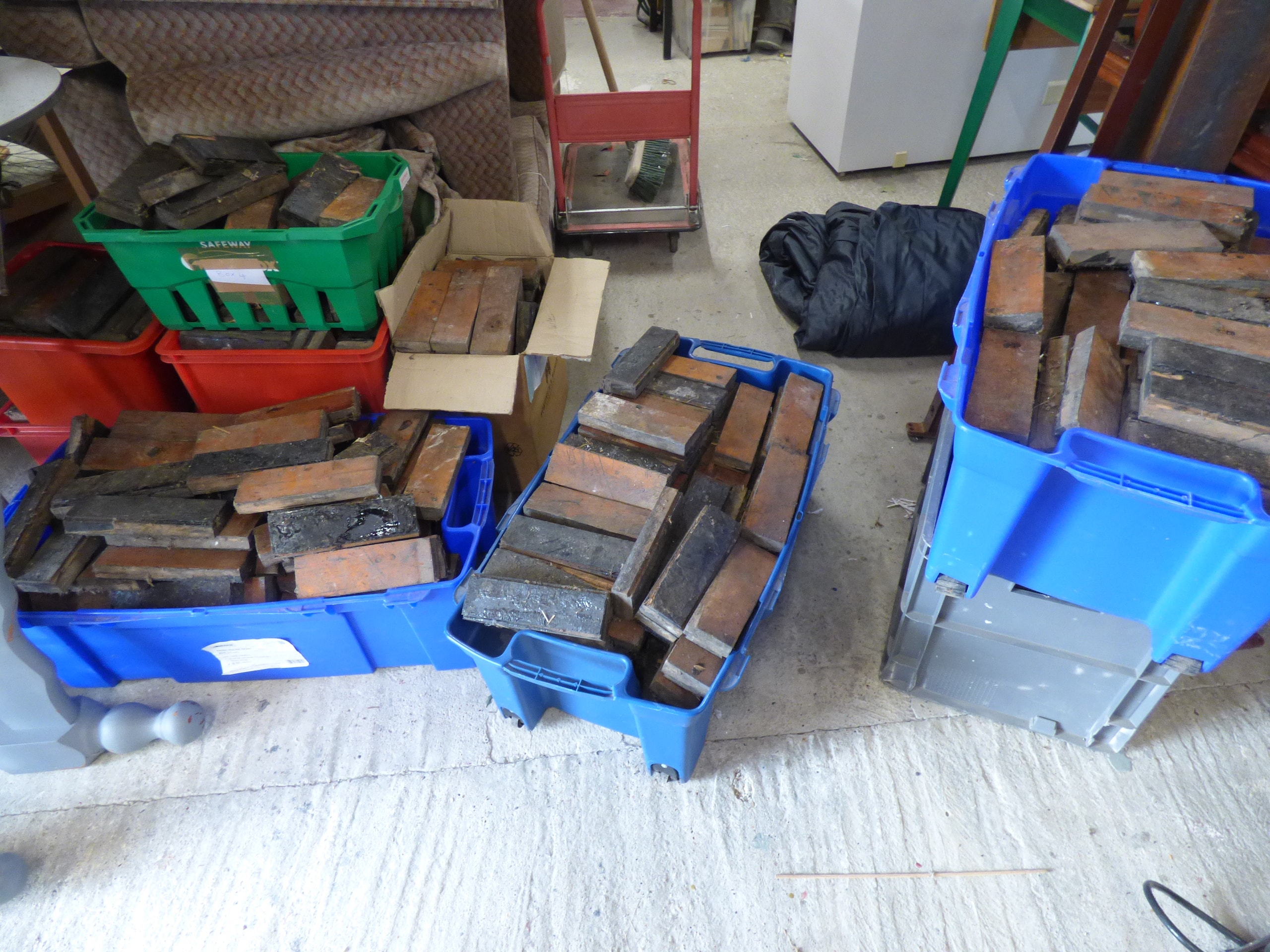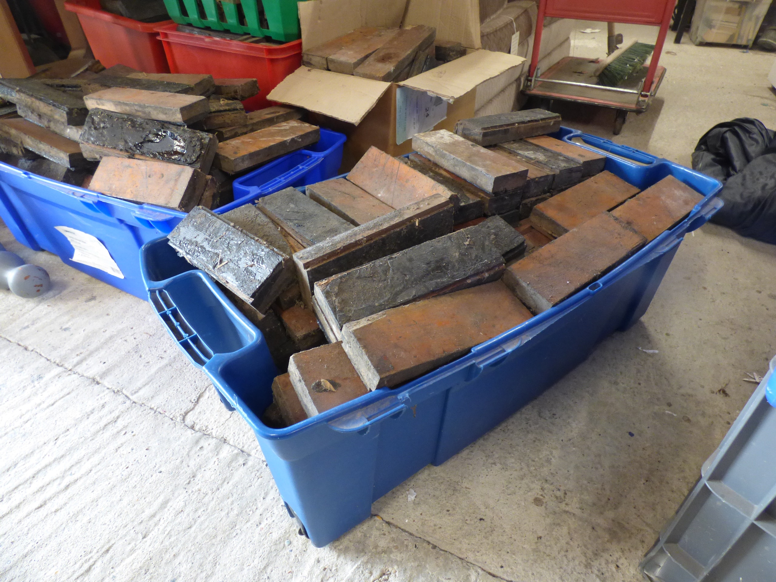 10x Boxes of used antique parquet flooring