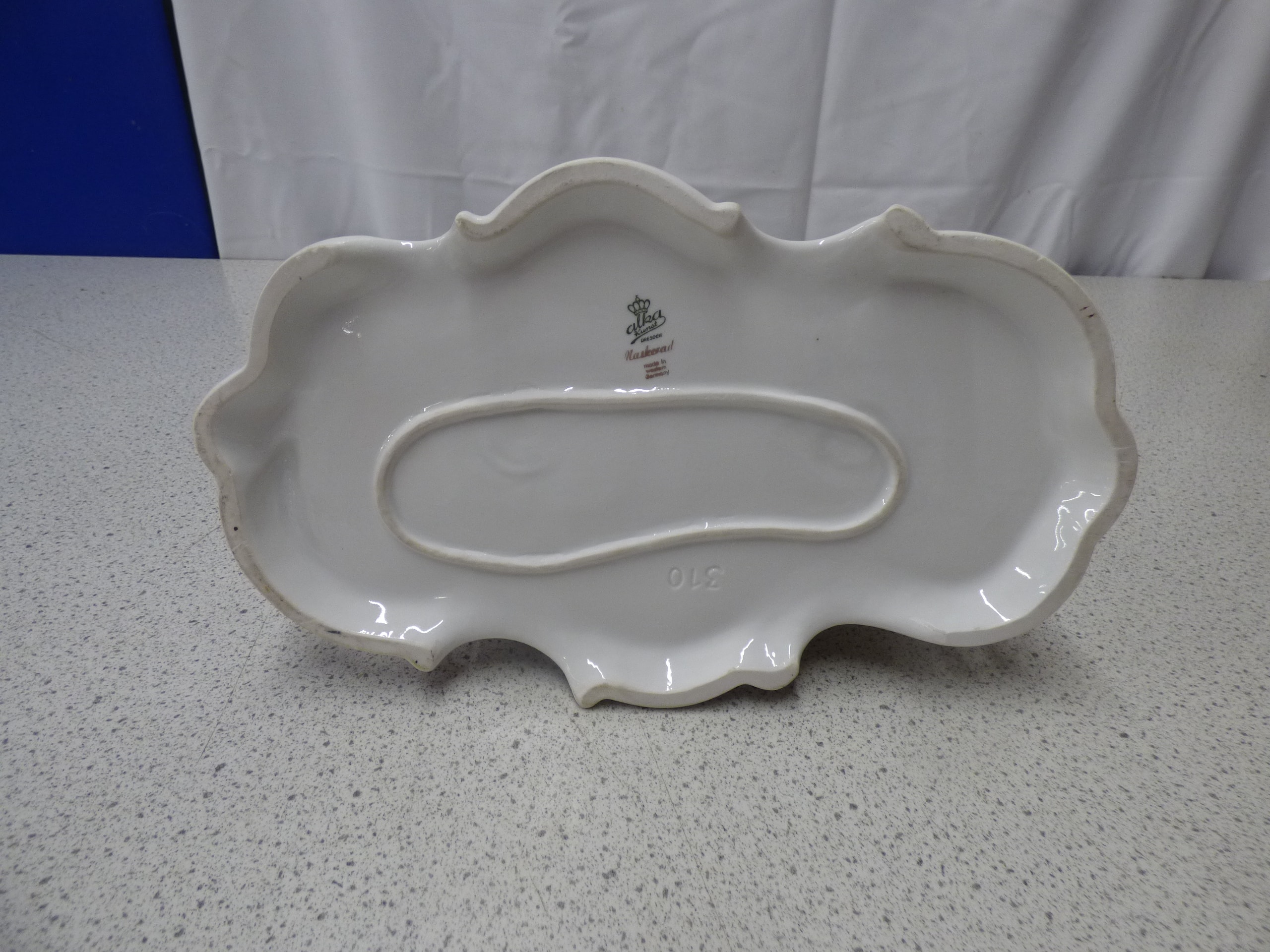 A multi-figure porcelain figurine in white, gold, green, purple, yellow, orange, and flesh tones, marked “al Ka”, “Germany” 21cm Tall