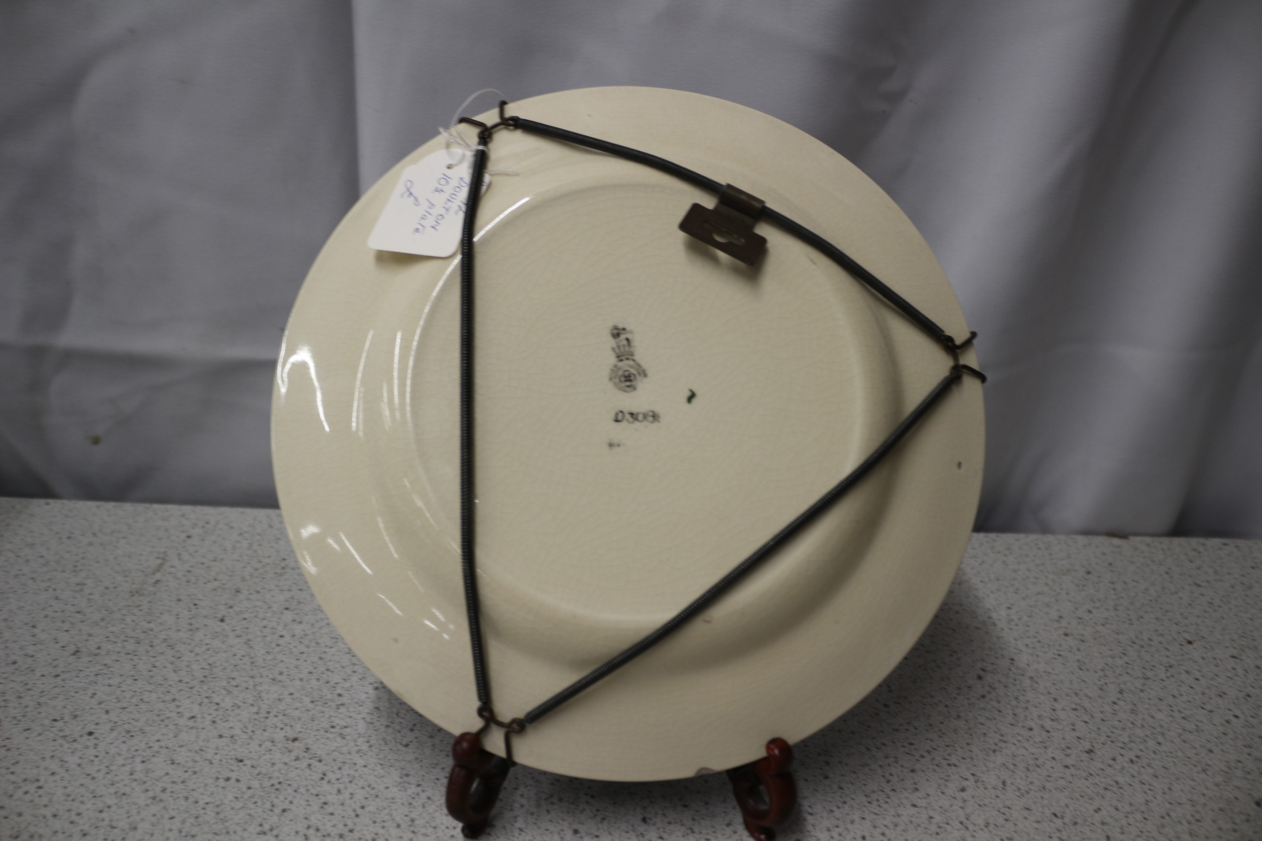 A deep blue, green, pink, and light yellow/gold patterned plate, marked ‘MADE IN ENGLAND ROYAL DOULTON ENGLAND’ and ‘D3088’ on the back. Islamic Series. 10.5″