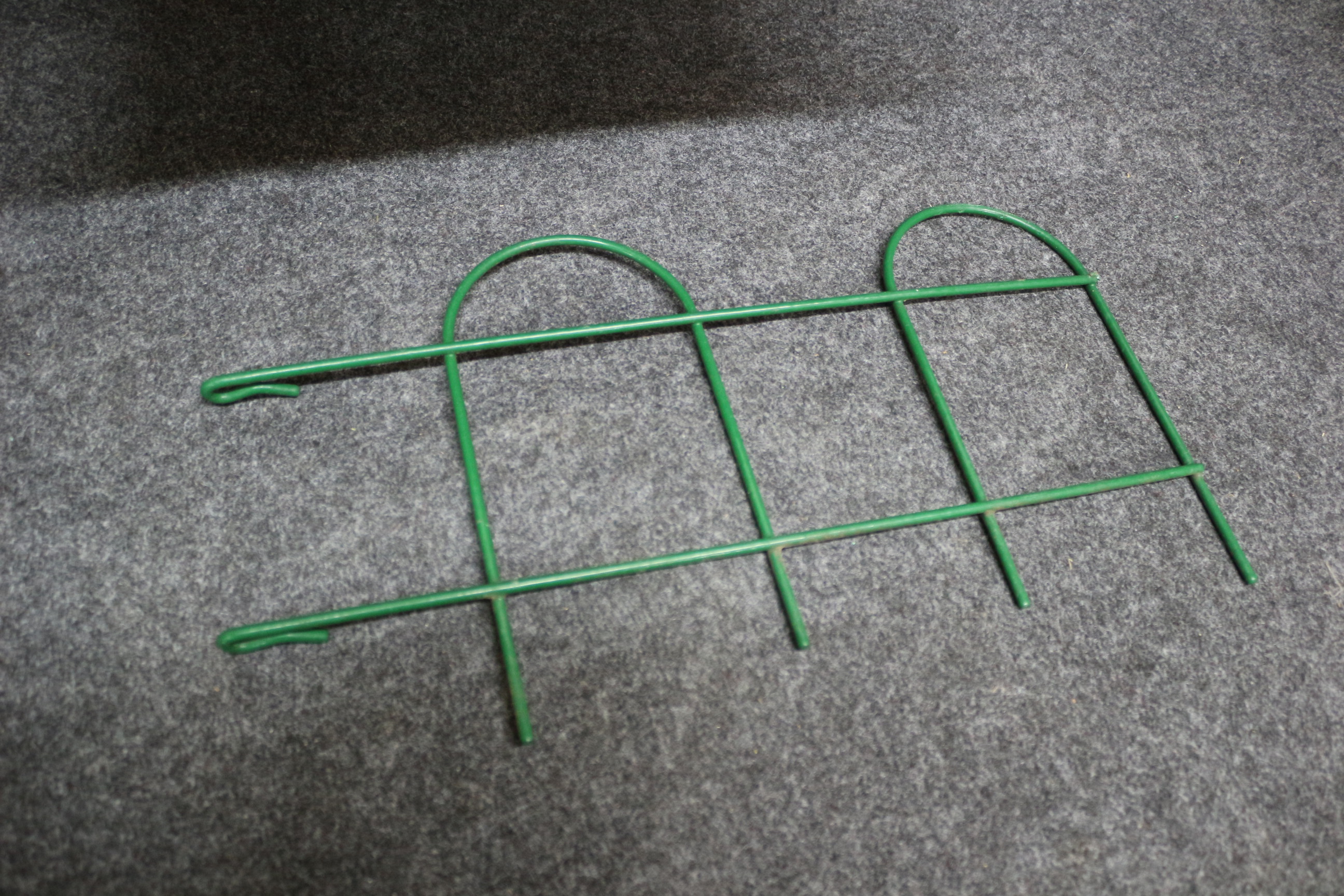 A collection of green coated wire mesh garden border fence sections featuring arched tops and interlocking ends.