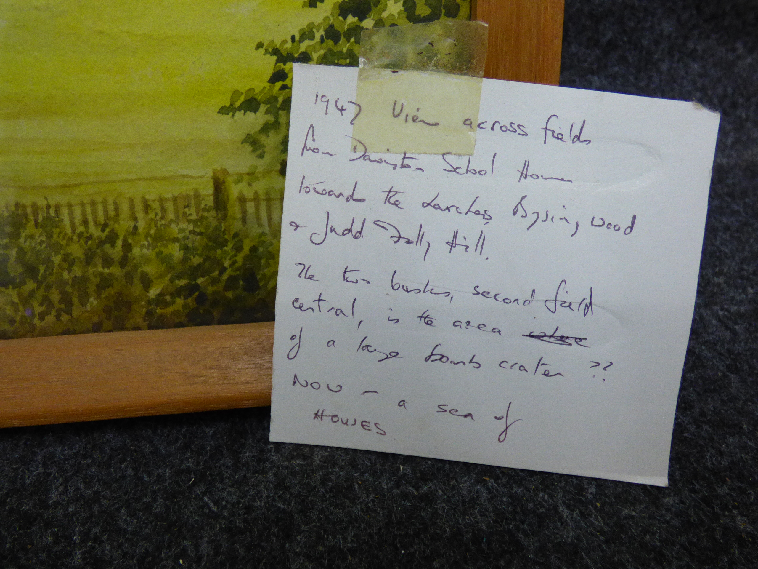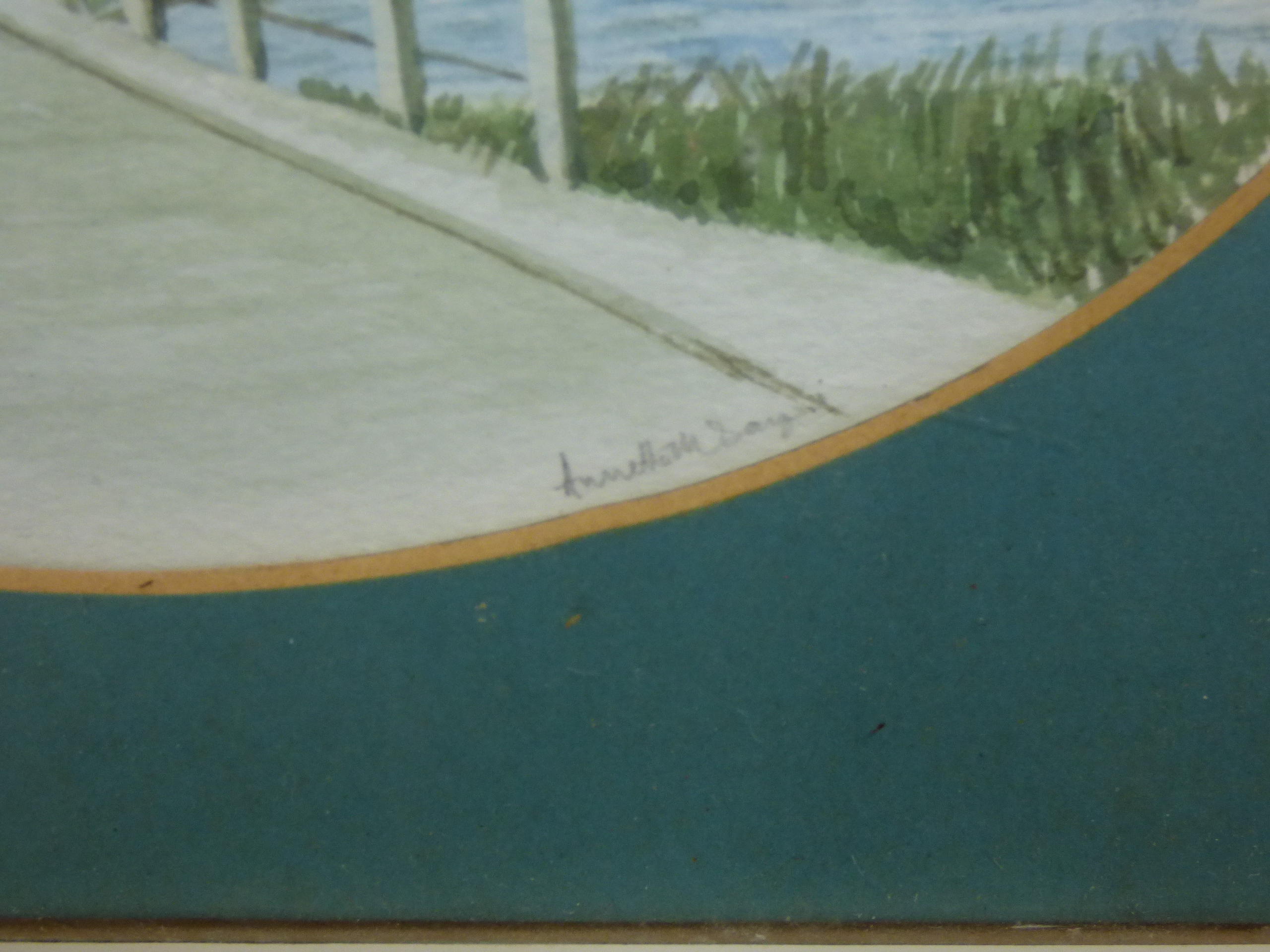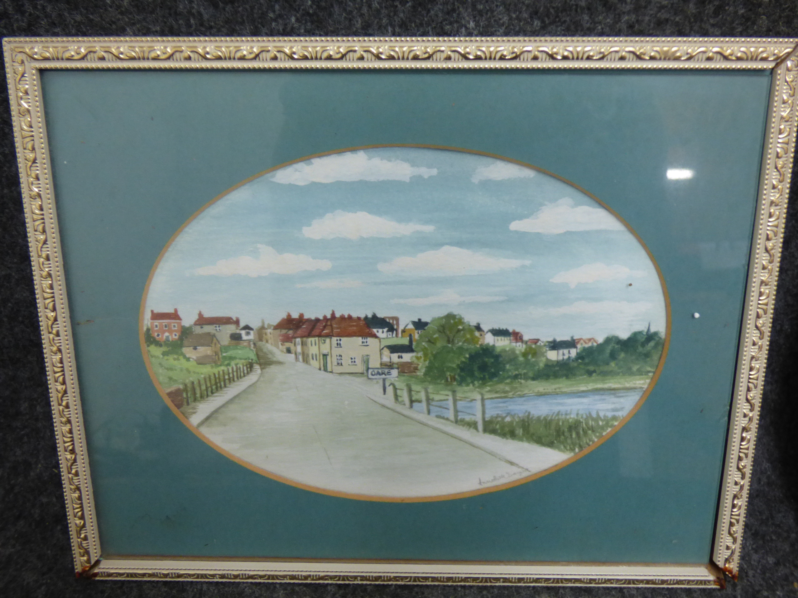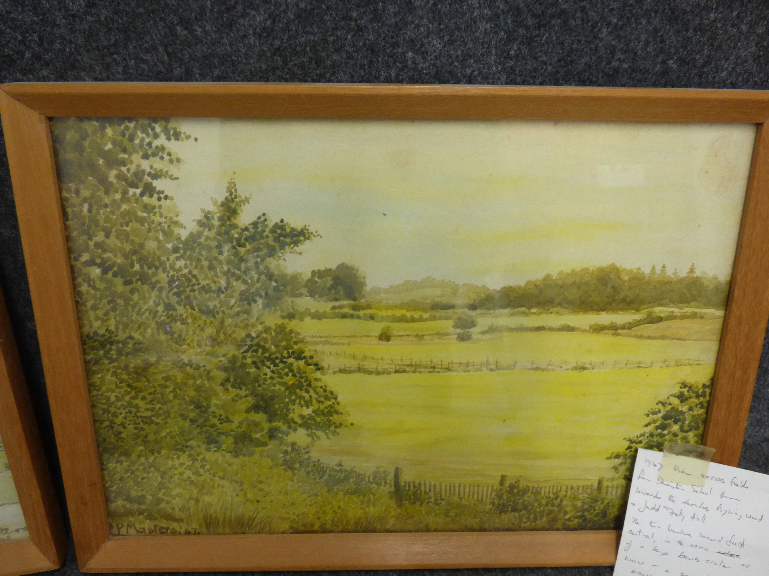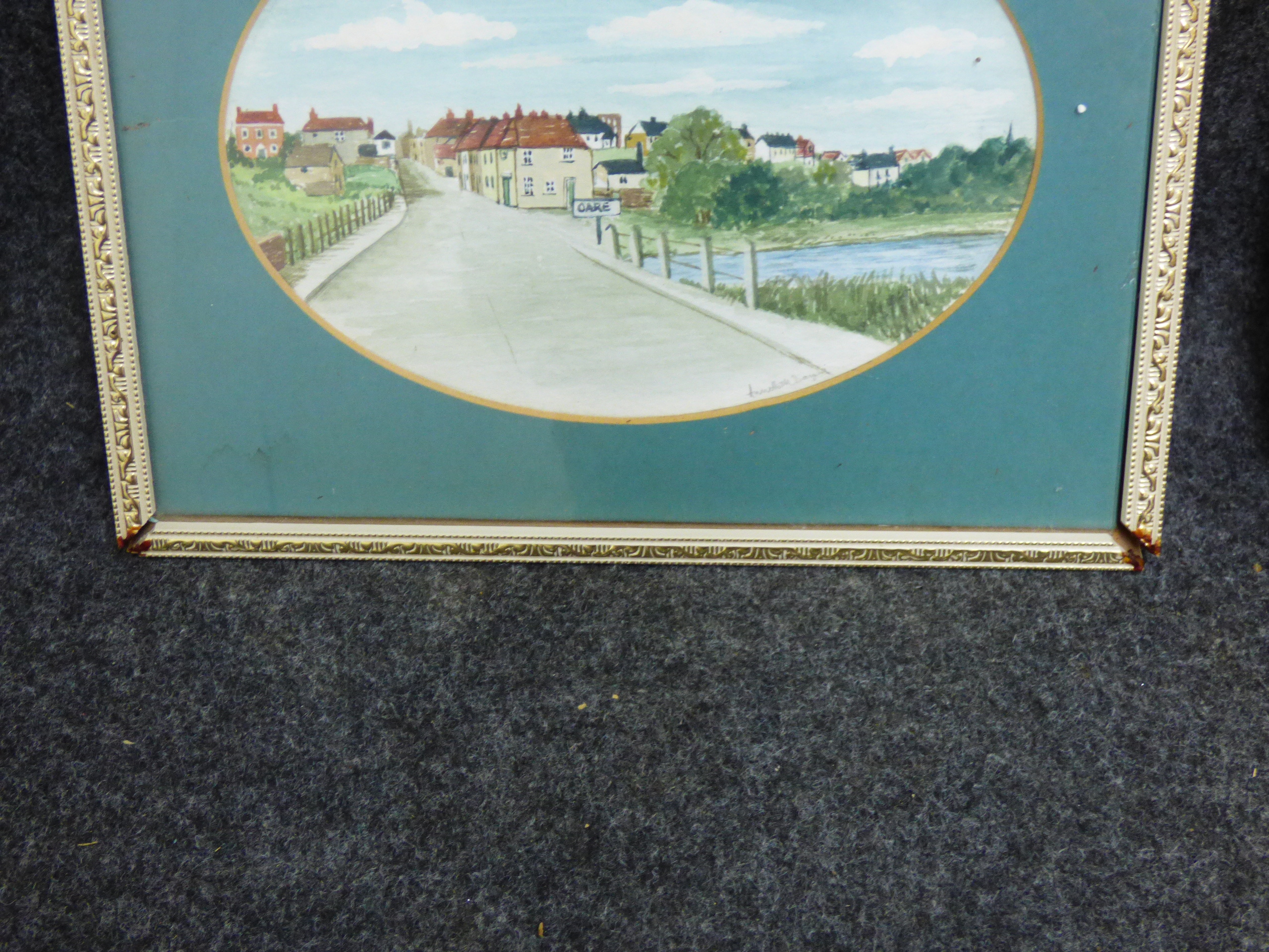 A trio of framed landscape paintings including two pen and wash signed by P. Masters dated 1947 and 1948 and one oval-mounted scene signed by Annette Day. 2x 36.5×26.5cm 1x 24.5x19cm
