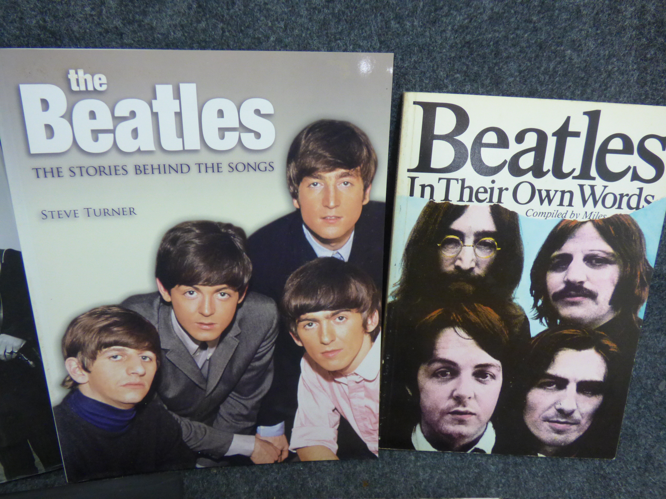 A collection of five books including The Beatles Unseen Archives, The Stories Behind The Songs, Beatles In Their Own Words, Paul McCartney Many Years From Now, and The Lennon Companion.