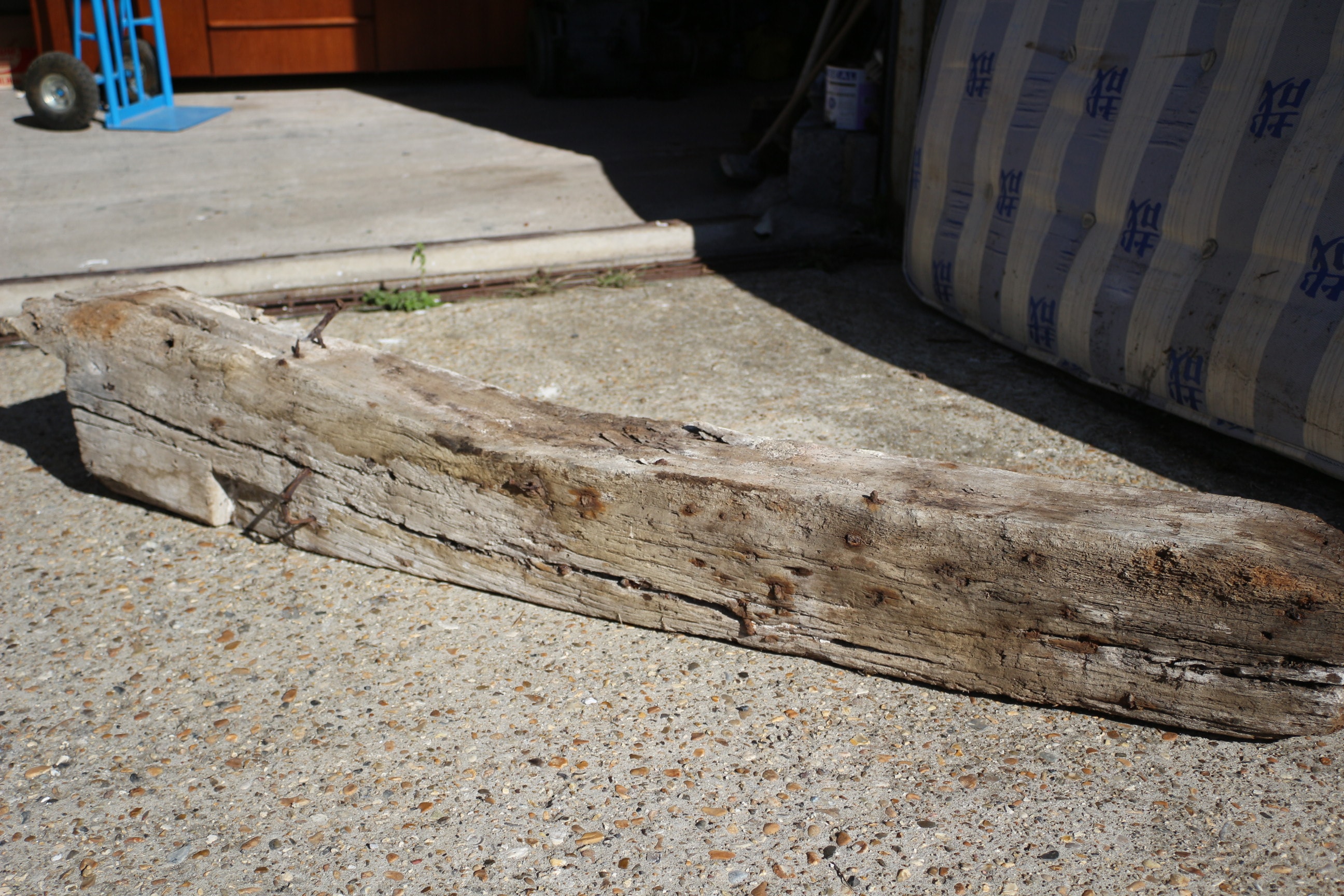 A weathered, Oak beam. 163x25x20cm