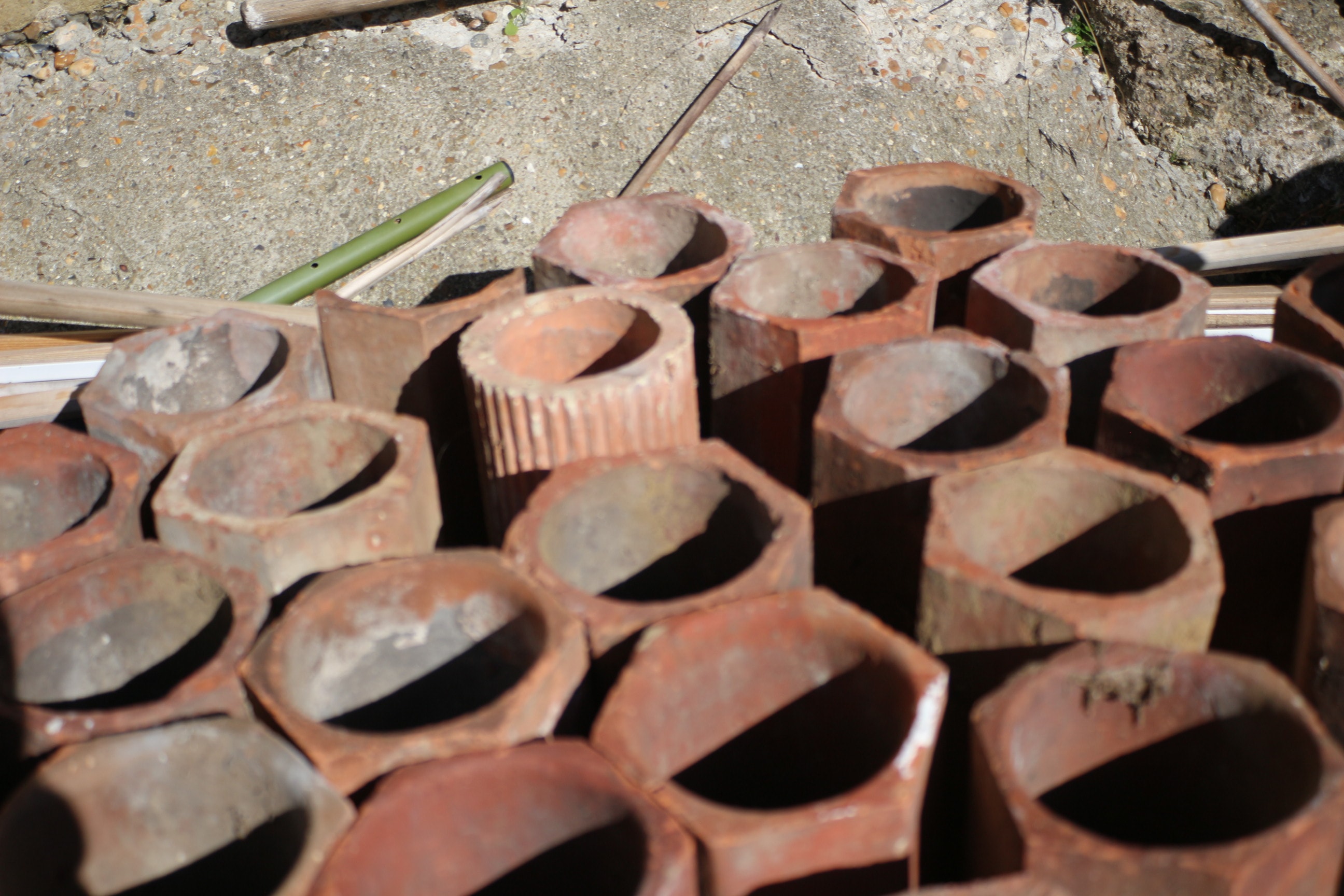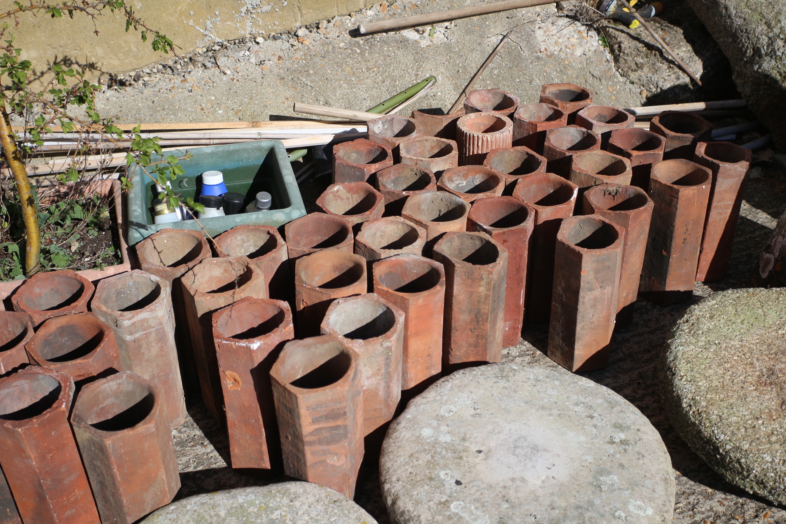 Large quantity of terracotta tubes in various condition. 29cm Tall, 12cm wide