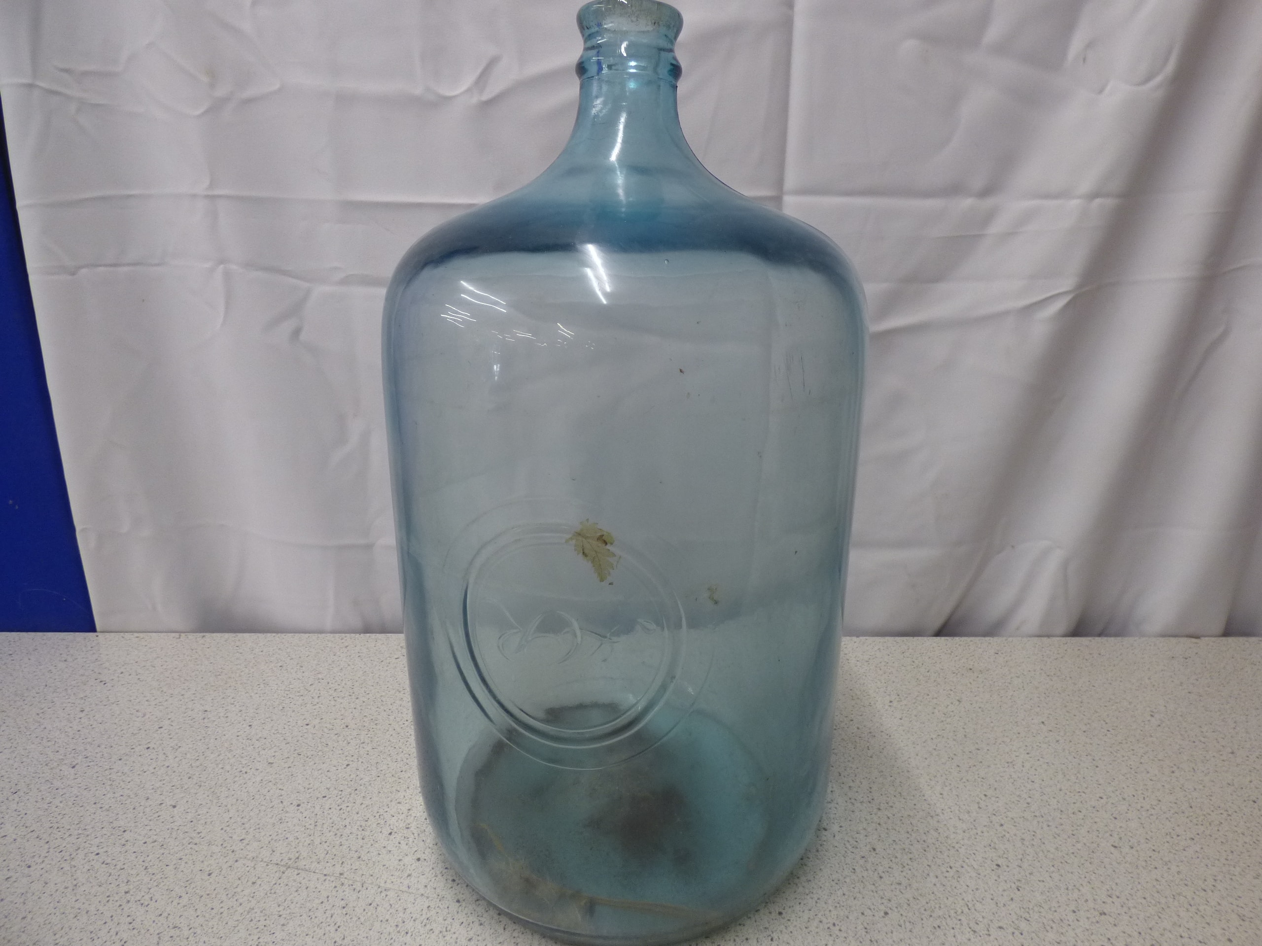 Lot 177: A Large Blue-Green Tinted Glass Carboy Demijohn with Embossed Mark