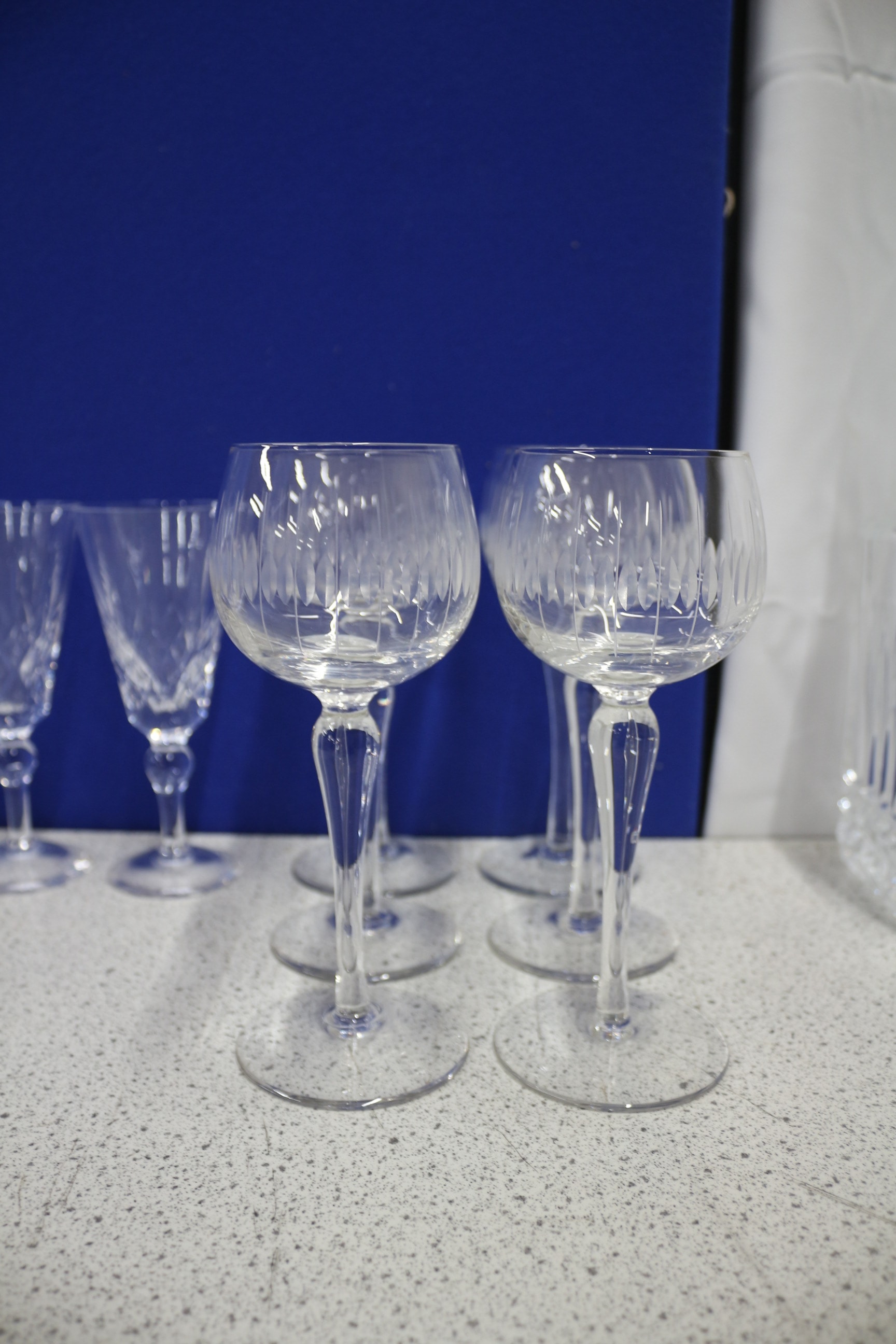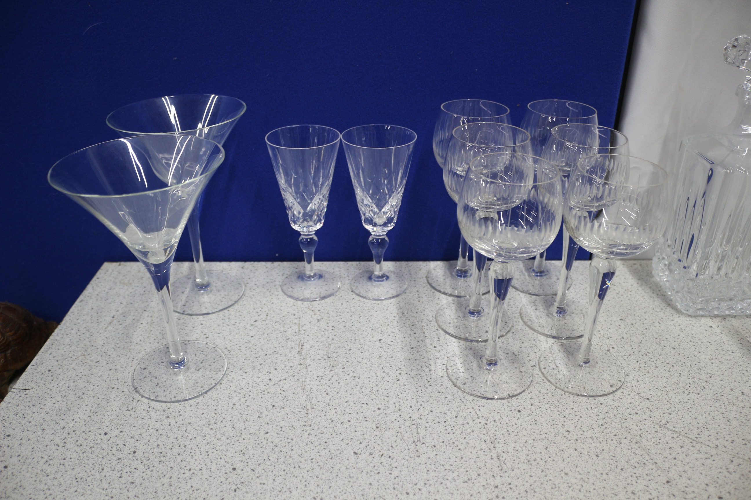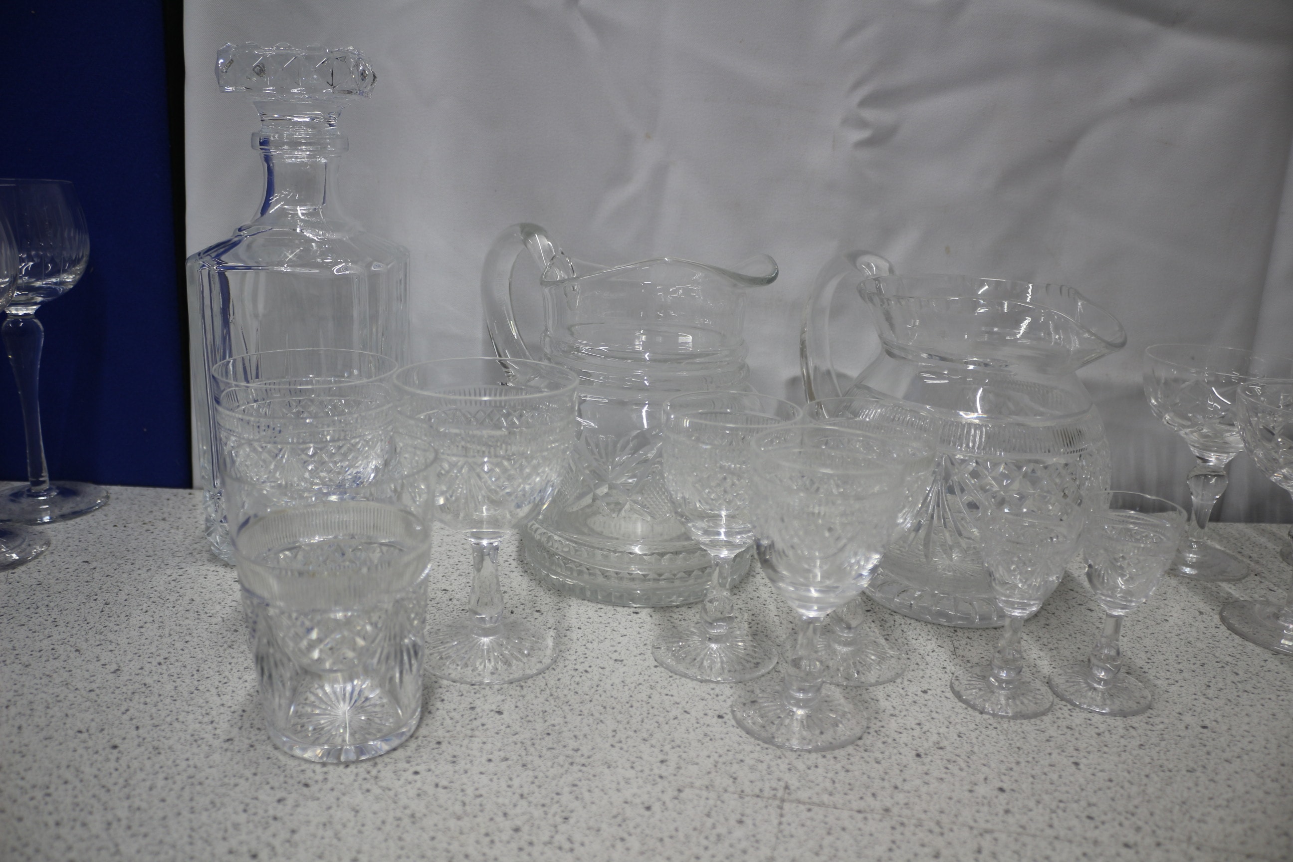 A Collection of Clear Crystal Glass Drinking Vessels and Decanter