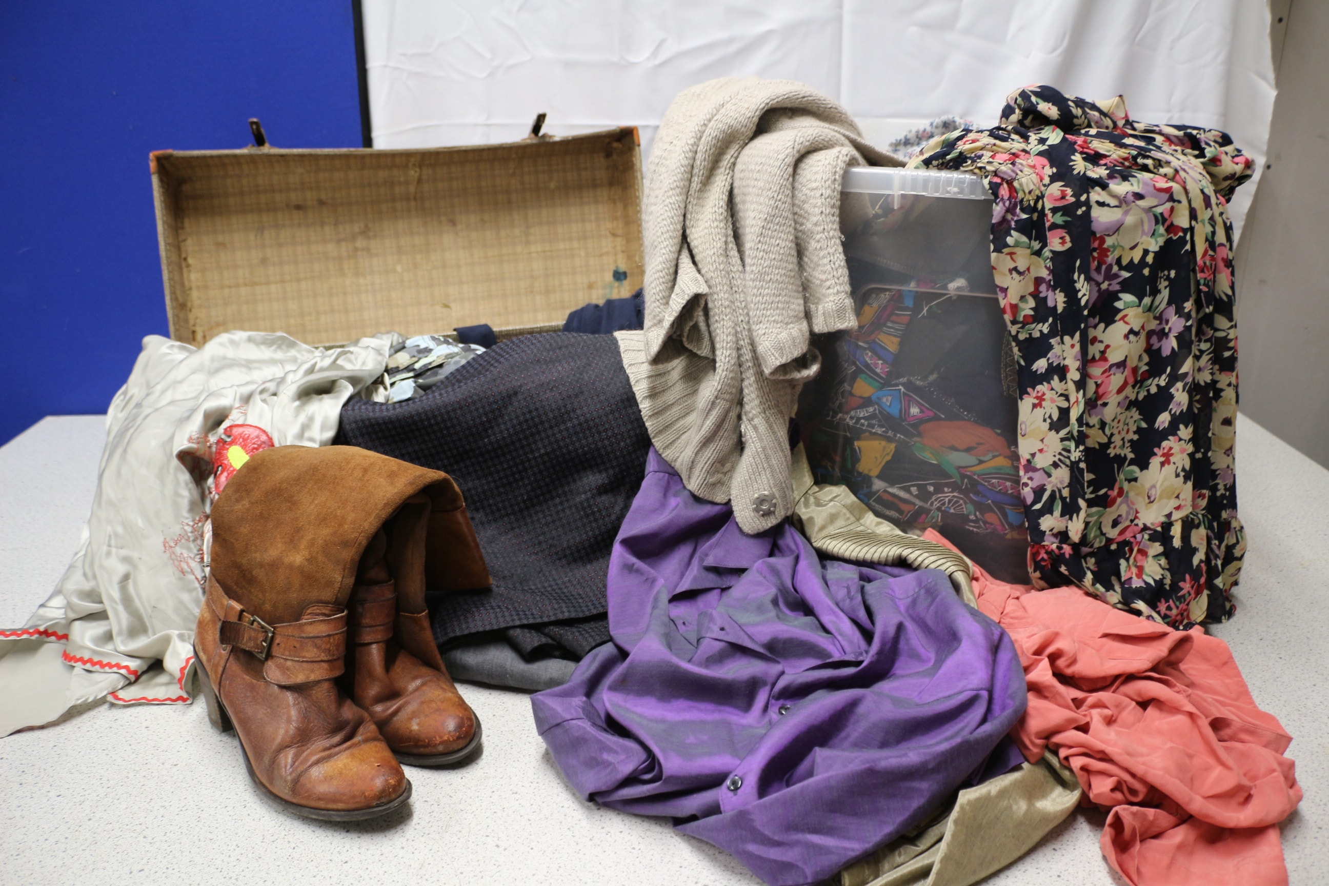 Lot 26: Mixed Lot of Vintage and Modern Clothing in Vintage Suitcase
