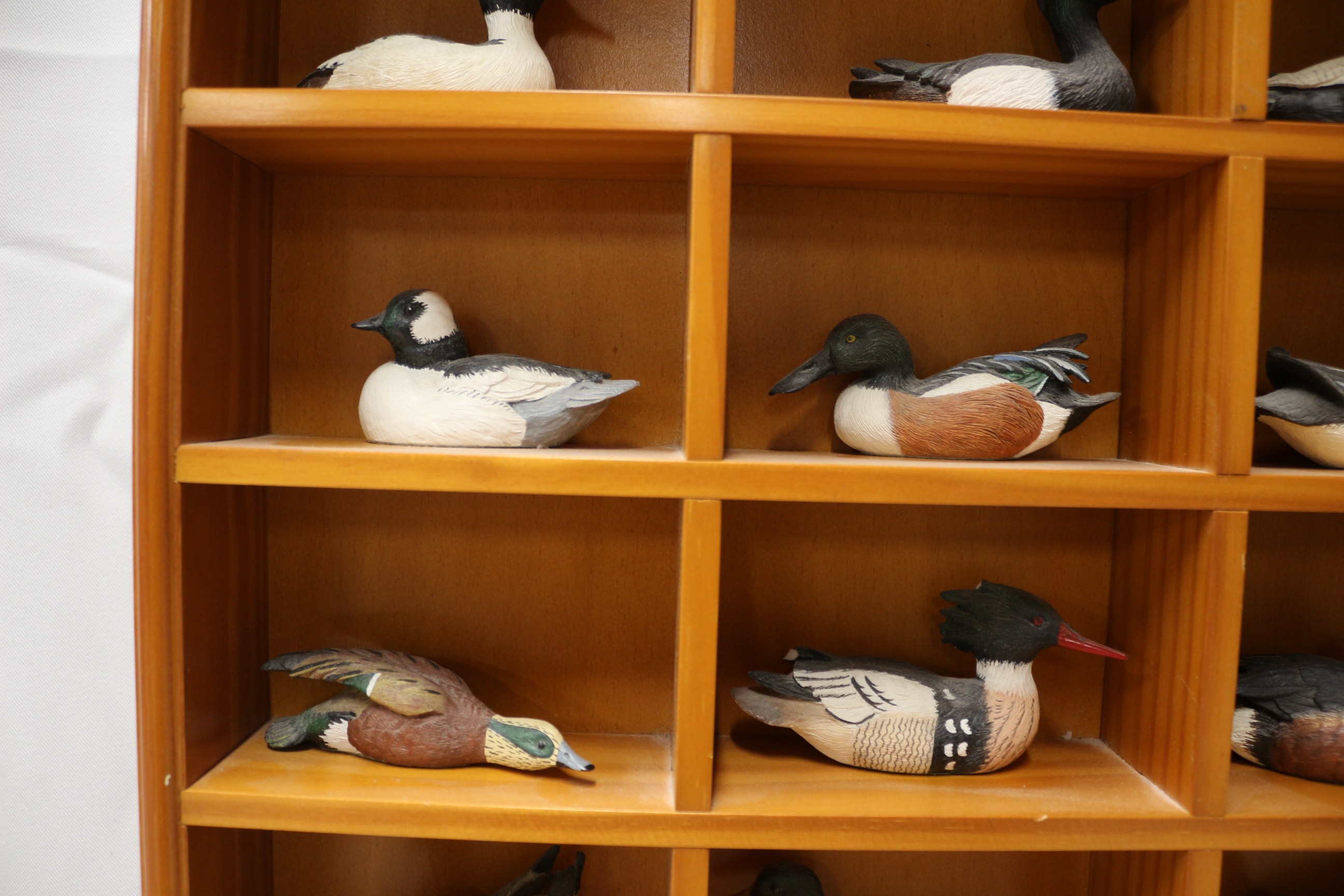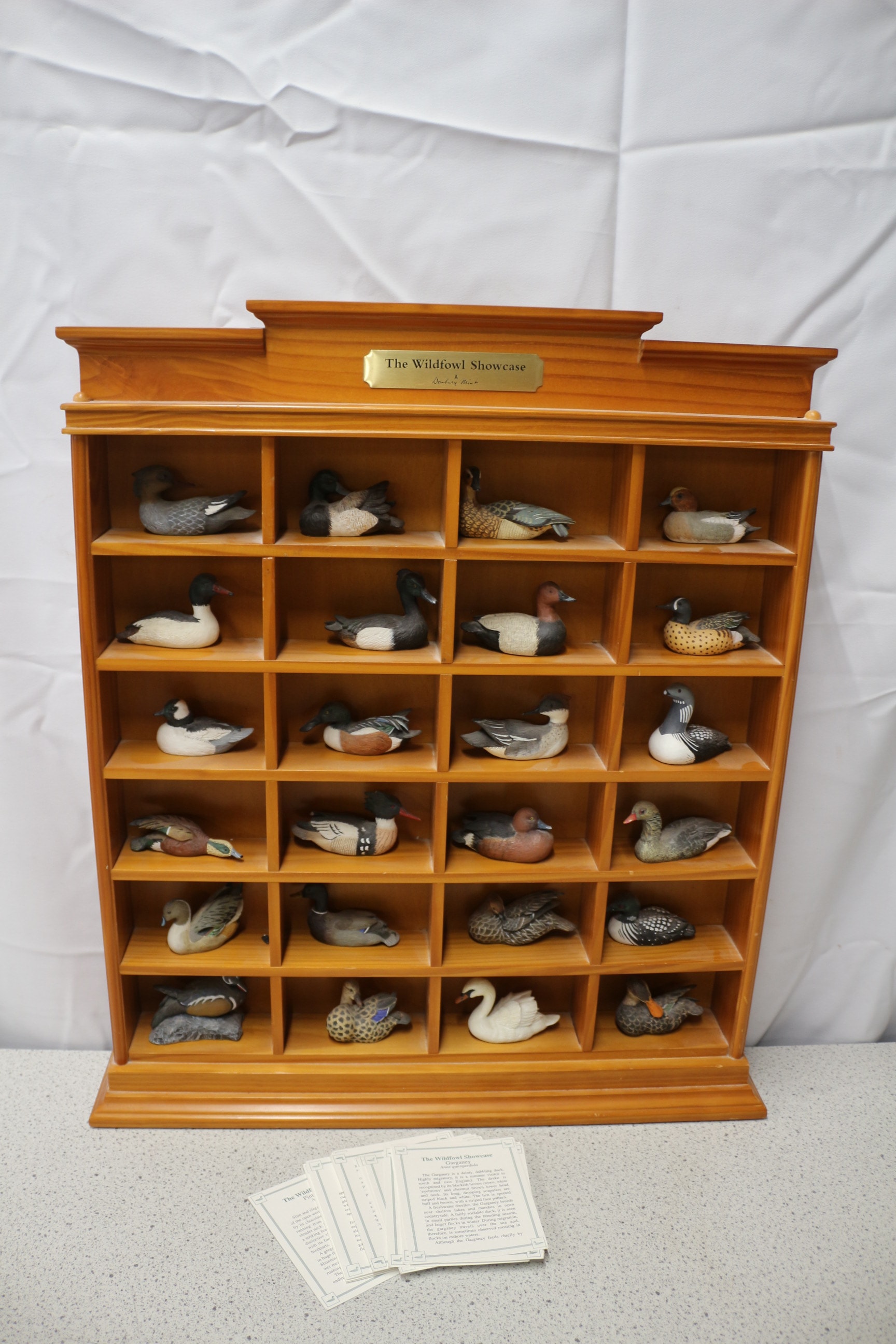 Lot 37: Danbury Mint The Wildfowl Showcase with 24 Miniature Bird Figurines