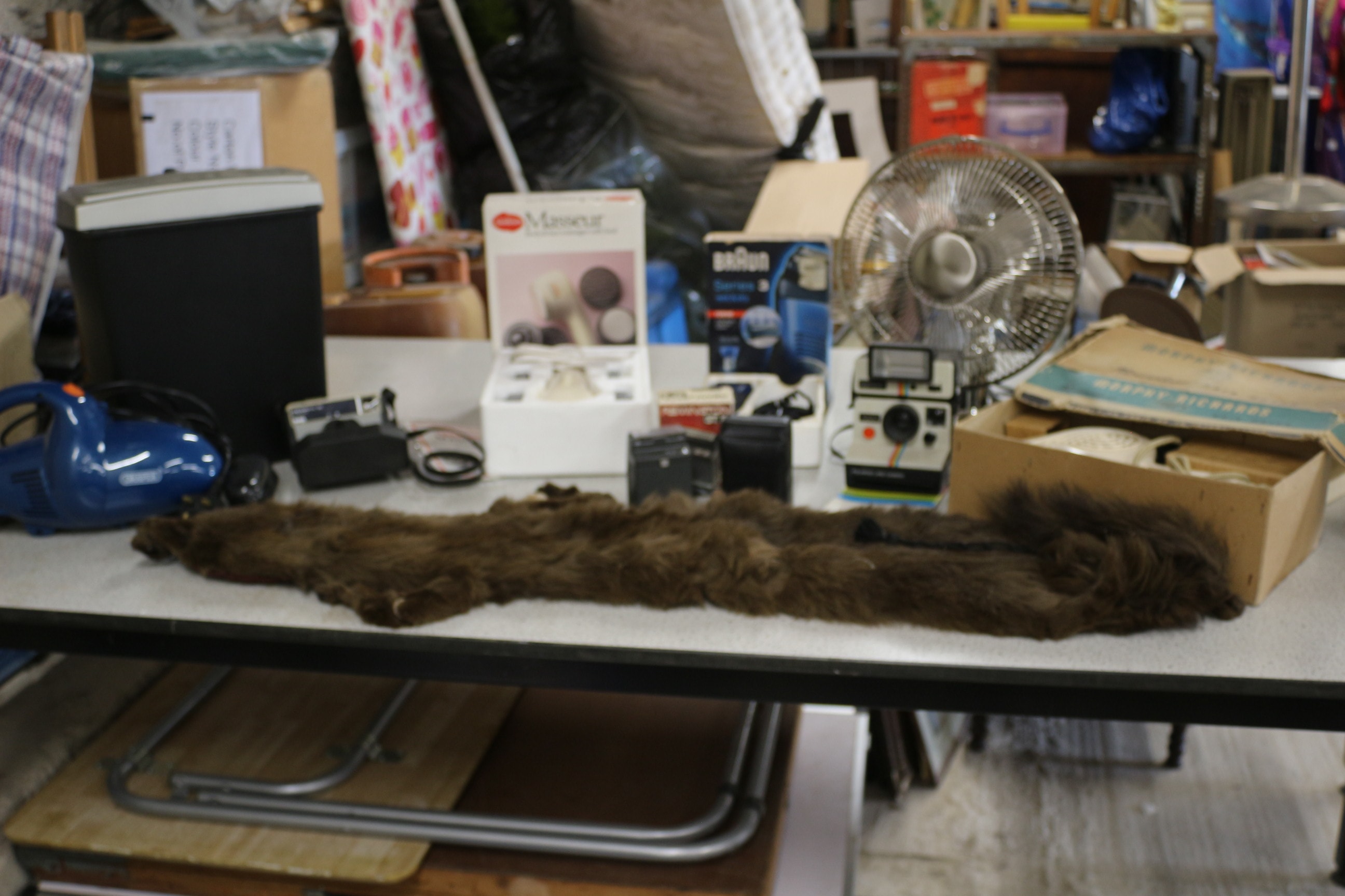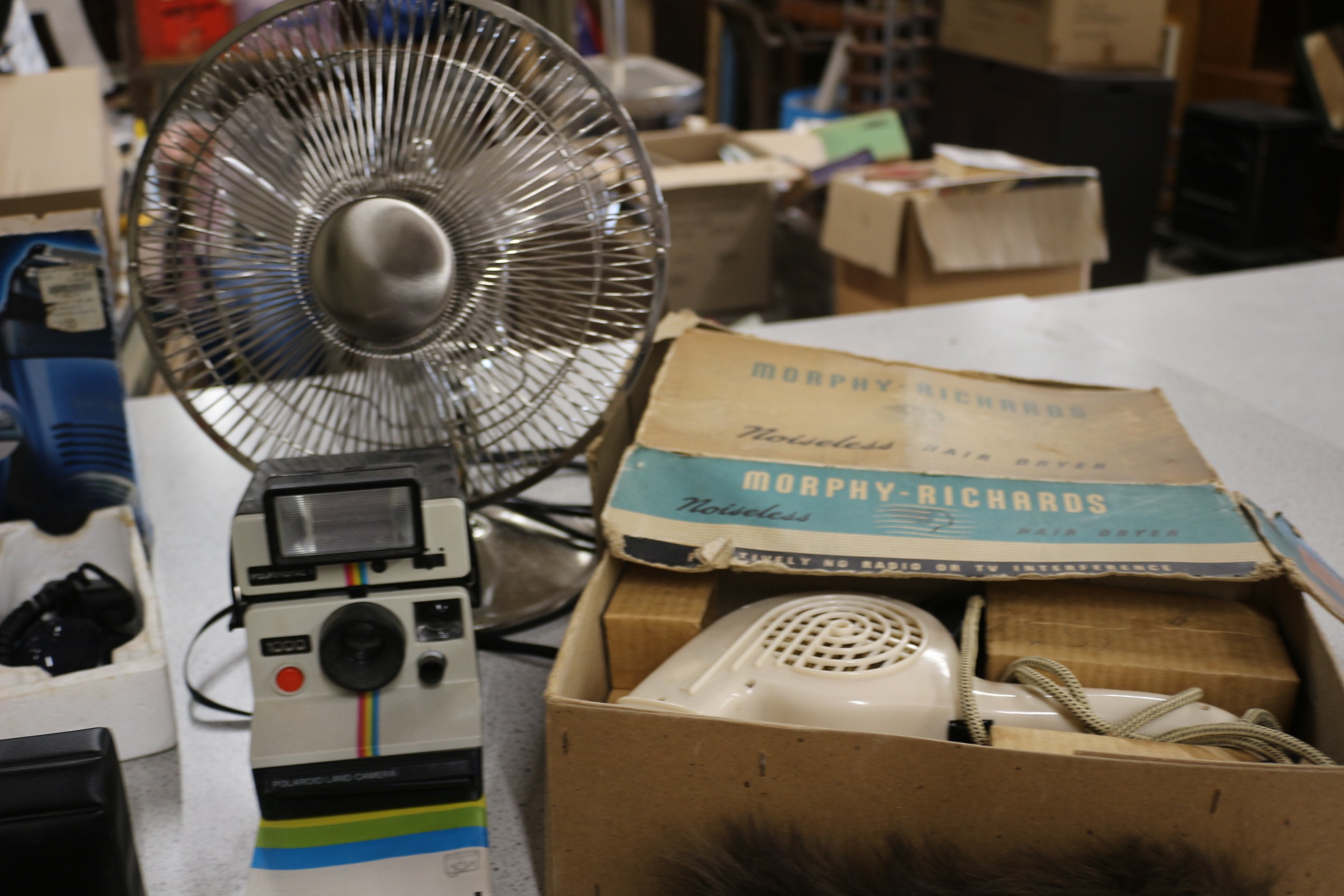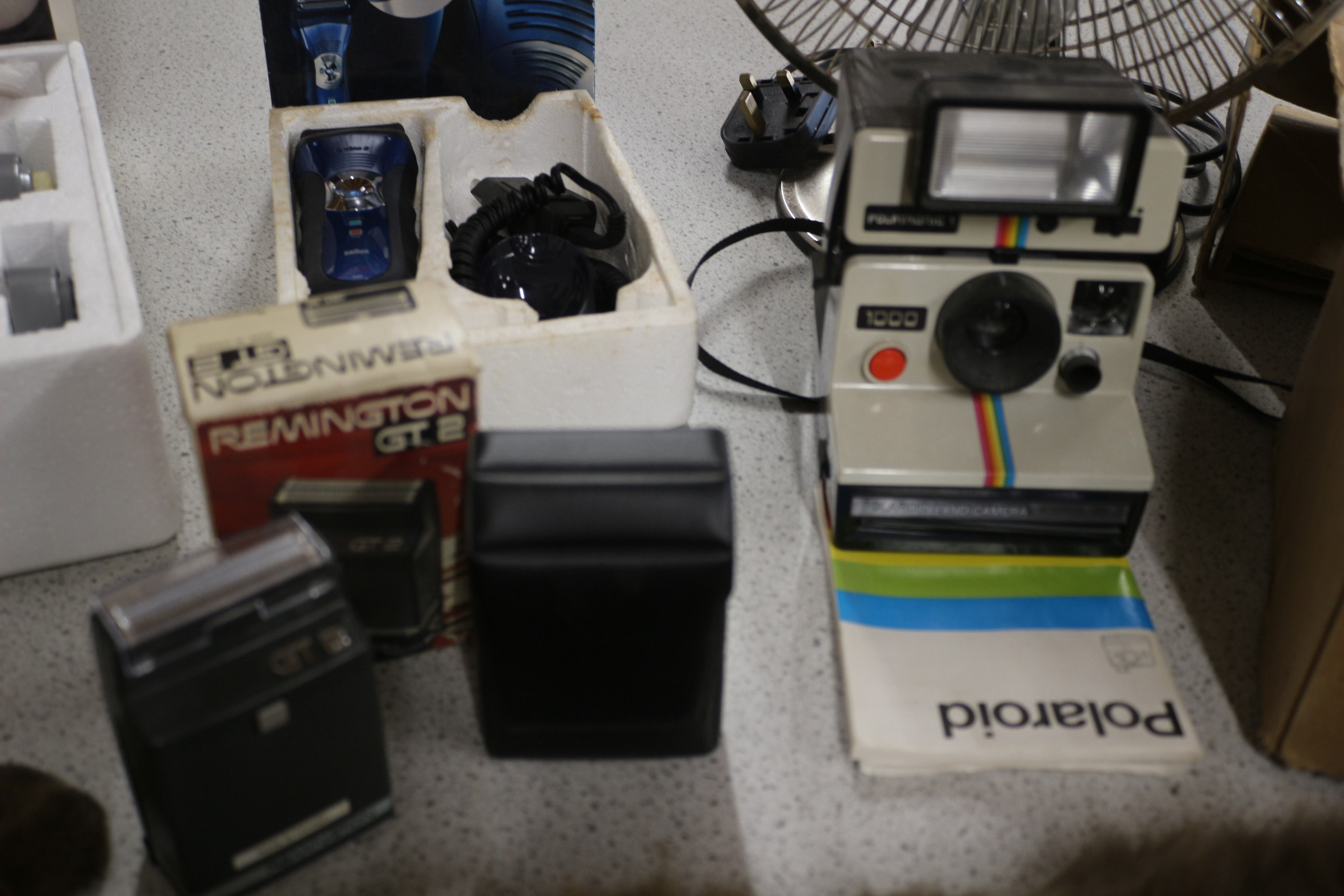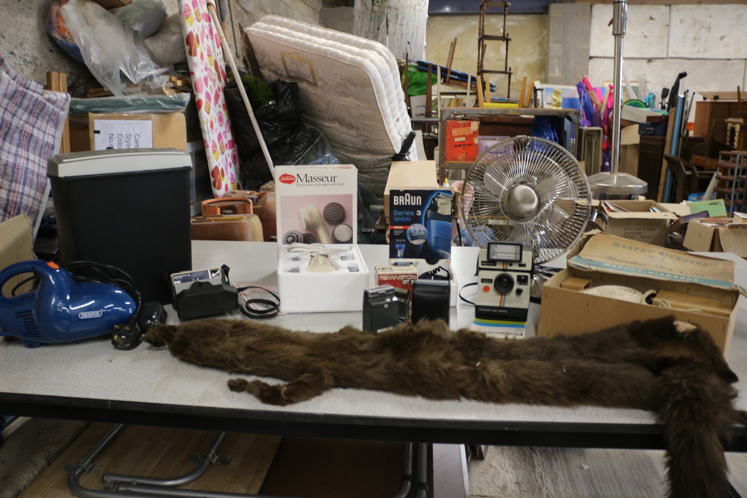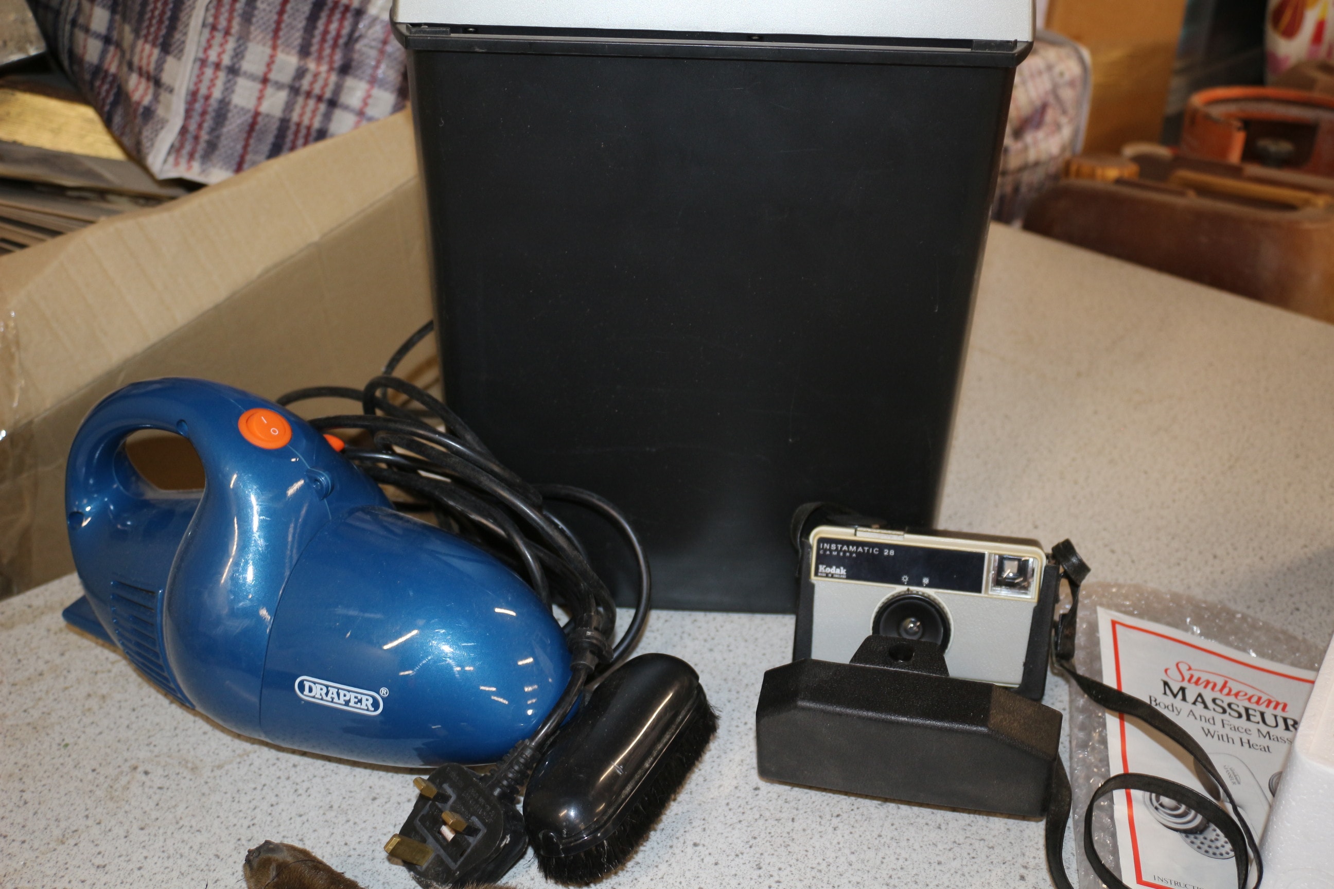 Mixed Lot inc Electrical Items, Cameras, Fan , A white Sunbeam Masseur body and face massager and more