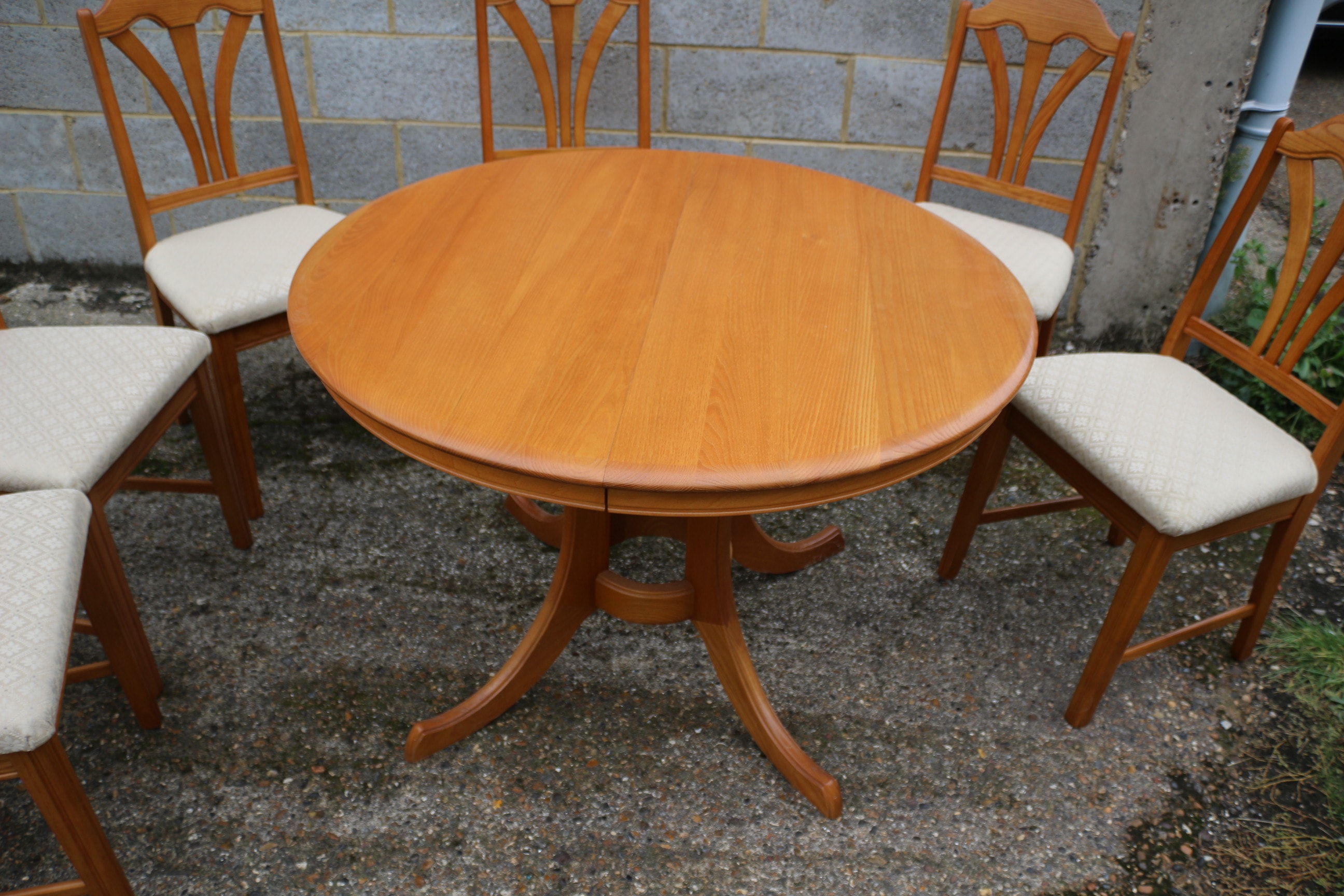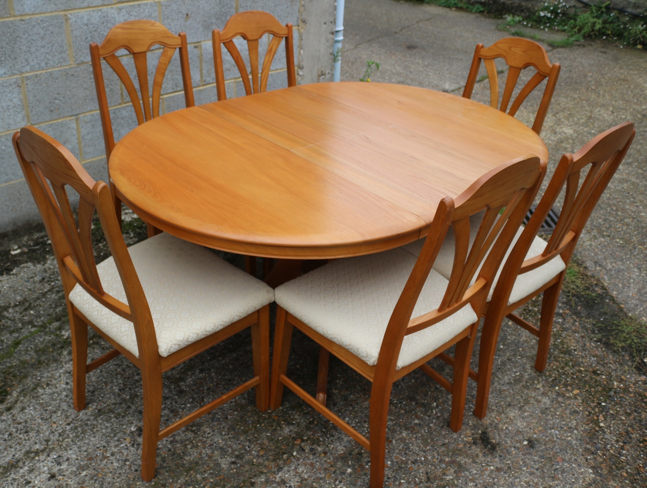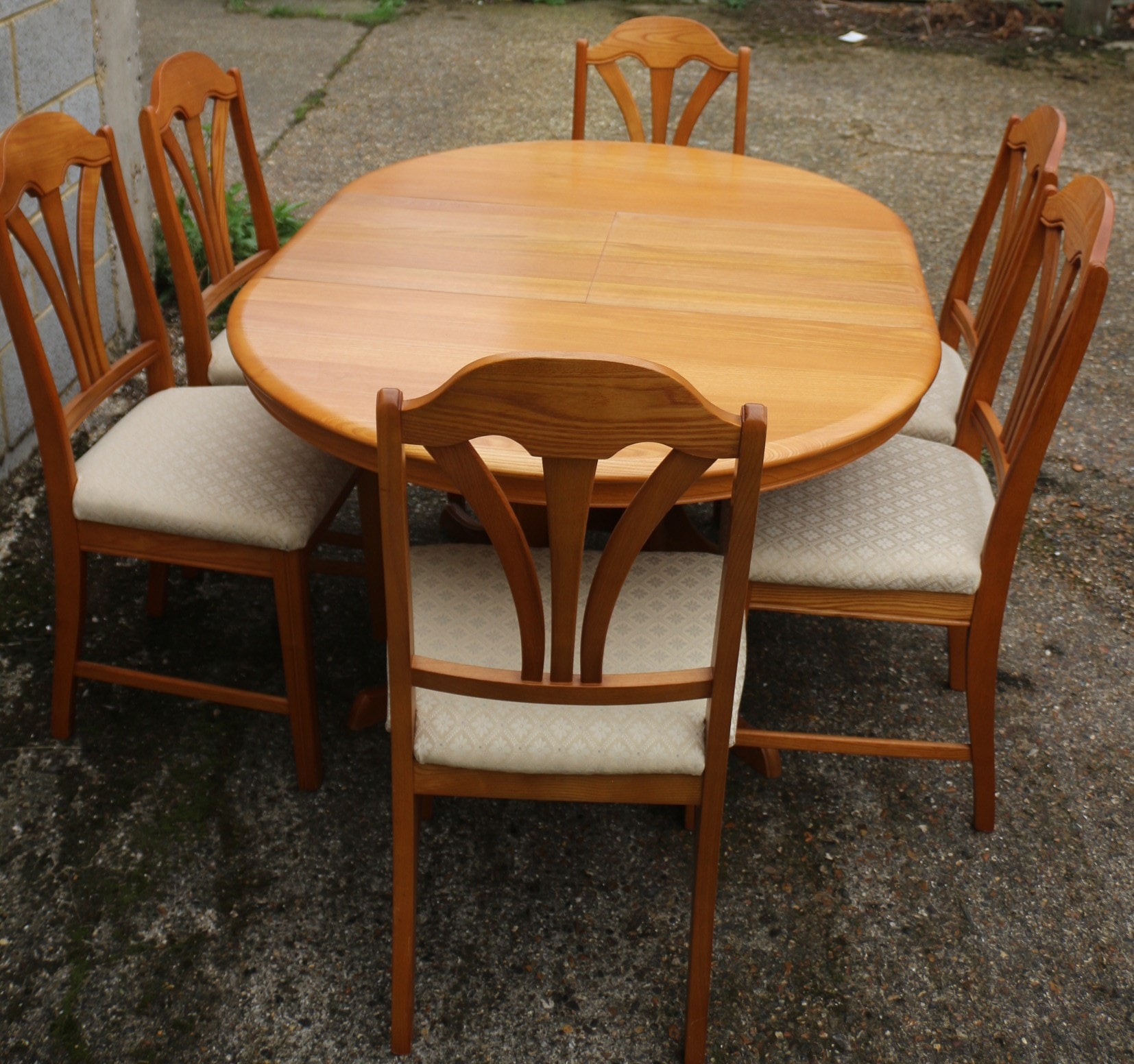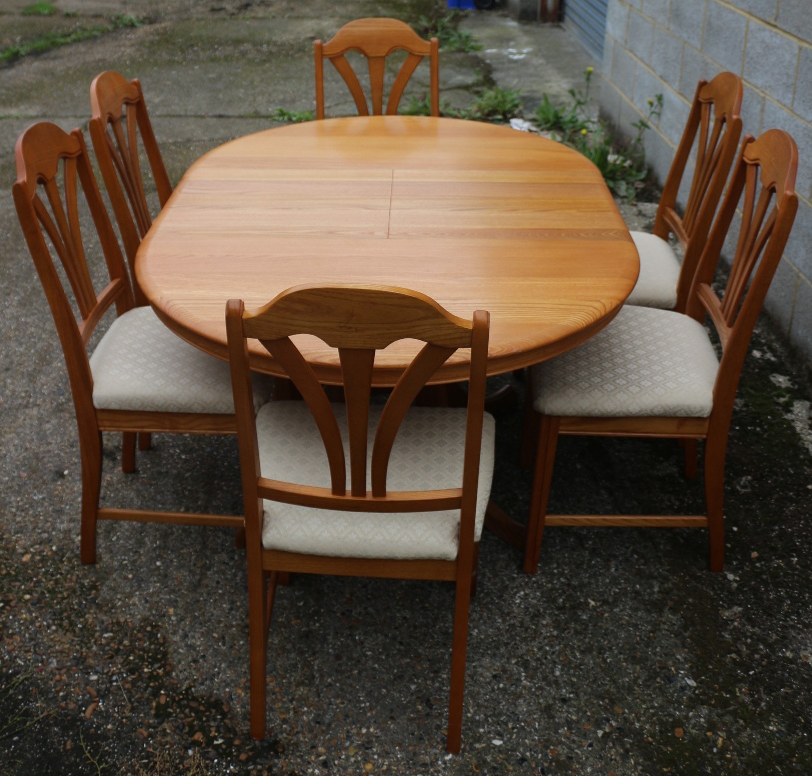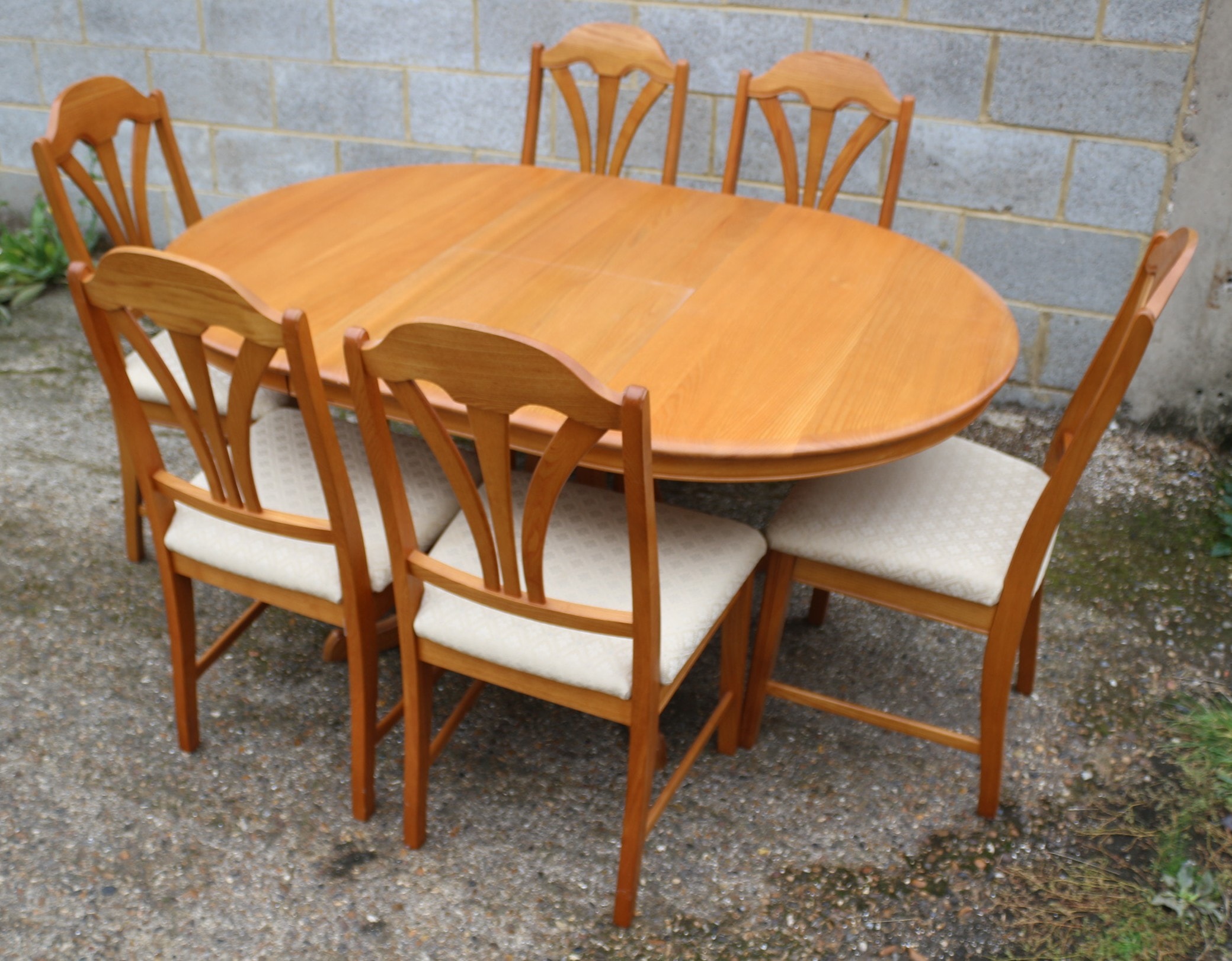 A Jentique Mid-Century Teak Extending Dining Table and Set of Six Chairs