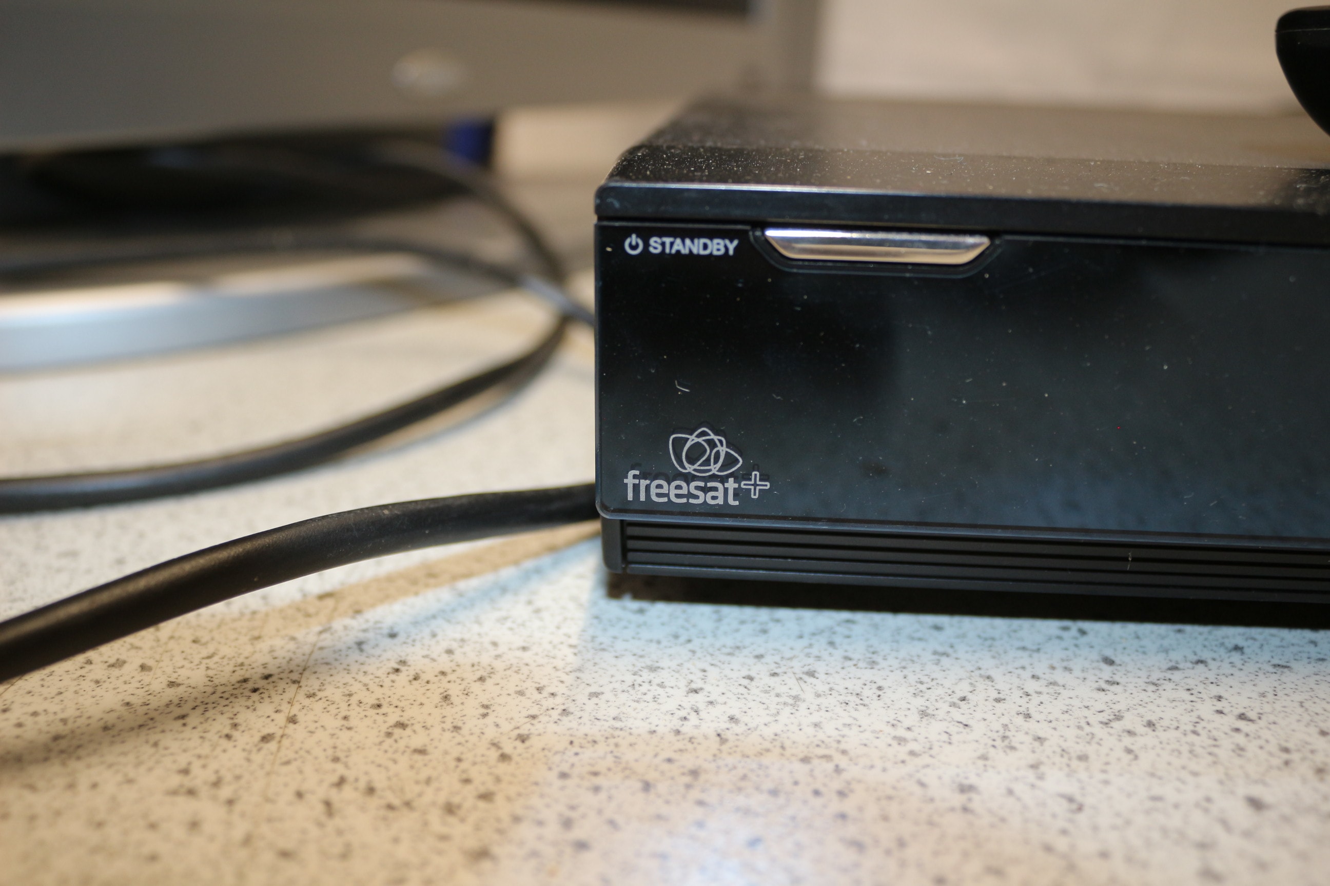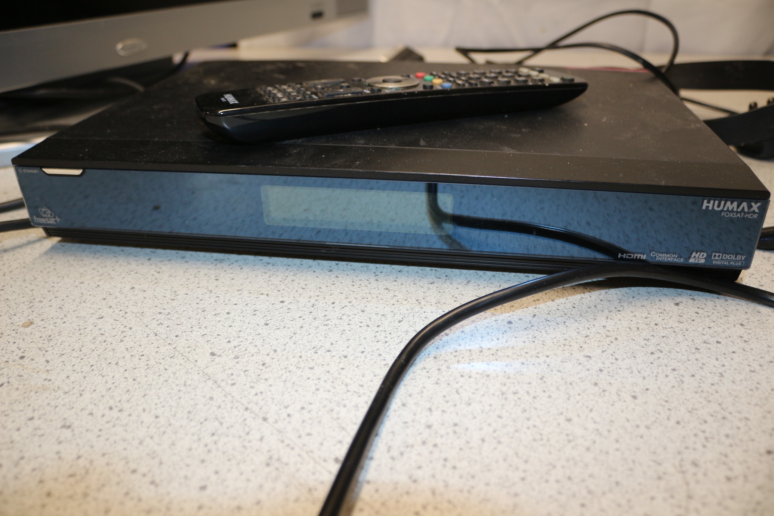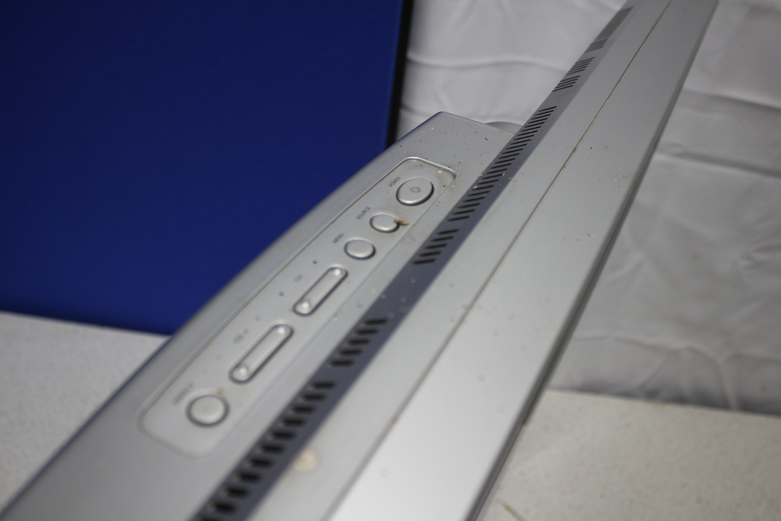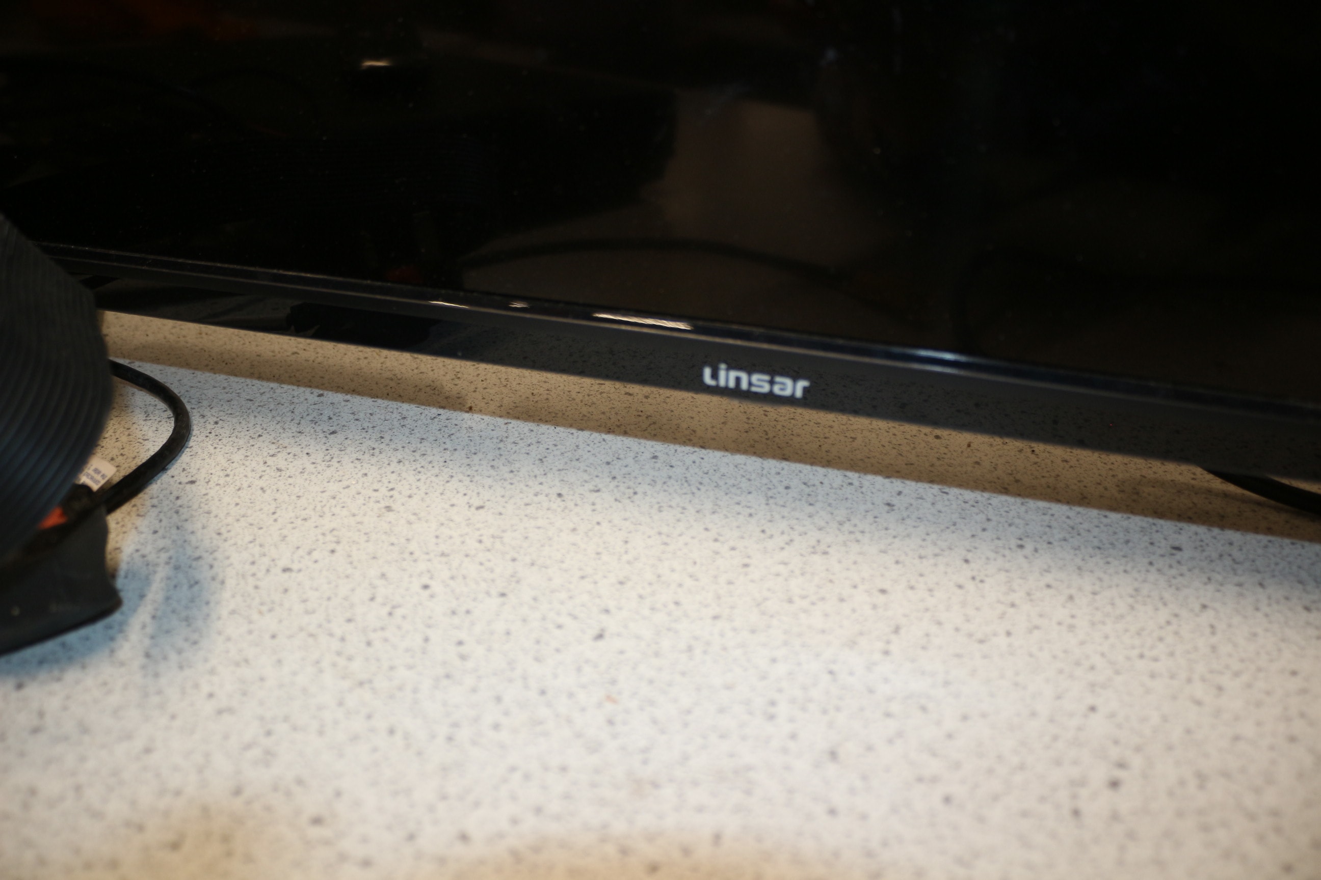 A silver/grey Goodmans GTV30WLCD 30″ wide screen LCD monitor, a black Linsar 32LED400 32″ HD LED TV, and a black Humax FOXTAT-HDR Freesat+ set-top box with a remote. All Untested