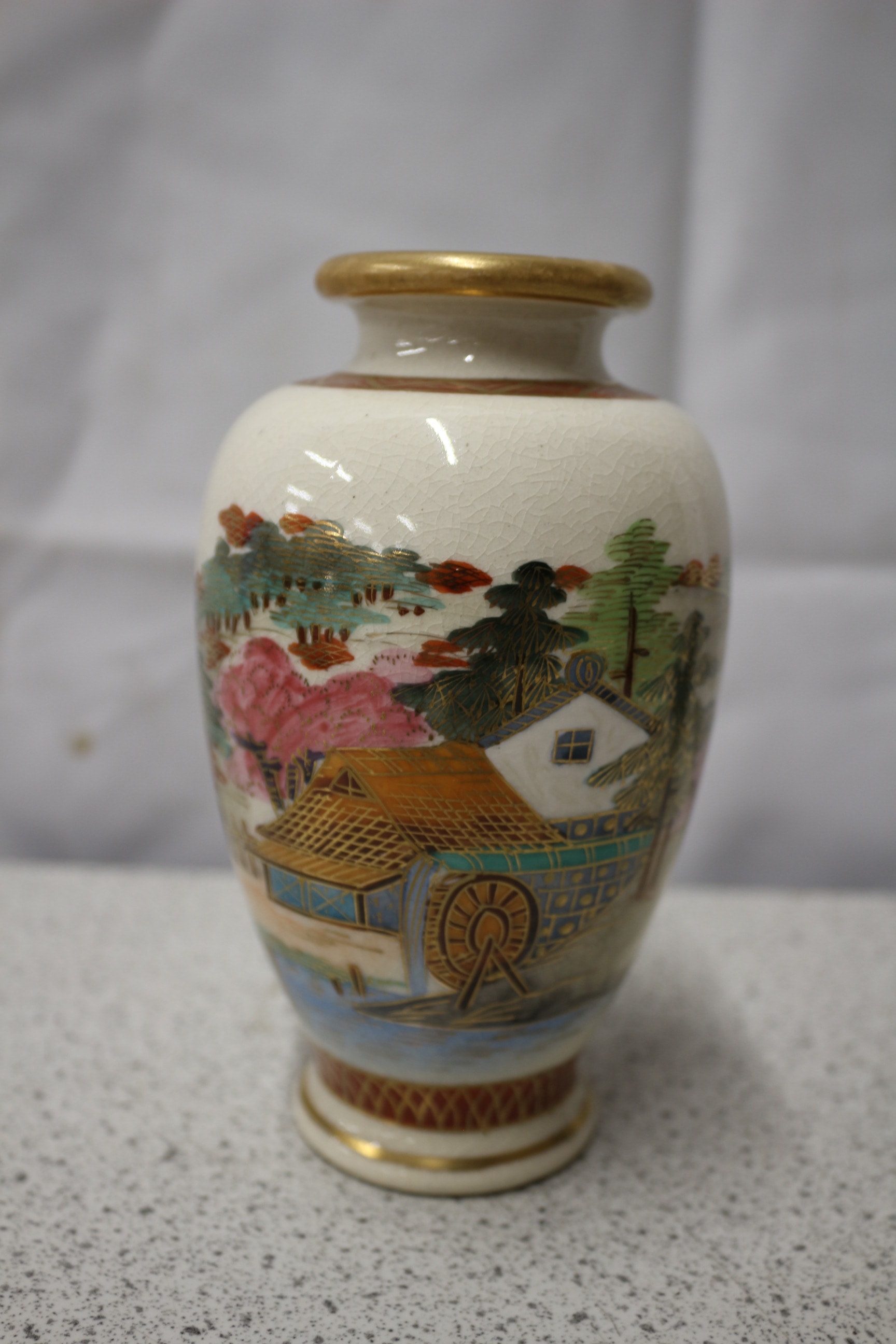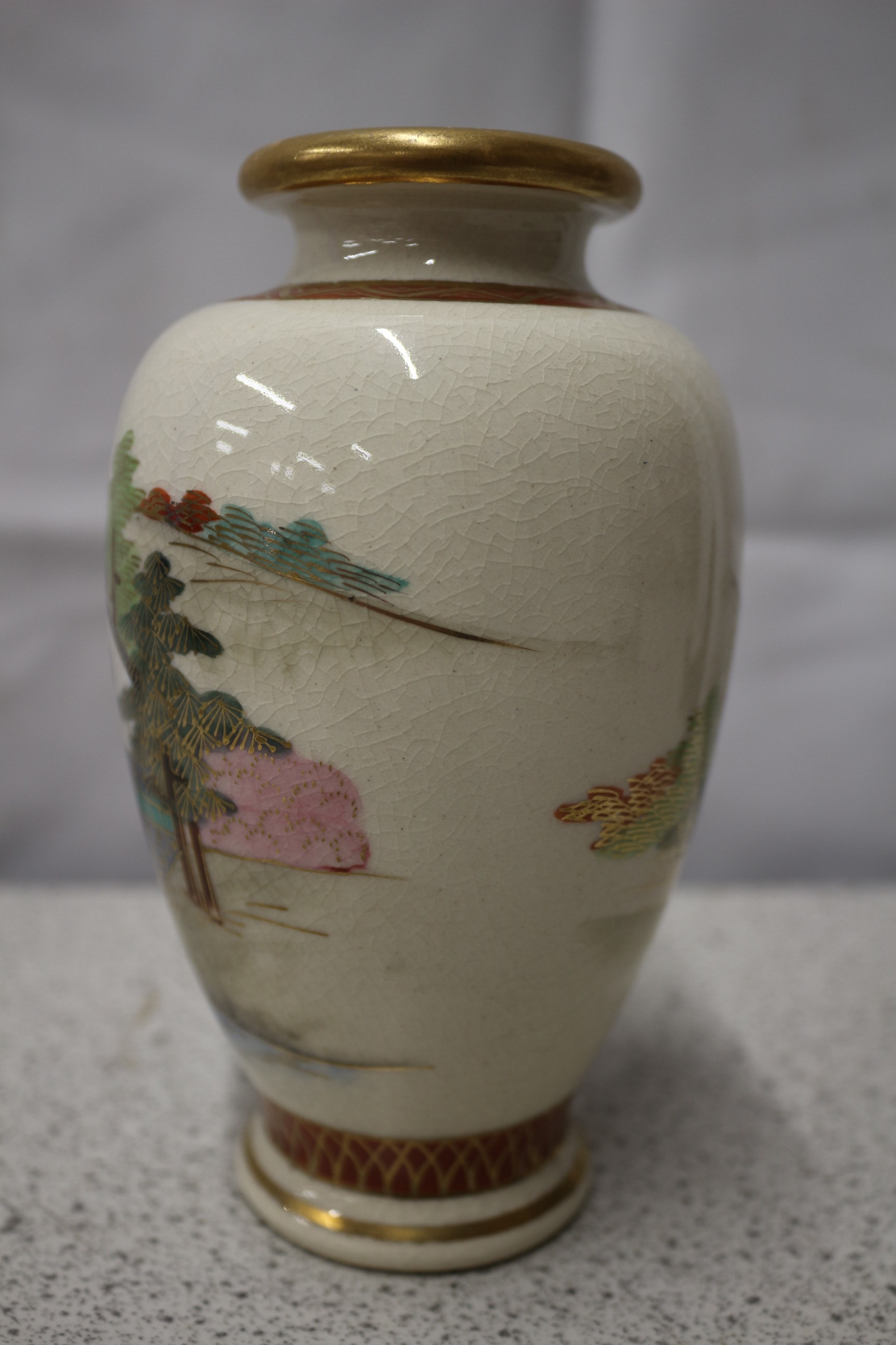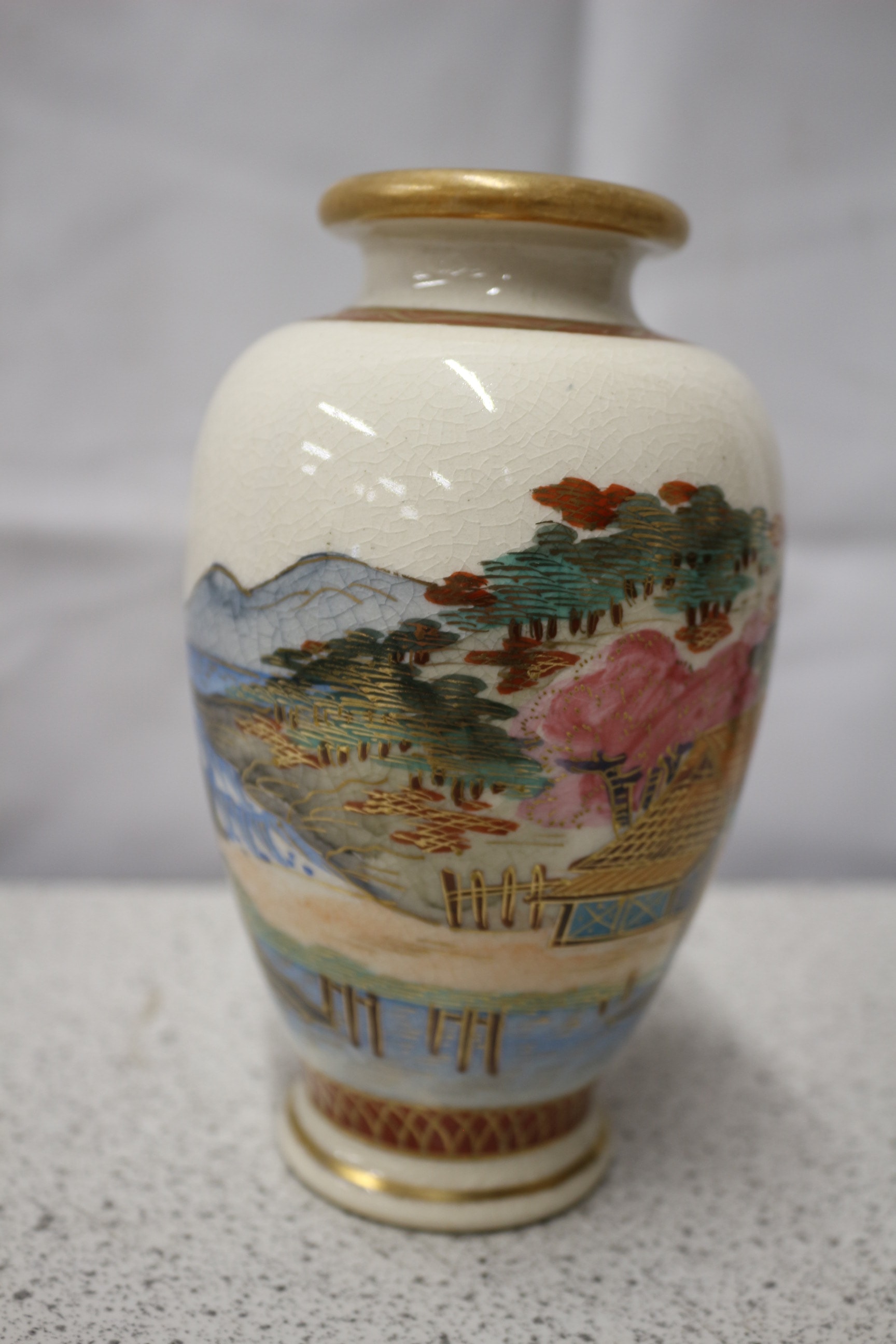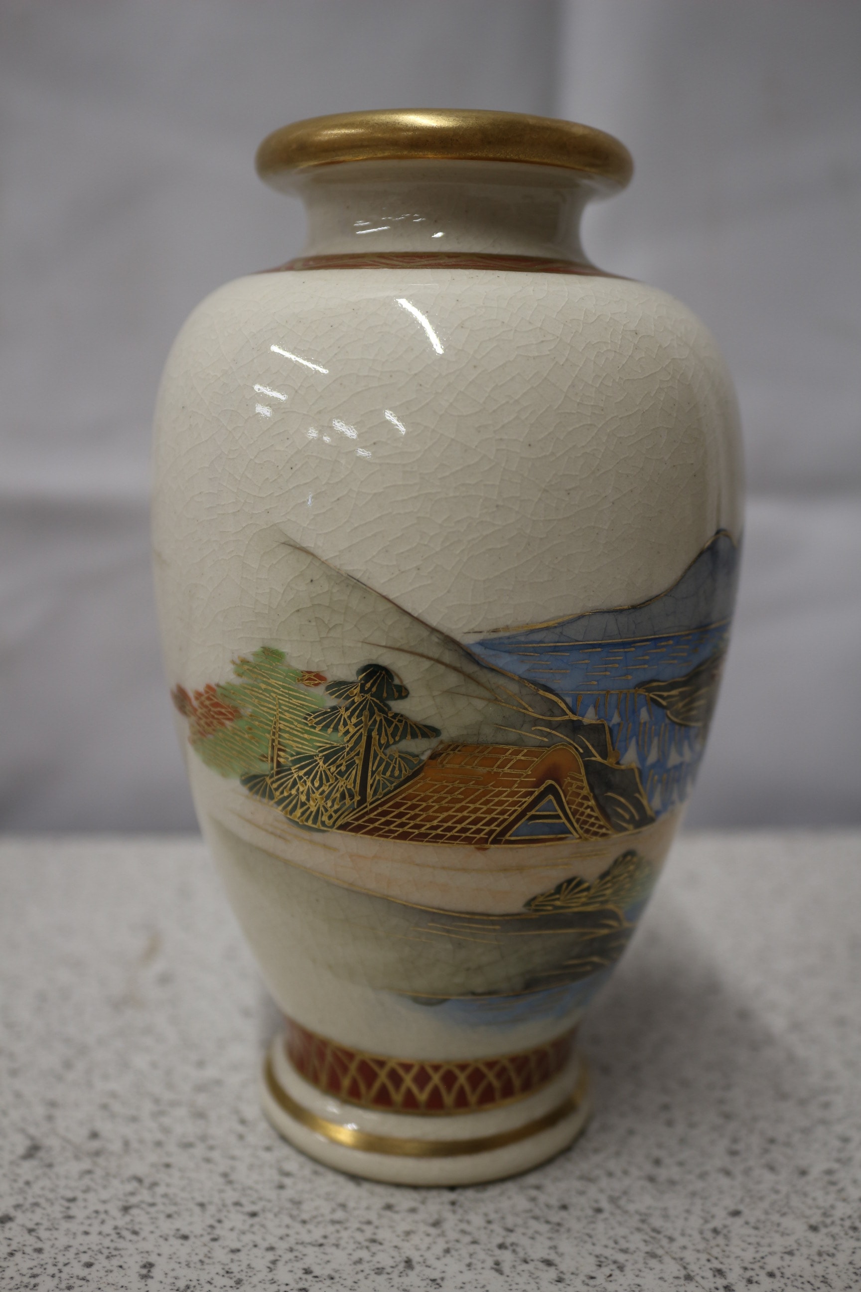 Satsumg Japanese Ceramic Jar with Landscape Design