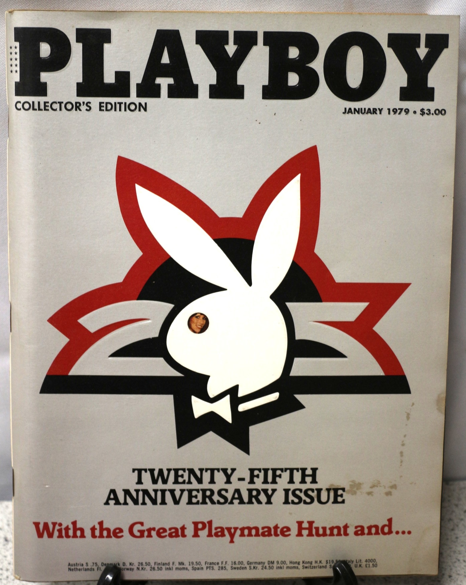 This collection comprises of 20 vintage Playboy magazines, primarily from the late 1970s, specifically issues spanning 1978 and 1979, with one visible issue from December 1976. The magazines are printed on paper with glossy covers, featuring photographic images of models and celebrities in a pin-up style, consistent with the publication’s “ENTERTAINMENT FOR MEN” branding. Notable issues include the “TWENTY-FIFTH ANNIVERSARY ISSUE” from January 1979. Visible markings include the publication title “PLAYBOY, ” issue dates, pricing in multiple international currencies, and headlines promoting various articles and interviews, such as those featuring Dolly Parton, Farrah Fawcett, Raquel Welch, and Burt Reynolds.