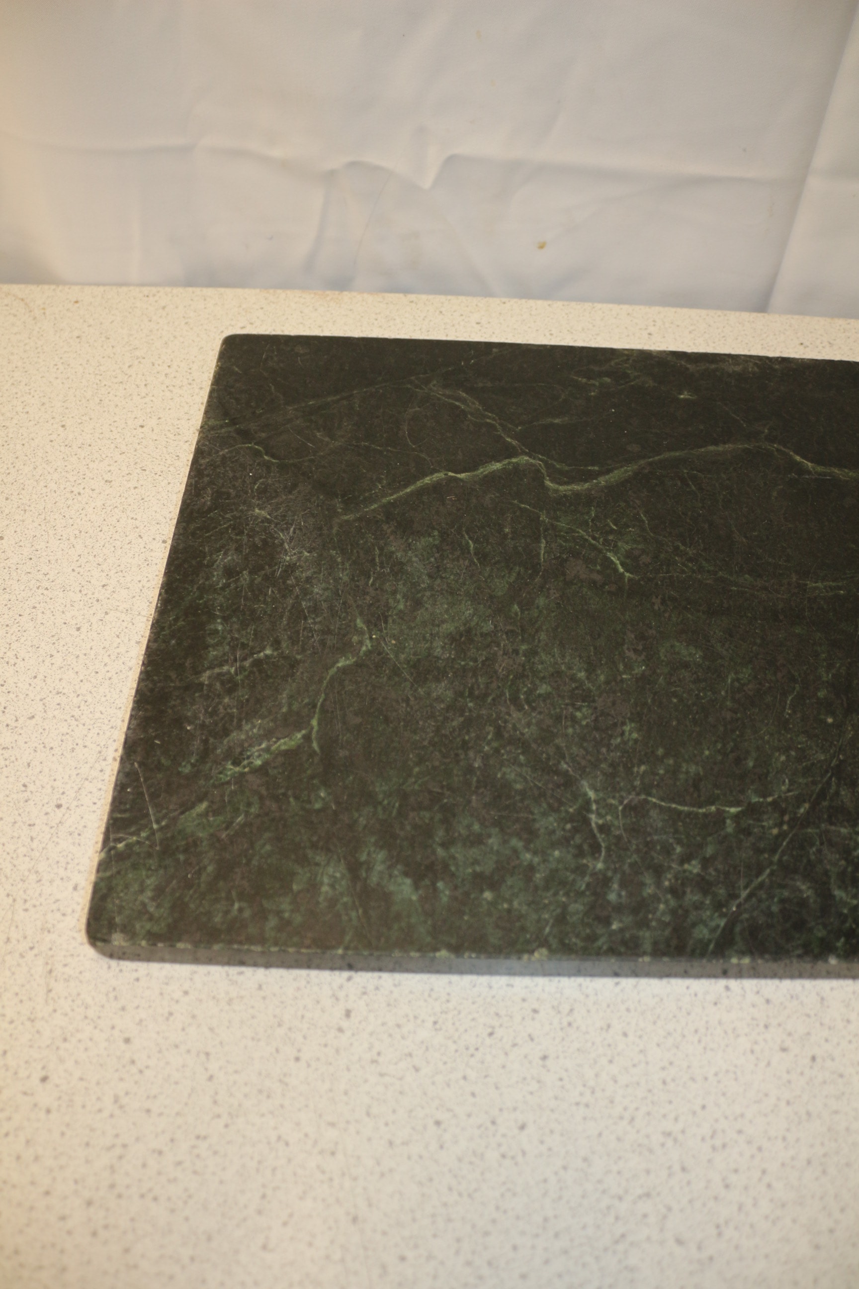 A dark green rectangular marble chopping or serving board with lighter green and black veining. 51x38cm