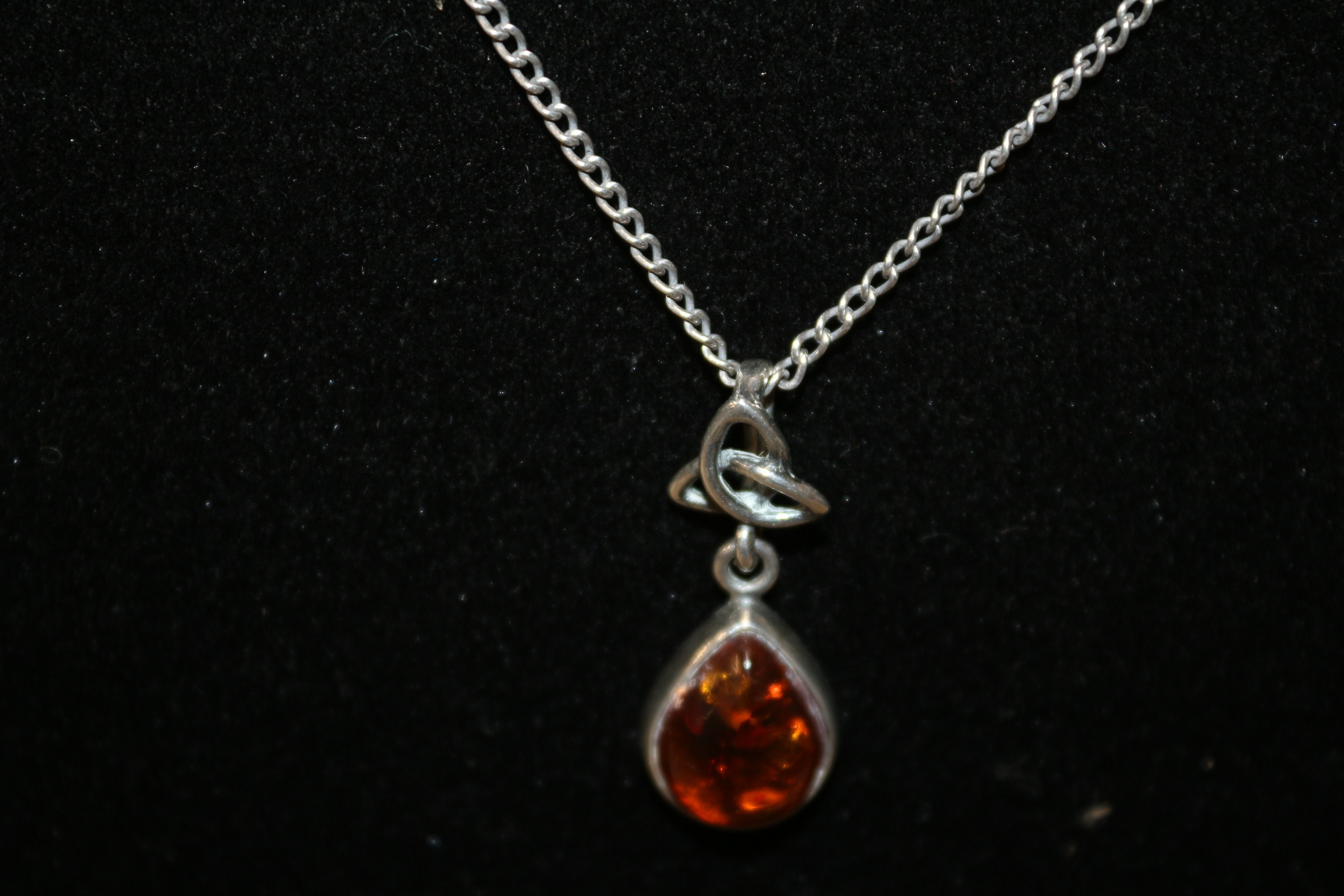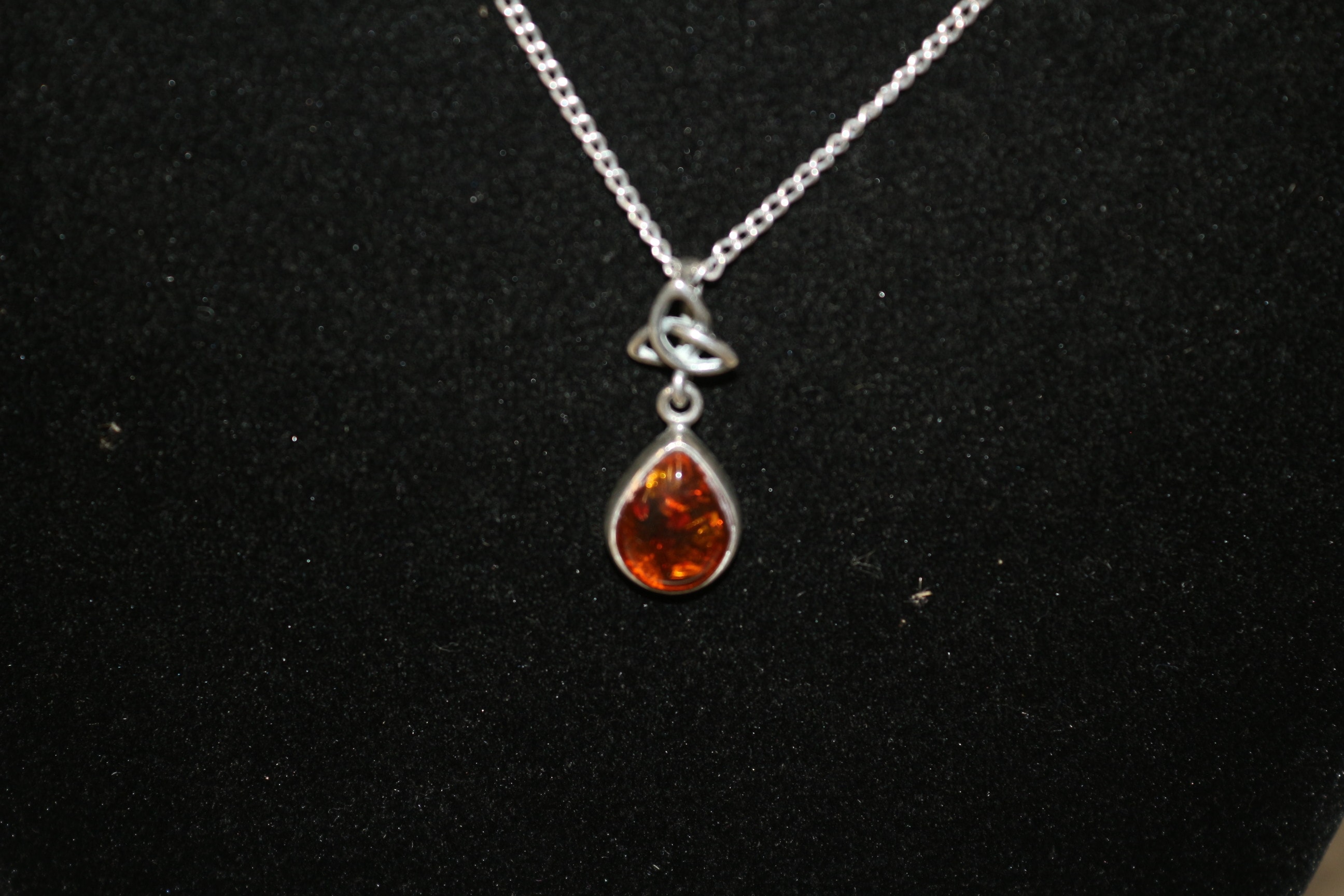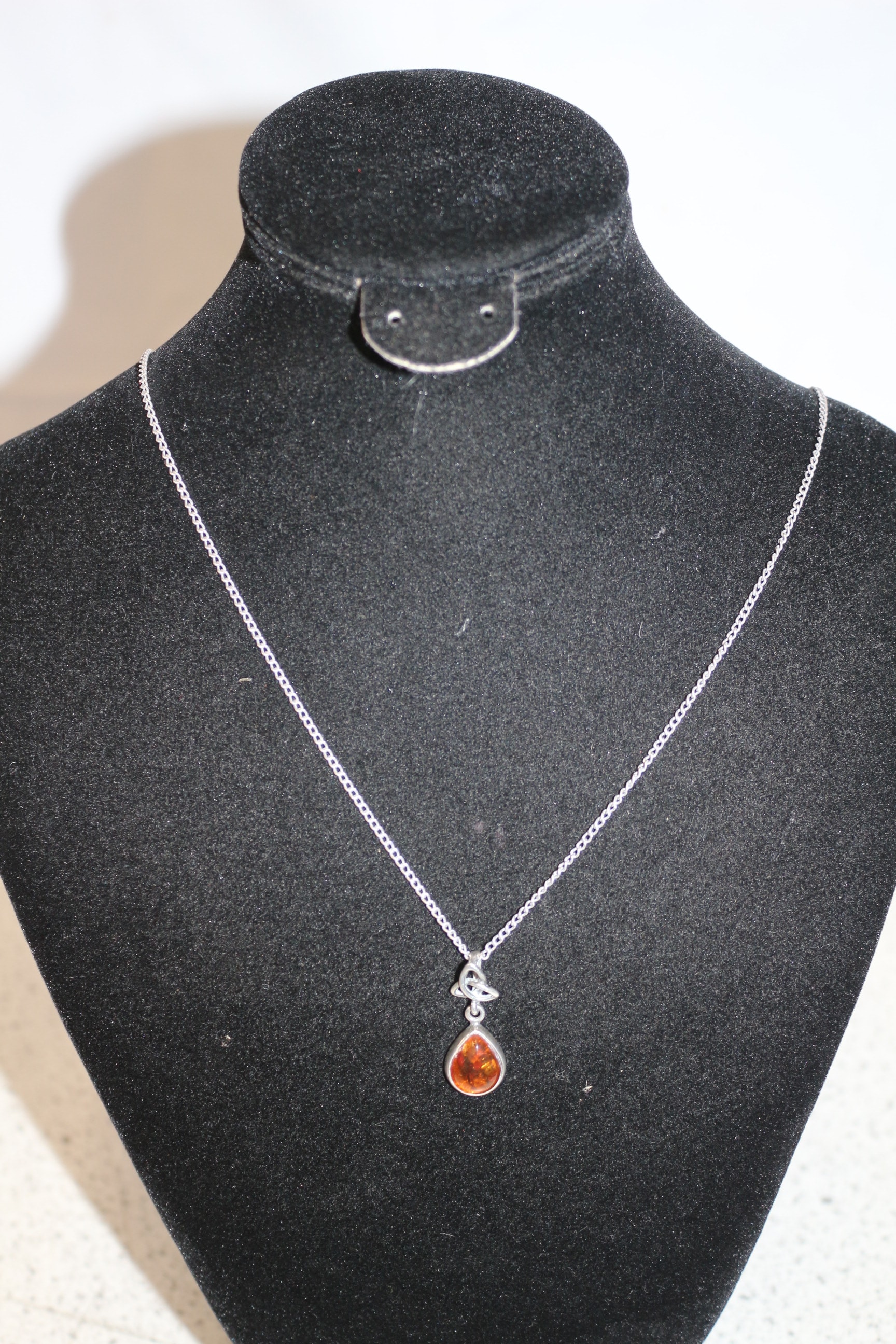 Lot 64: Sterling Silver Celtic Knot Honey Amber Pendant Necklace