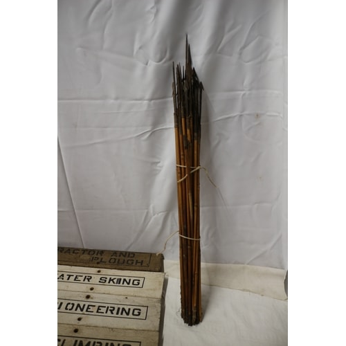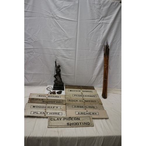 Scouting and Outdoor Pursuits Bundle of Arrows, and Eleven Handmade Wooden Signs, Baden-Powell Figurine AF
