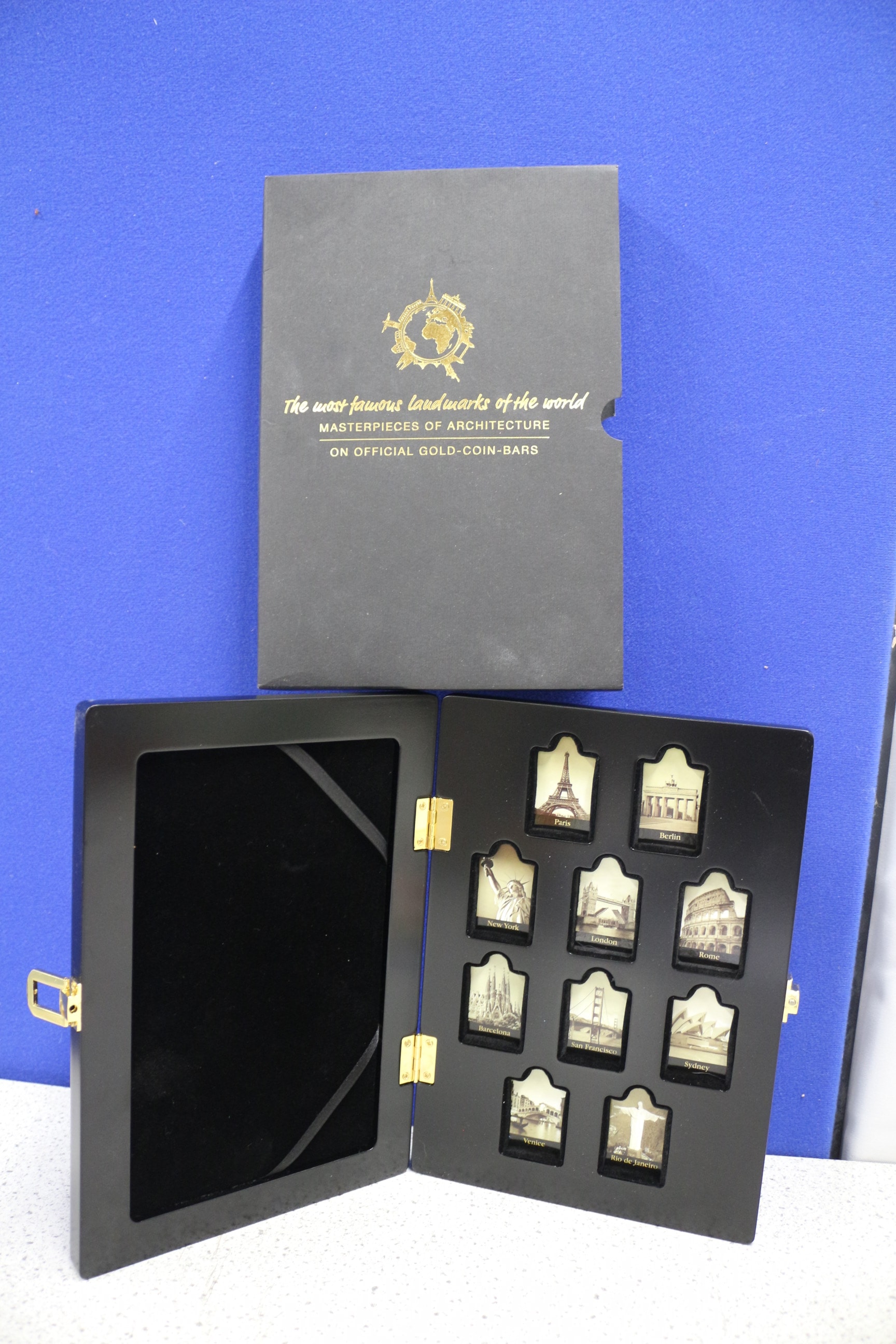 Lot 193: An Empty Case for Ten Famous Landmarks Gold-Coin-Bars